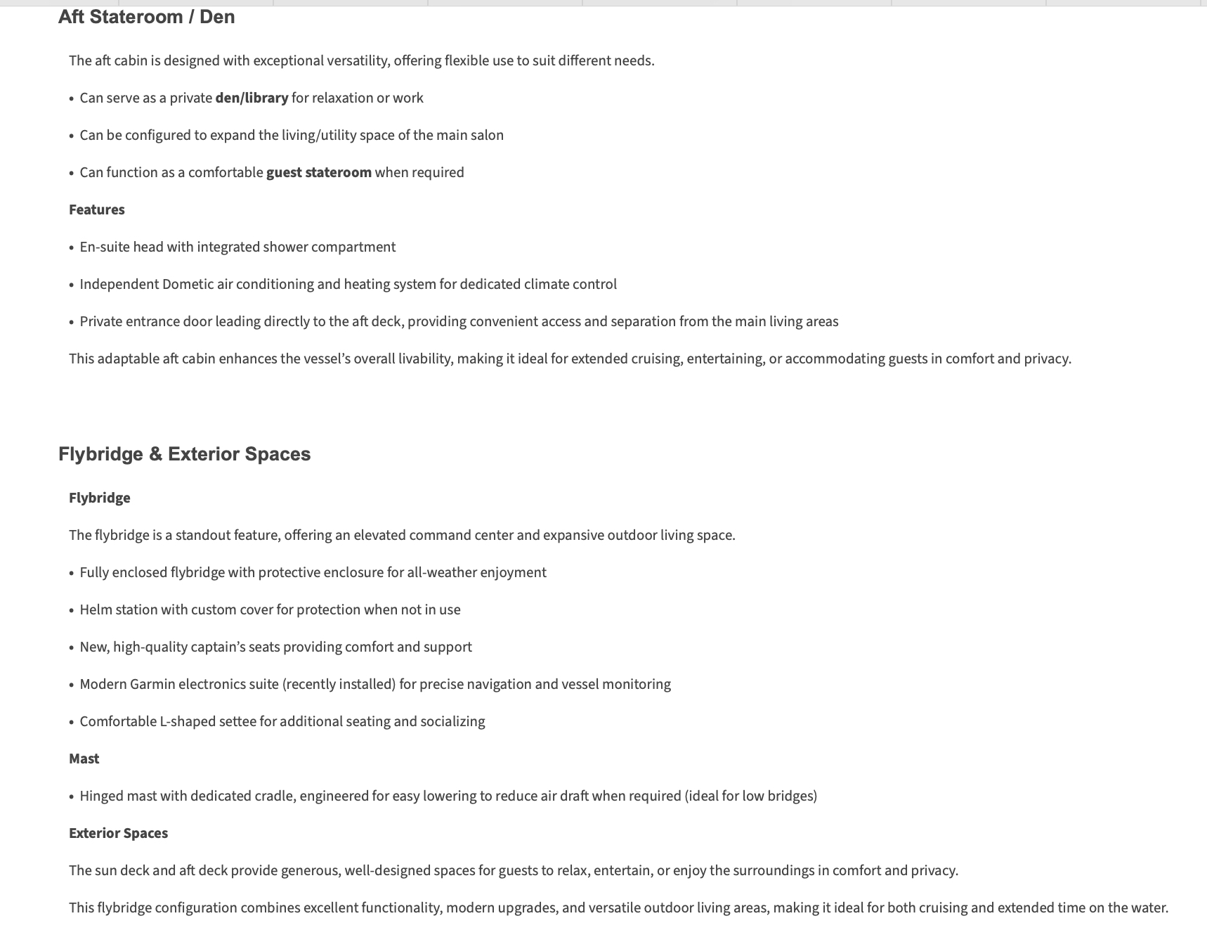 Finding a flybridge yacht in this condition with this much space, updated electronics, Cummins diesel reliability, and at this price point is becoming increasingly rare. This boat has been well maintained, recently upgraded, and is ready for her next adventure.