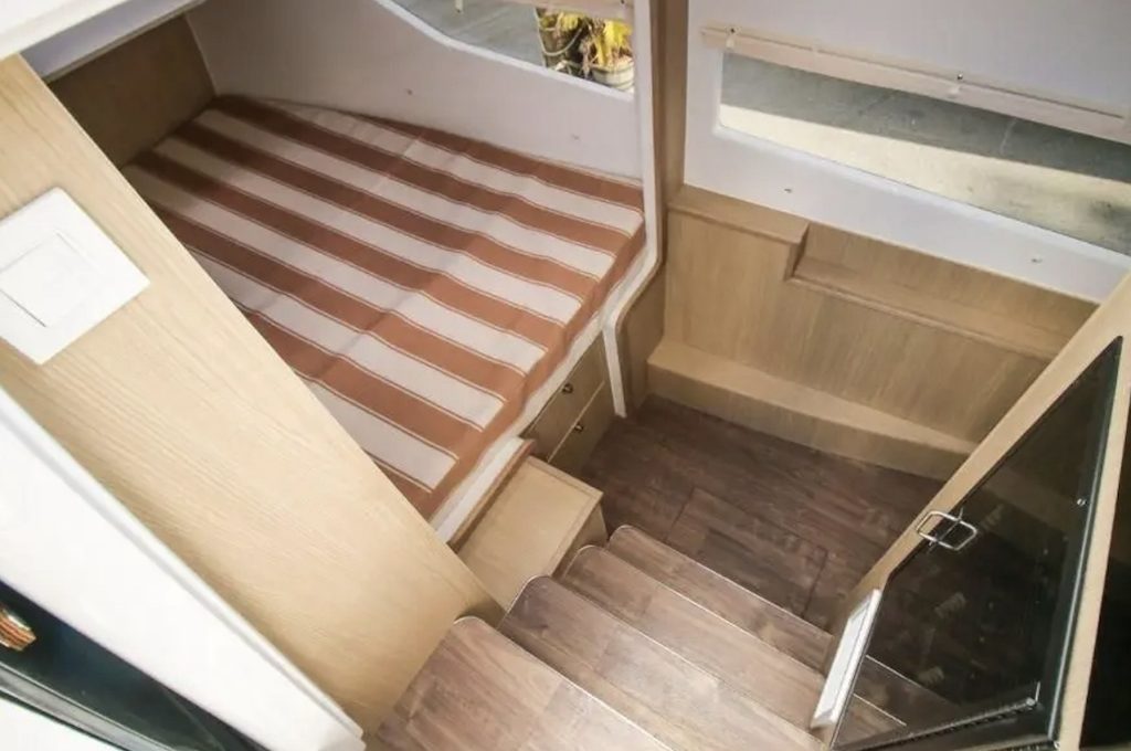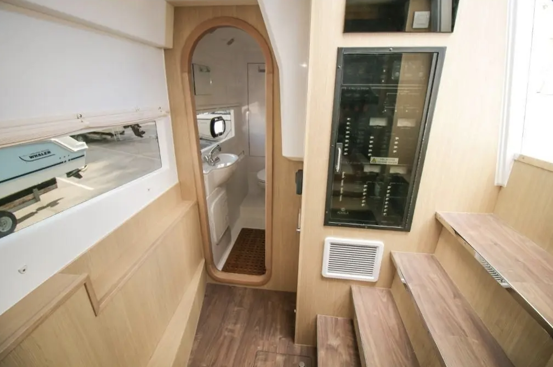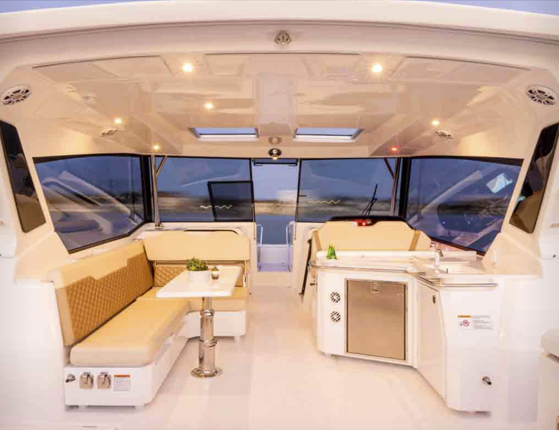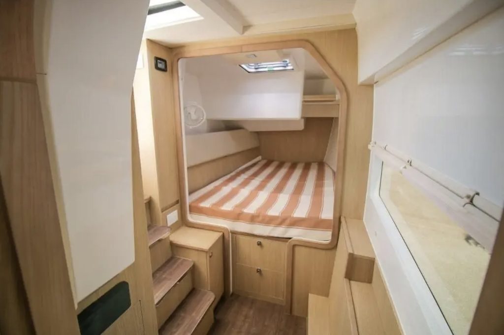 The thoughtfully configured deck transforms to match your mood—from the forward cockpit seating that accommodates eight and converts to sunbeds, to the versatile aft seating that faces wherever the action is. Below deck, two private cabins with en-suite bathrooms turn day trips into overnight escapes.