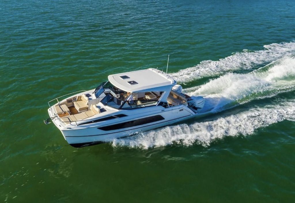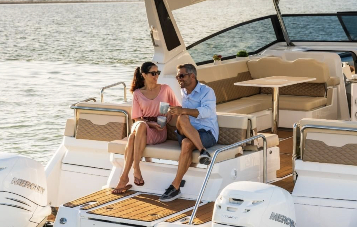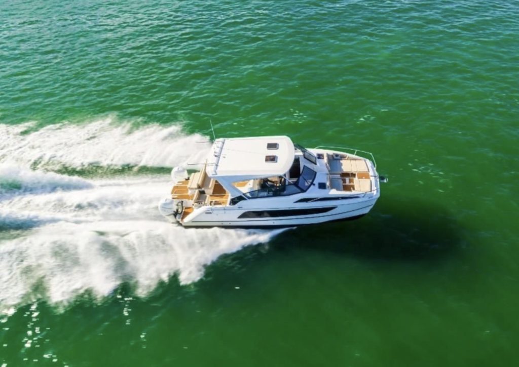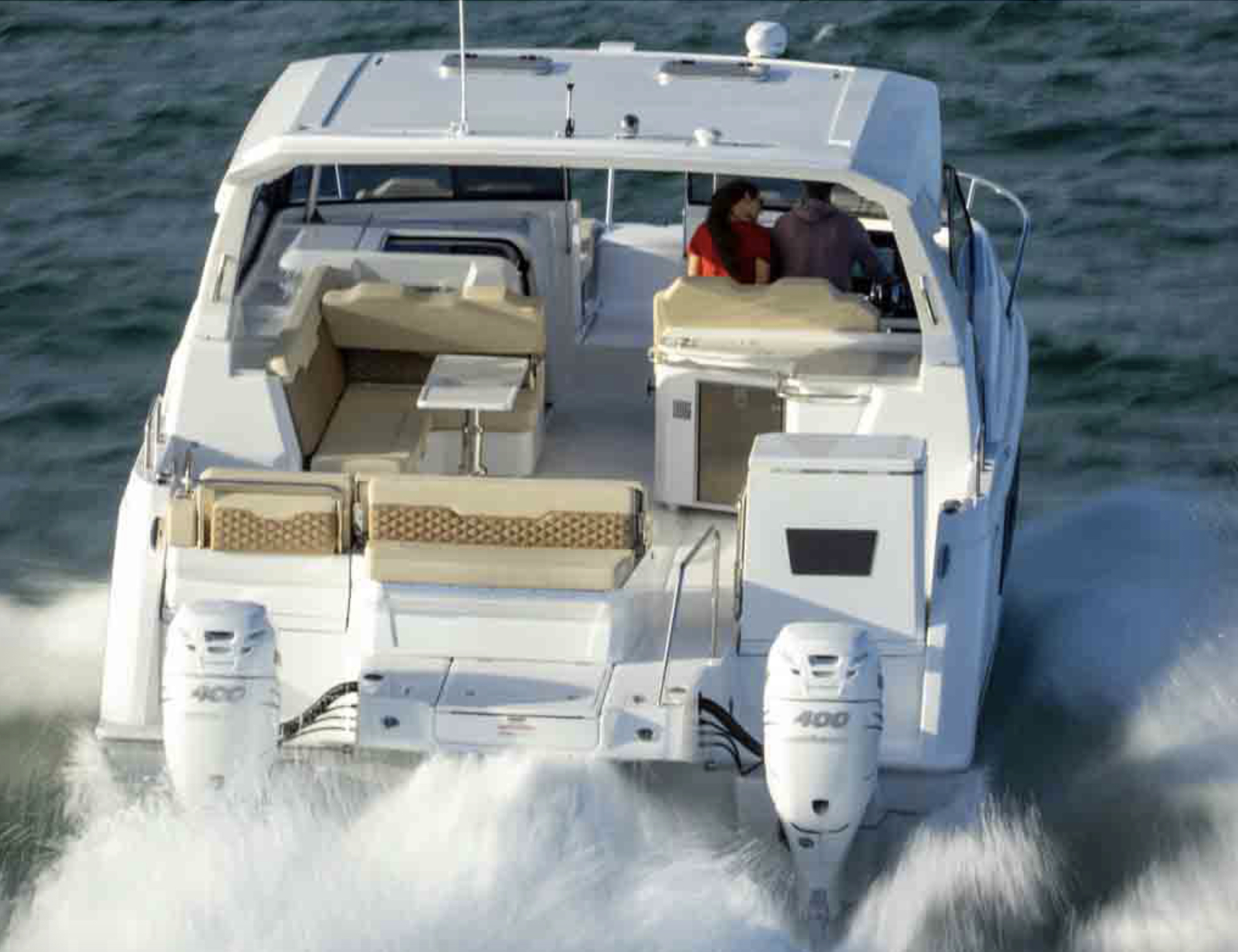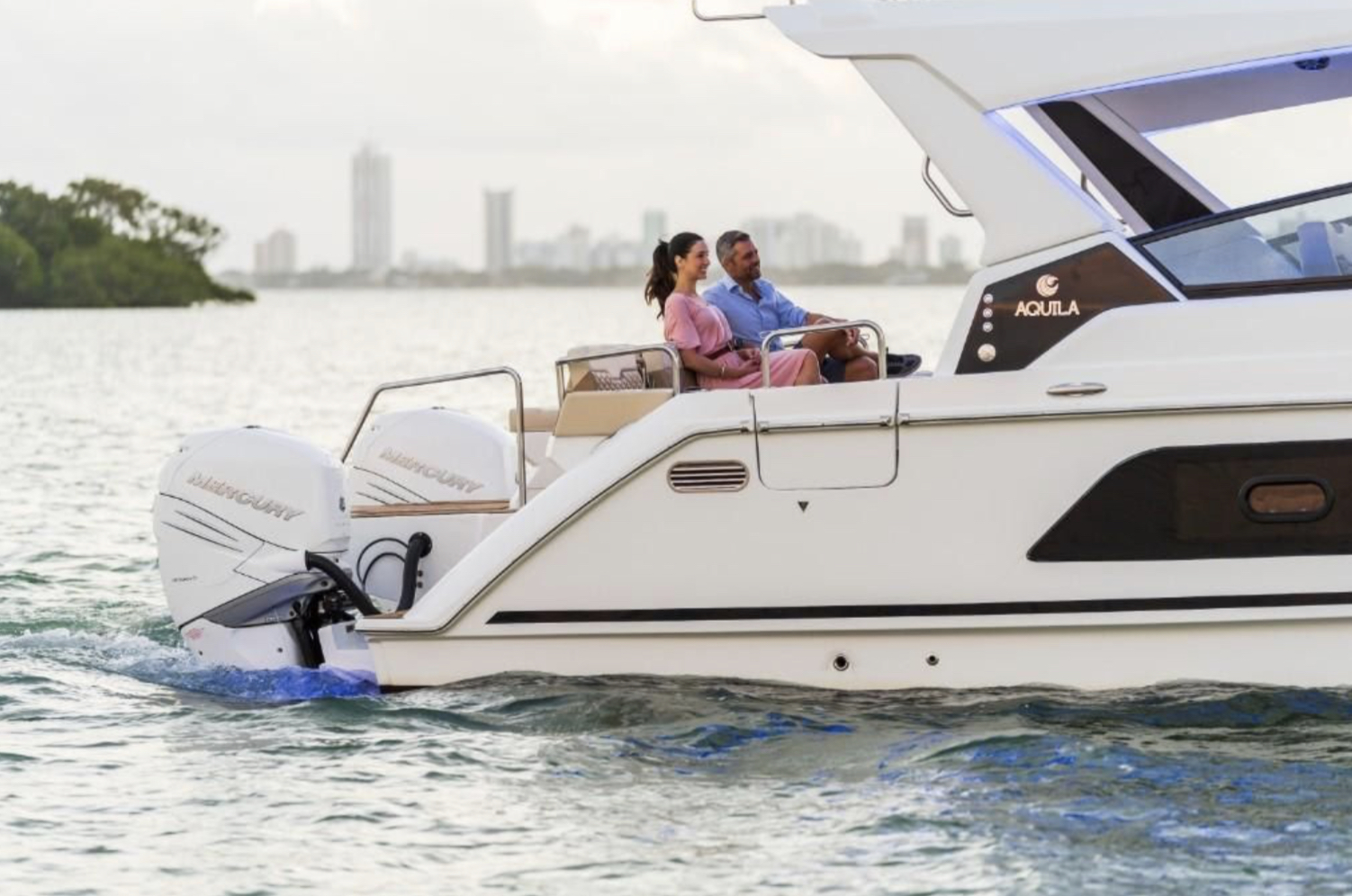 Beneath its bold profile, the Aquila 36 Sport combines thrilling performance with unexpected versatility. Twin Mercury Verado 400HP outboards with joystick piloting ensure responsive handling.