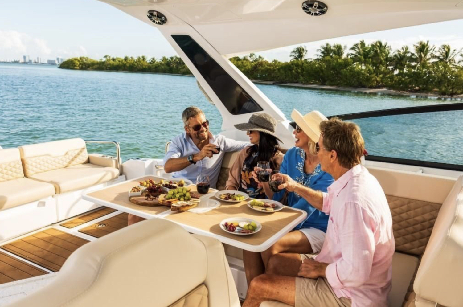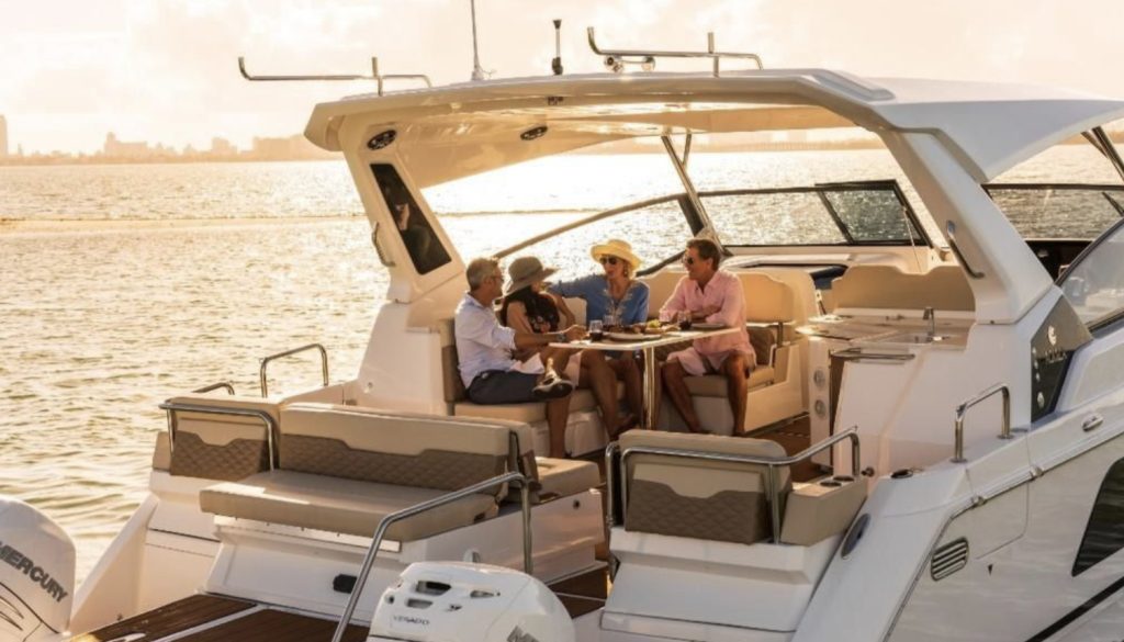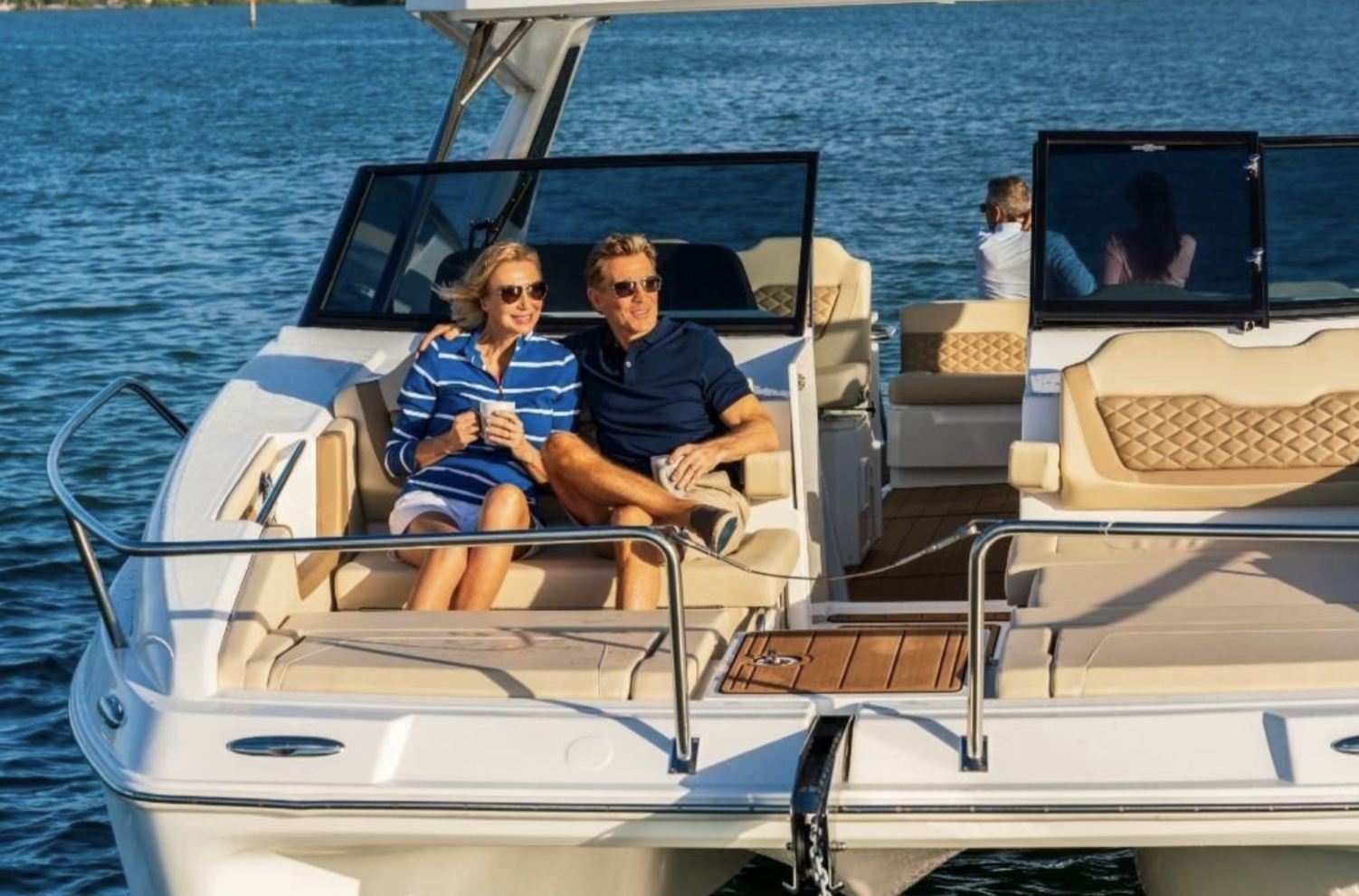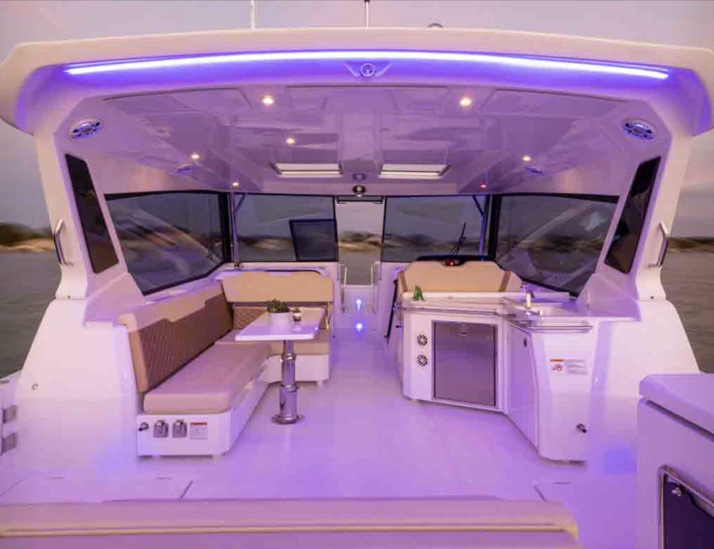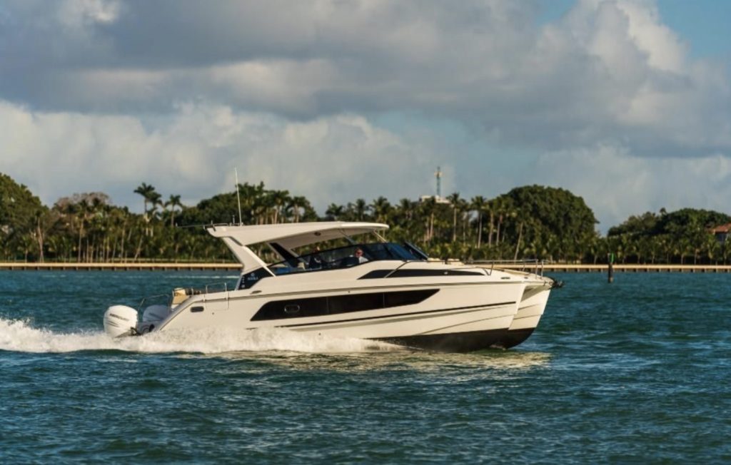 Beneath its bold profile, the Aquila 36 Sport combines thrilling performance with unexpected versatility. Twin Mercury Verado 400HP outboards with joystick piloting ensure responsive handling.