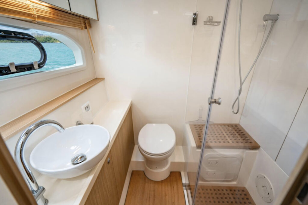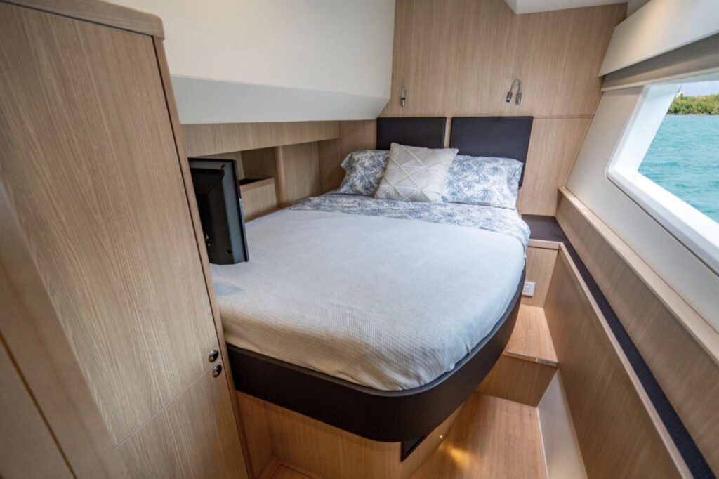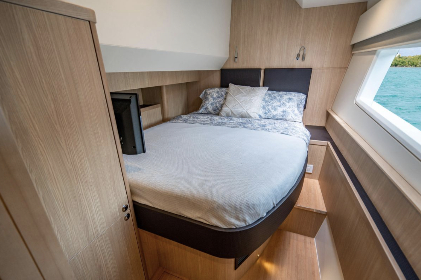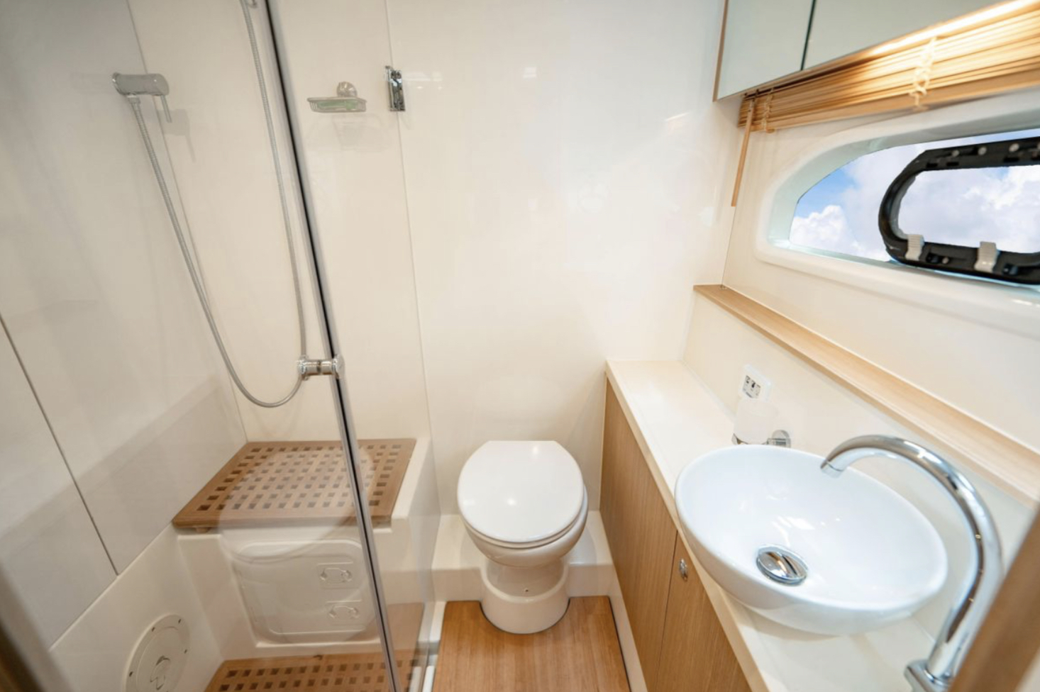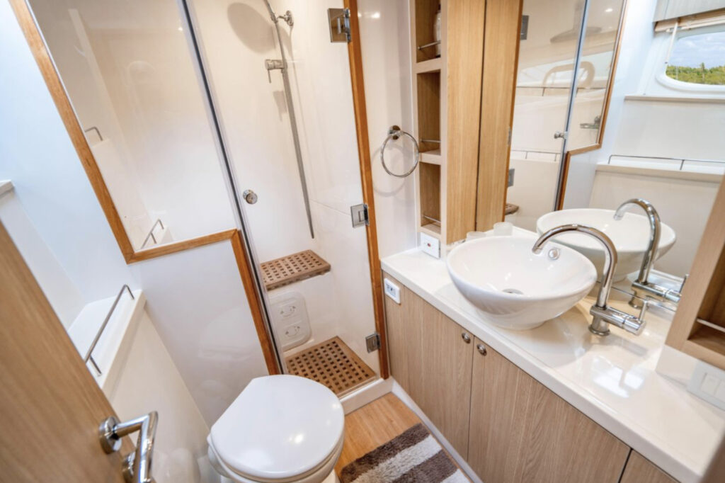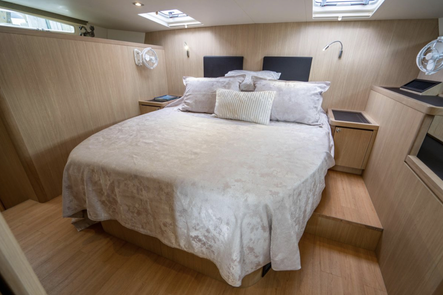 The Aquila 44 Yacht features three well-appointed cabins and three heads, providing ample space for relaxation and comfort. An electric windlass enhances convenience, making anchoring a breeze. Whether you’re exploring coastal waters or enjoying leisurely days at sea, the ALTAIR is designed to elevate your boating experience with its exceptional features and stylish design.