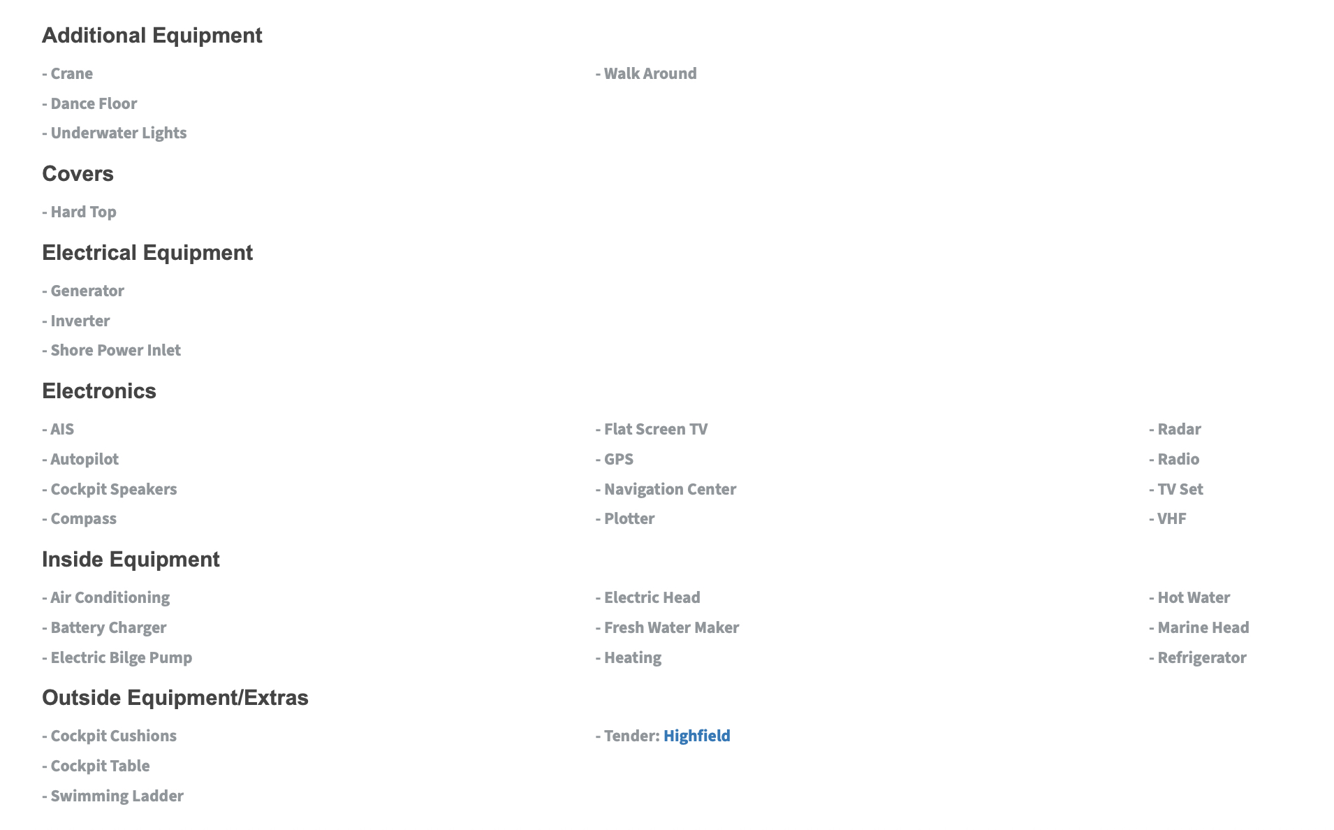 N.B. Vous pouvez acquérir ce bateau comme tout autre yacht sans avoir à payer de taxe Américaine ni Canadienne si le bateau navigue toujours hors du Canada avec une immatriculation Canadienne (Le bateau doit appartenir à un Canadien)