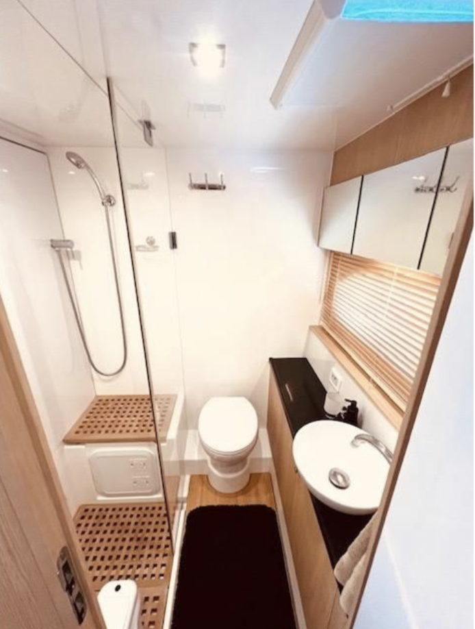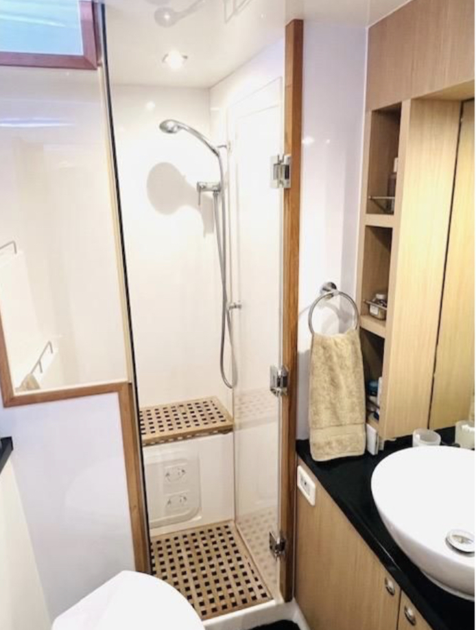 new shafts, cutlass bearings, shaft seals and props, and a new Raymarine Quantum 2Q24D radar plotter. New master stateroom TV and Starlink, and the Spectra Newport 400 water maker was completely rebuilt.
