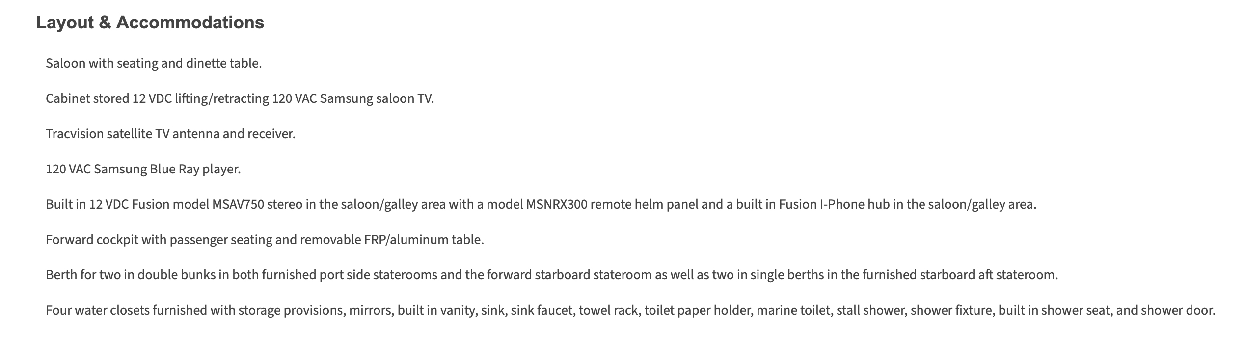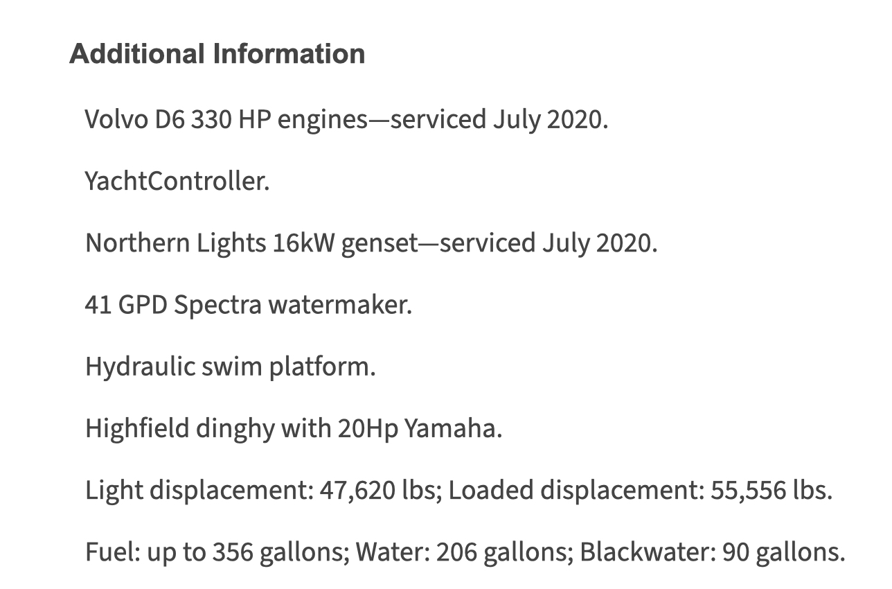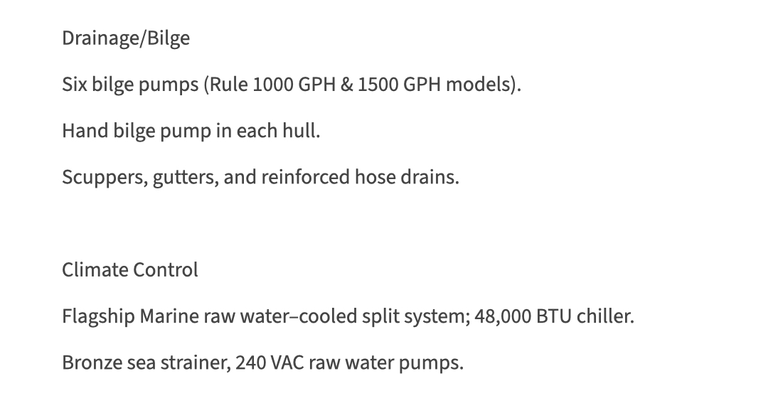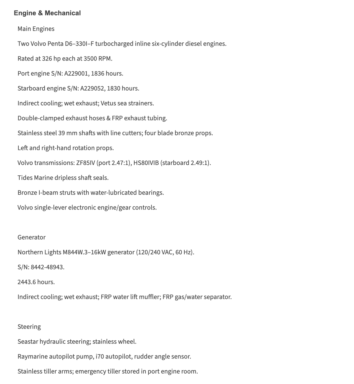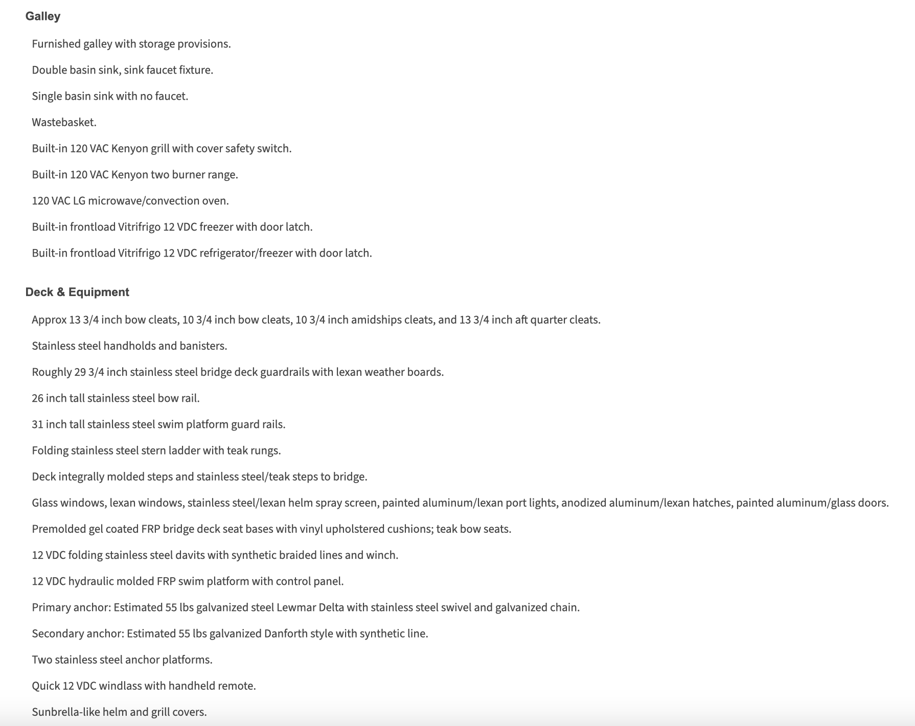 $50,000 in custom enclosure and new front cushions. It’s been well-maintained by professionals. The A/C chiller is new Dec 2024. The freezer/refrigeration units (port galley) are new Dec 2024.