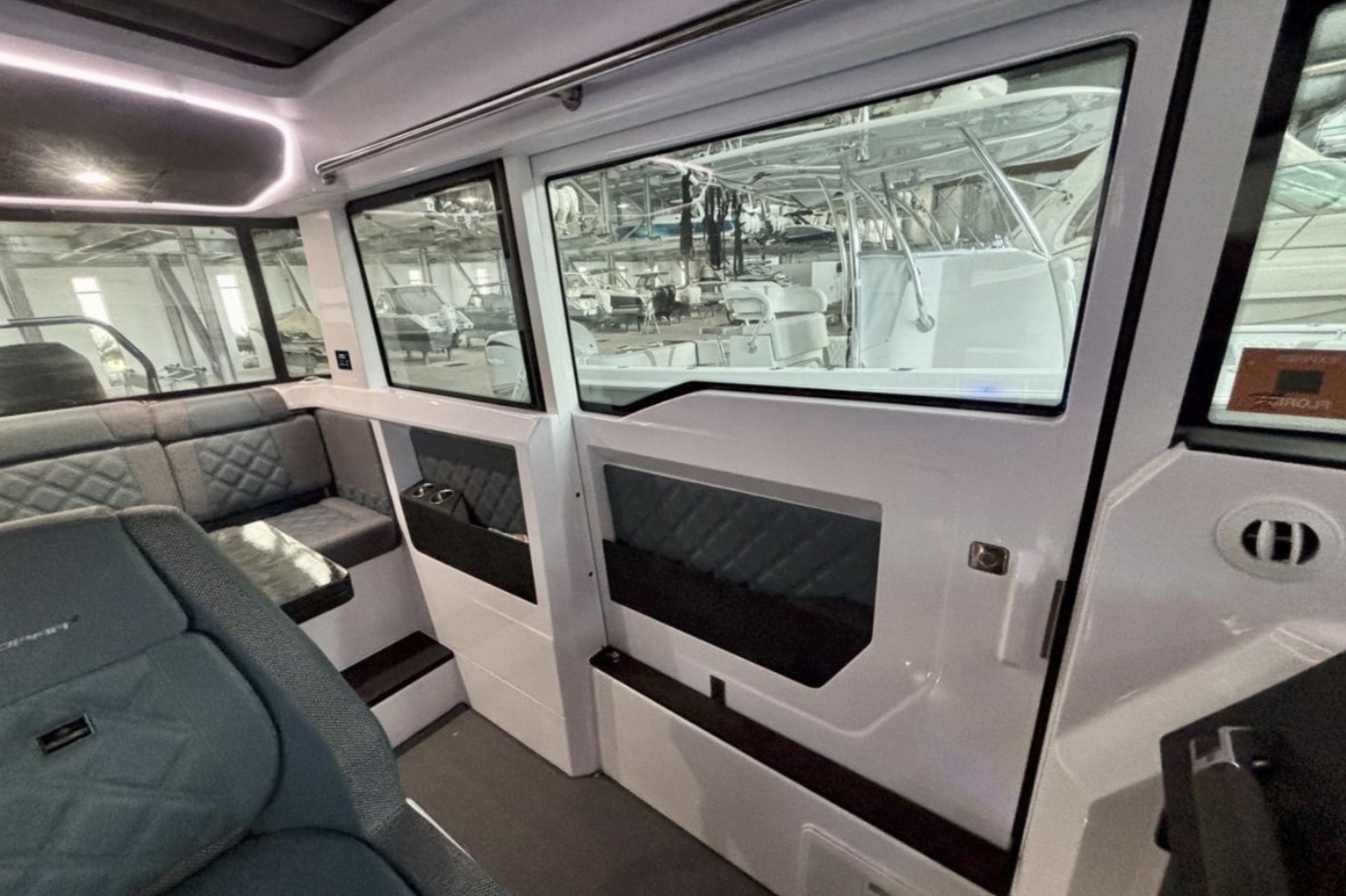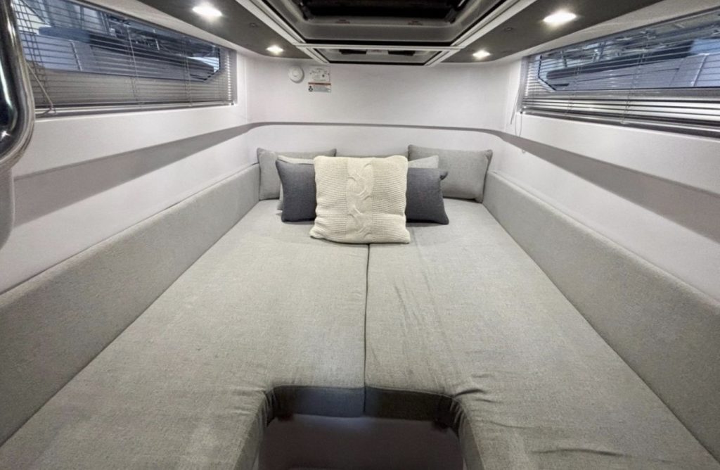 The Brabus Trim elevates the vessel with premium finishes, sporty styling, and refined detailing throughout the cockpit and cabin spaces. Designed for both adventure and comfort, the Axopar 37 XC Cross Cabin features a fully enclosed wheelhouse, forward and aft sleeping cabins for overnight cruising, advanced helm electronics, and a premium audio system, making it ideal for weekend getaways, coastal cruising, and entertaining on the water.