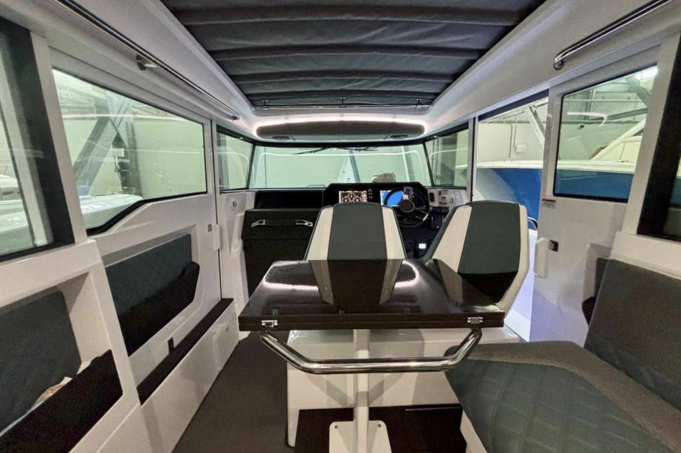 Fully Enclosed All-Weather Pilothouse with Retractable Canvas Sunroof