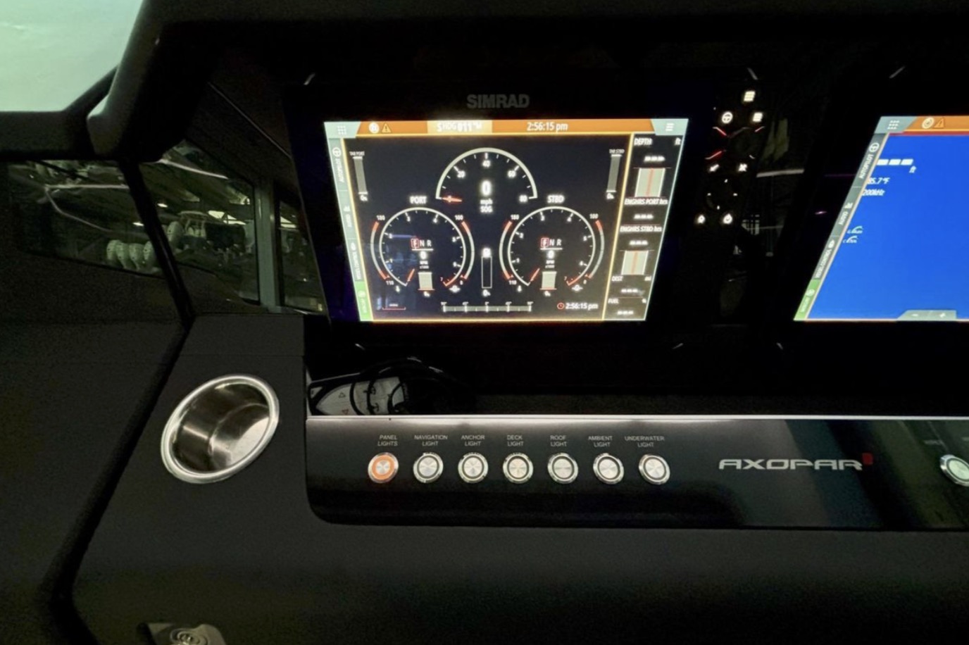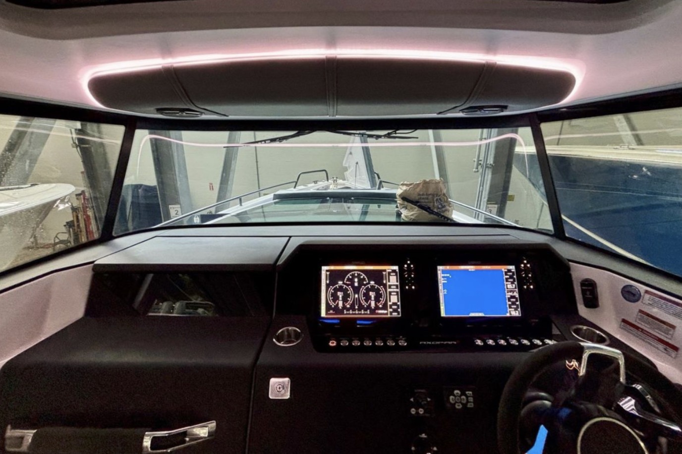 Powered by twin Mercury 350 V10 outboards with only 180 hours, this Axopar has been stored indoors at F3 Marina, preserving its like-new condition and ensuring exceptional reliability for its next owner.
