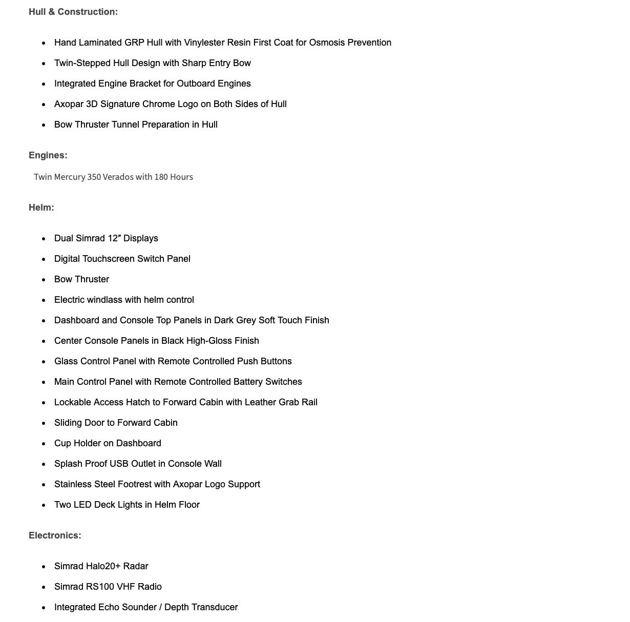 N.B. Voir l’onglet PIECES JOINTES pour tous les détails de cet Axopar 37 XC
