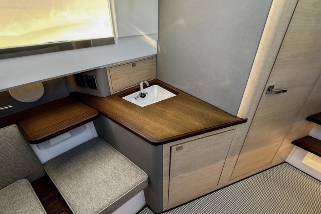 – Grand poste de pilotage avec cuisine complète et deux réfrigérateurs