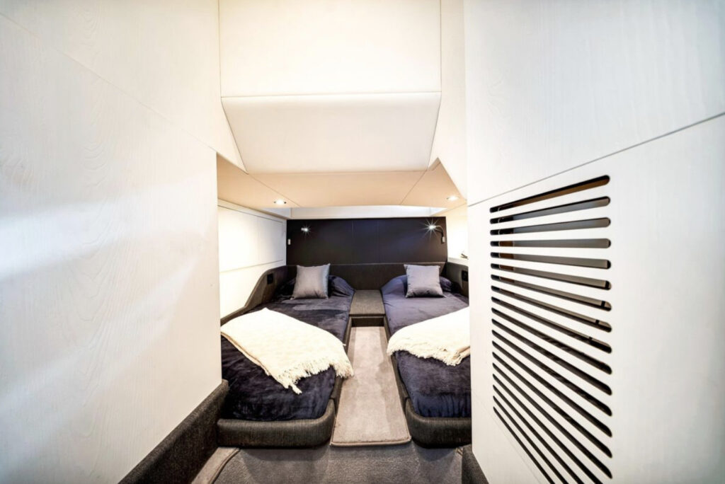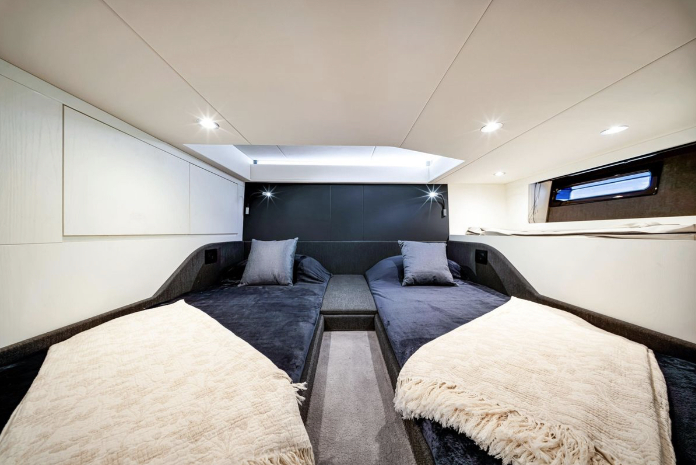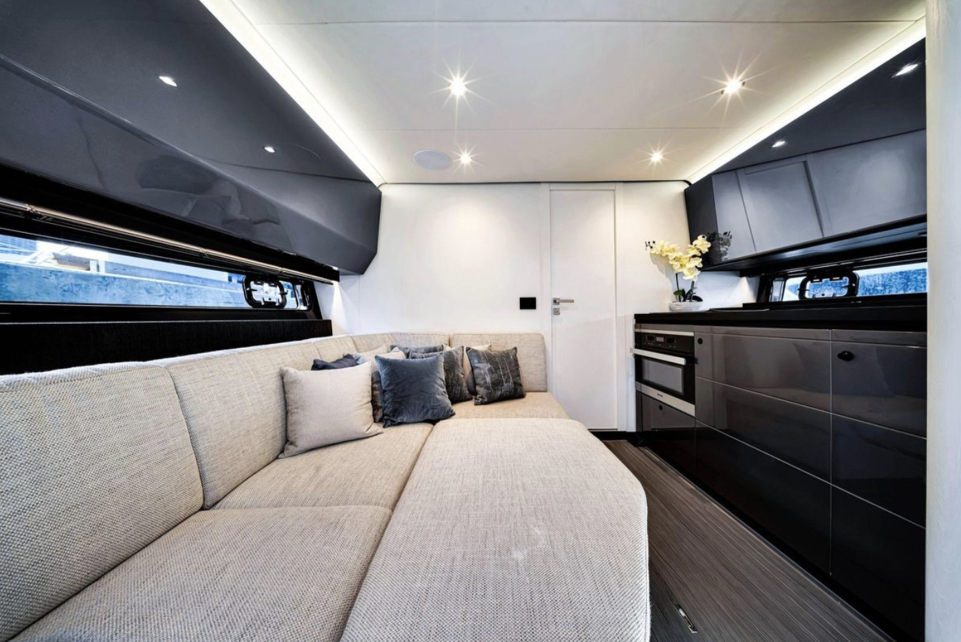 The Verve 47 is built for those who want immersion and pace in equal measure. Styled as a weekender cruiser, she blends a bold, sea-going profile with a cockpit and interior conceived for quick getaways, day trips, and overnight loops without compromise.