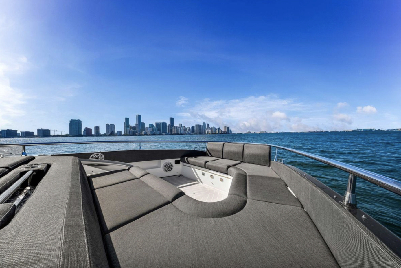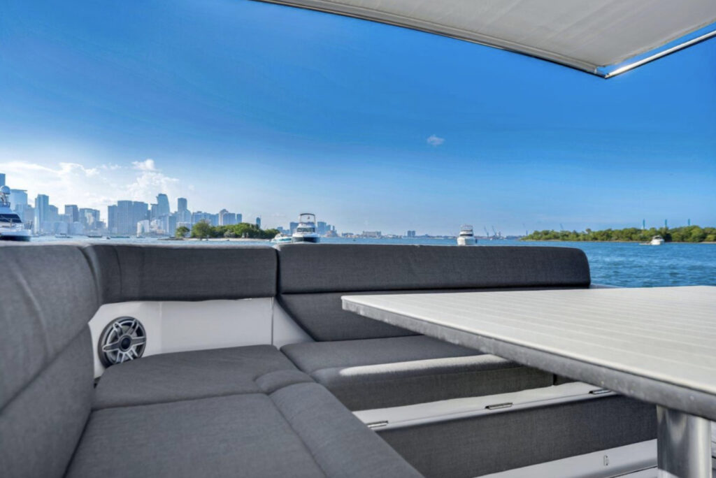 When it’s time to run, quad 450R outboards deliver the acceleration and agility this model is known for, reportedly pushing “to 50” while staying composed and responsive. With approximately 320 hours on the engines, this 2023 example pairs modern performance with the comfort and ease that make the Verve line so compelling.