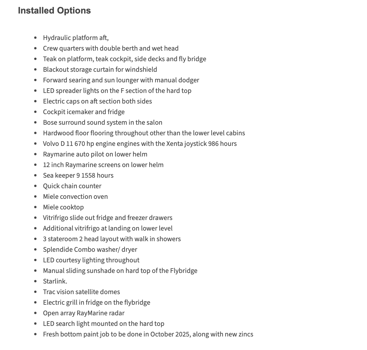 Le bateau qui est présenté sur cette page, l’est uniquement à titre d'information et n'est pas nécessairement toujours disponible à la vente et/ou à la location. Ce bateau est peut-être offert sous réserve, il faut vérifier sa disponibilité. Ce document ou cette annonce n'est pas contractuel. Les informations sur les bateaux affichées dans les résultats ci-dessus sont présentées en toute bonne foi et, bien qu'elles soient considérées comme correctes, elles ne sont pas garanties. Ita Yachts Canada et/ou ProprioBateau ne garantit pas et n'assume aucune responsabilité légale ou responsabilité pour l'exactitude, l'exhaustivité ou l'utilité des informations et/ou des images affichées, car elles peuvent ne pas être à jour ou encore êtres des images d'un bateau comparable. Toutes les informations sur les bateaux peuvent être modifiées sans préavis et sont sans garantie. Ce bateau est peut-être offert par un autre courtier ouvert au co-courtage (co-brokerage).