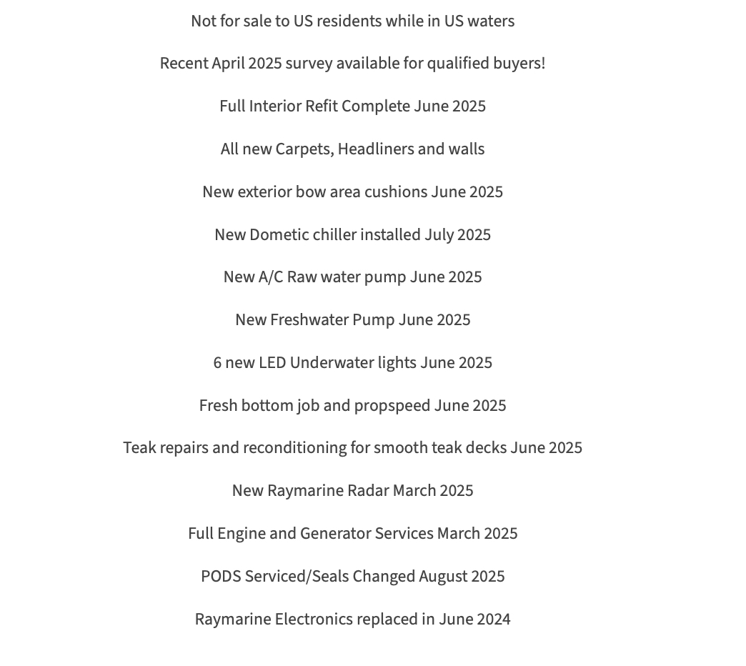 – Plusieurs mise-à-jour (entretiens) fait sur ce yacht incluant des systèmes