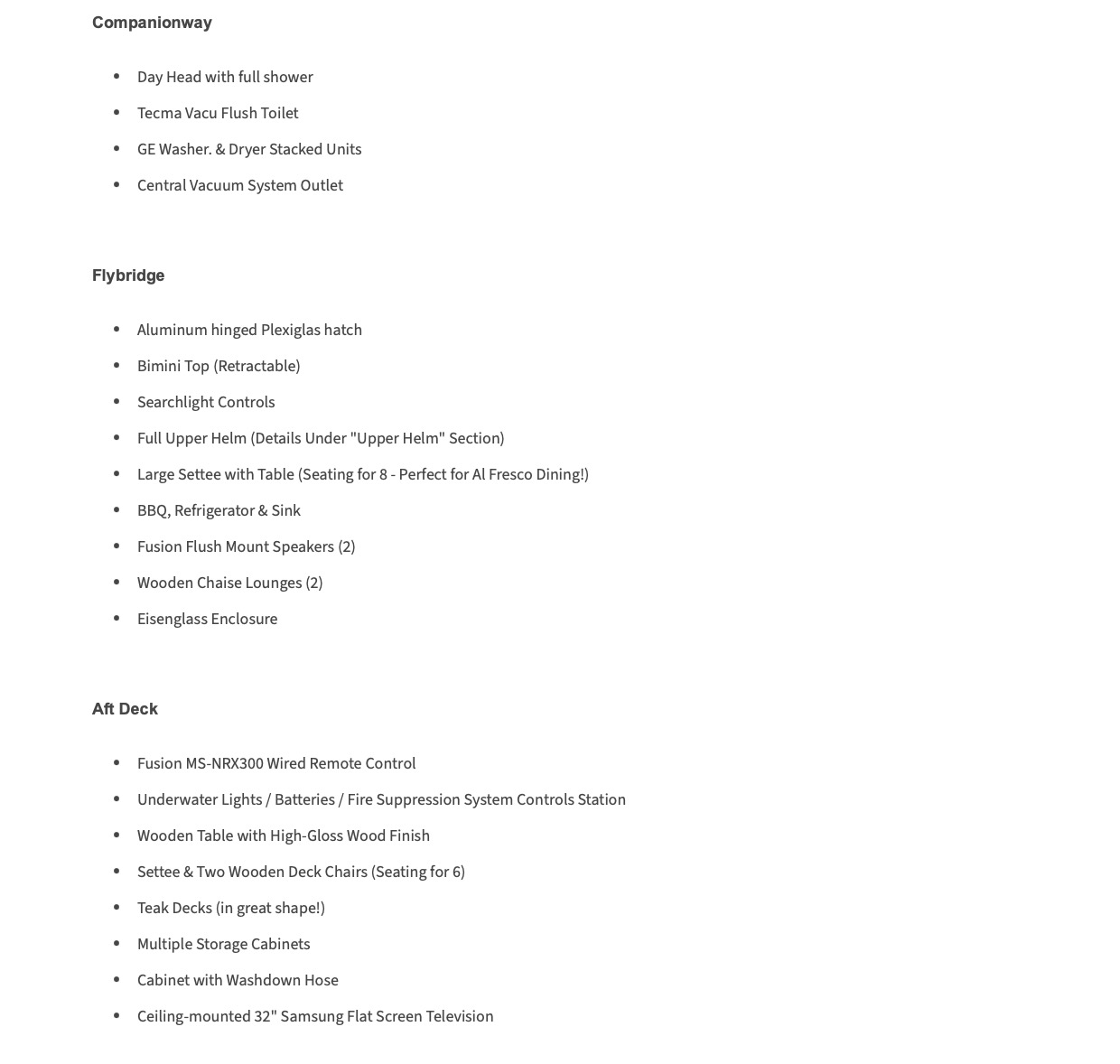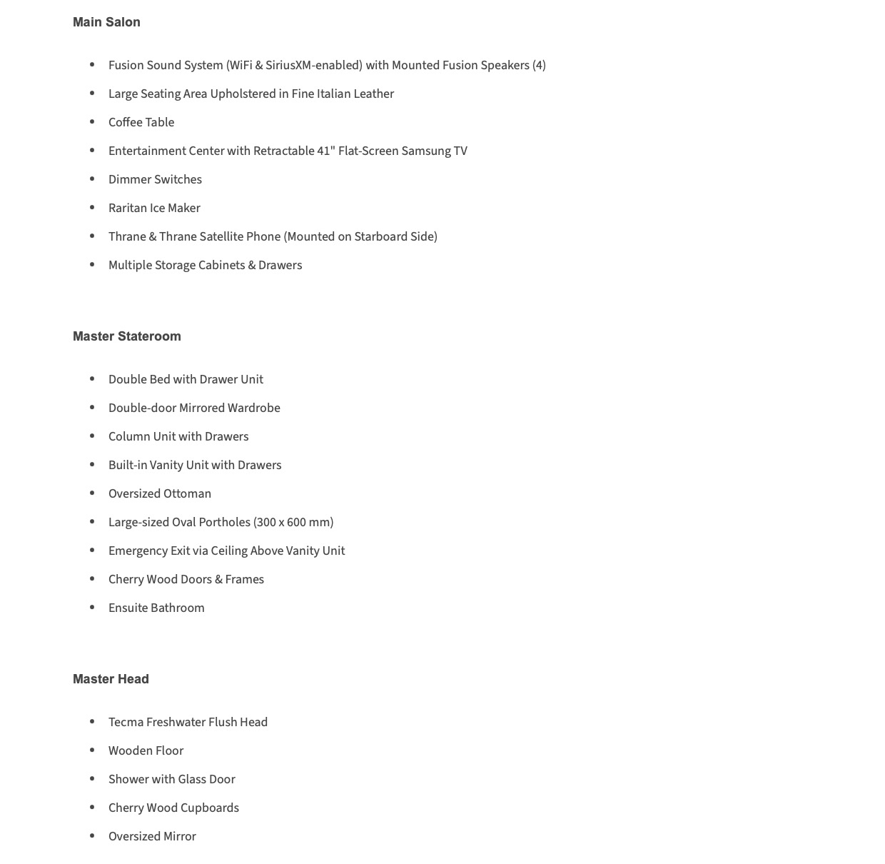 N.B. Vous pouvez acquérir ce bateau comme tout autre yacht sans avoir à payer de taxe Américaine ni Canadienne si le bateau navigue toujours hors du Canada avec une immatriculation Canadienne (Le bateau doit appartenir à un Canadien)