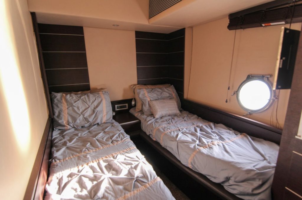 Three appointed staterooms plus dedicated crew quarters give this 68S a capability that punches above her class. The full-beam master is the centerpiece — generous, private, and finished to Azimut’s standard. The VIP forward and twin cabin each feature ensuite heads, making overnight hosting effortless for couples or families alike. The separate crew quarters keep operations discreet and self-contained — a must for owners who run with a captain or plan to charter.