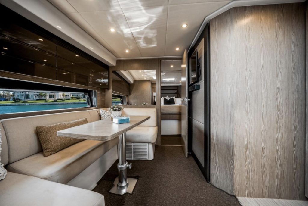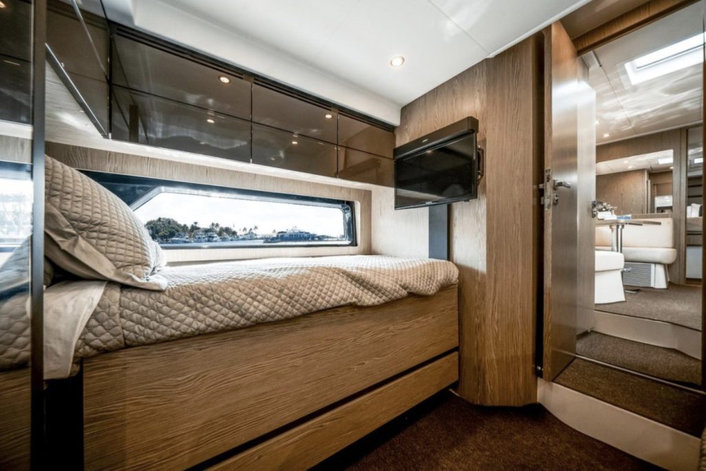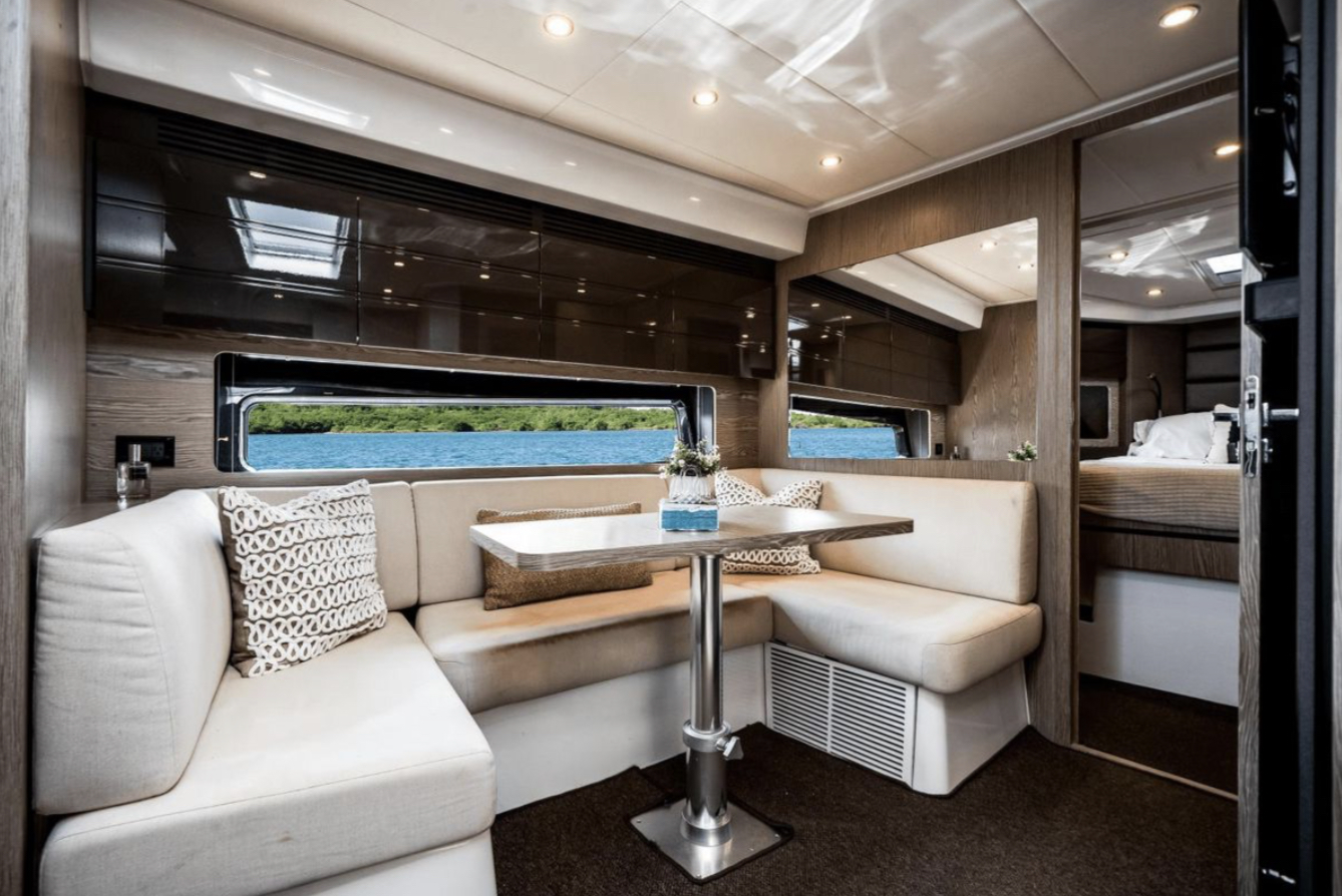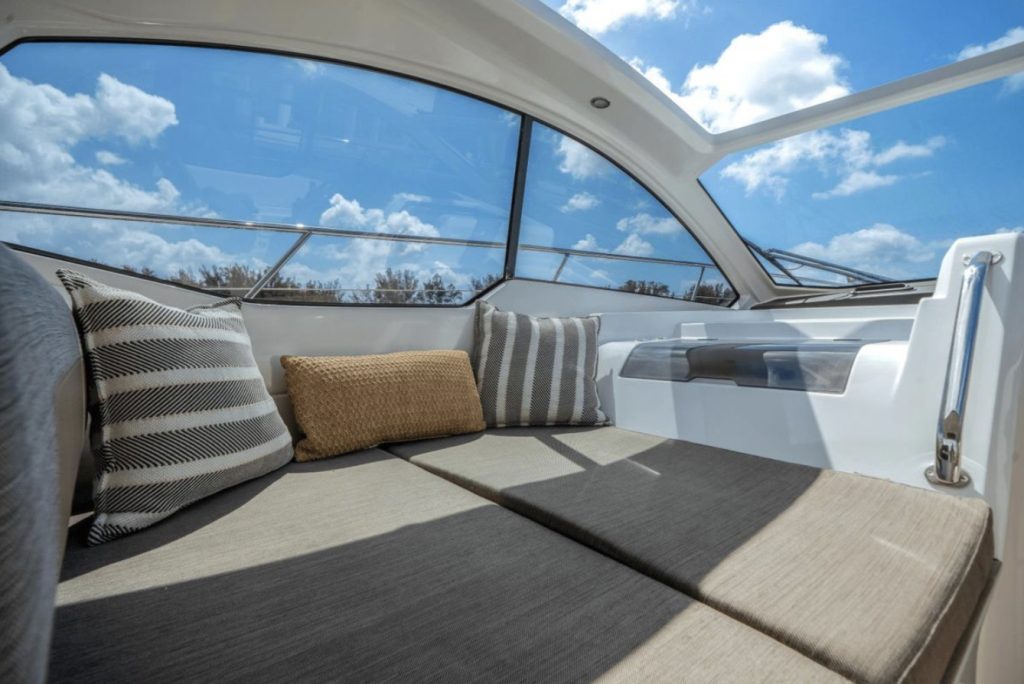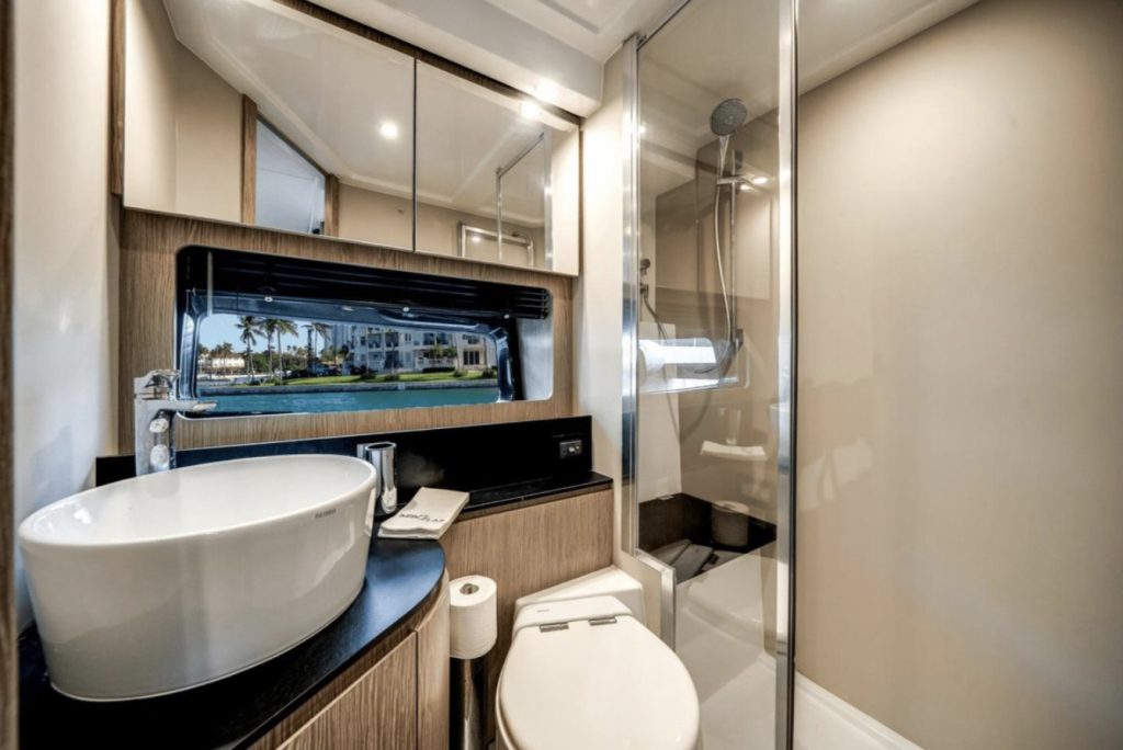 Impact Glaz can accommodate up to 7 overnight guests in 2 cabins along with a convertible dinette. Two full heads, one being the primary ensuite, ensures privacy for all. A spacious and full galley compliments the lower cabin dinette and lounging areas to make staying aboard a pleasure.