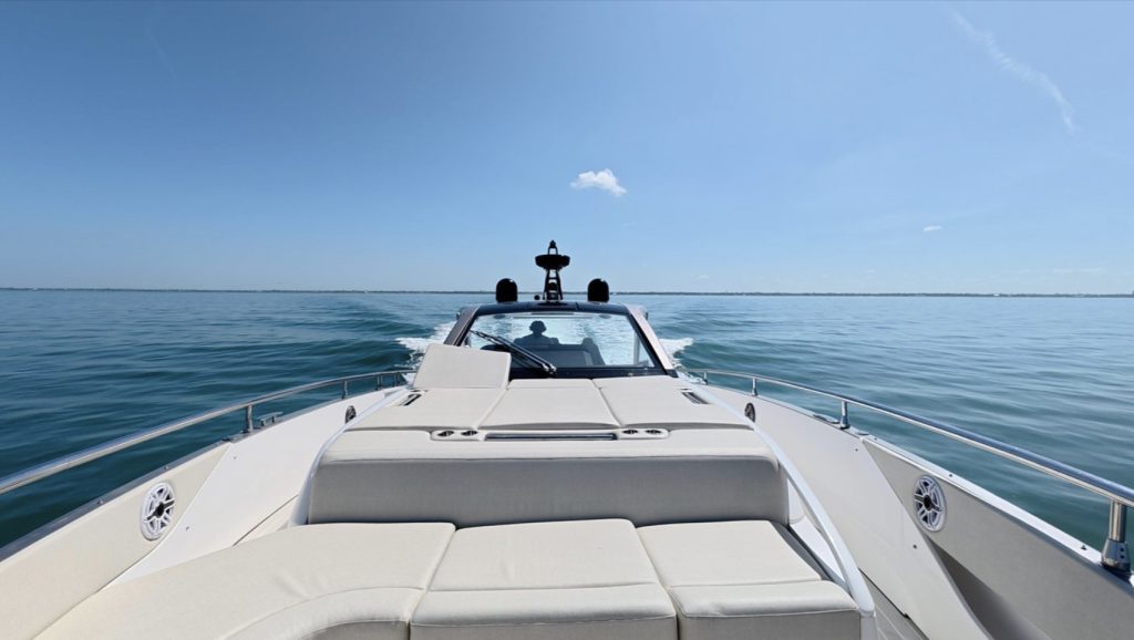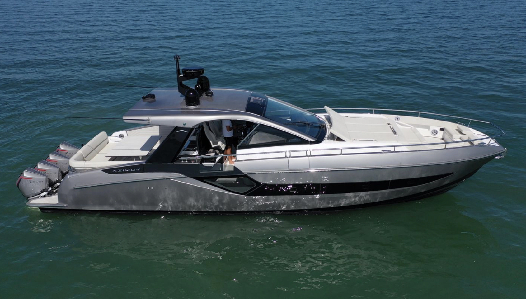 Lift-kept and loaded with premium options, this 2022 Azimut Verve 47 delivers cutting-edge performance and luxury in a sleek, Italian-designed sport yacht. With quad Mercury Racing 450R outboards,(Very Low Hours!!) this Verve tops 50 knots while maintaining exceptional control thanks to joystick piloting and Skyhook station-keeping.