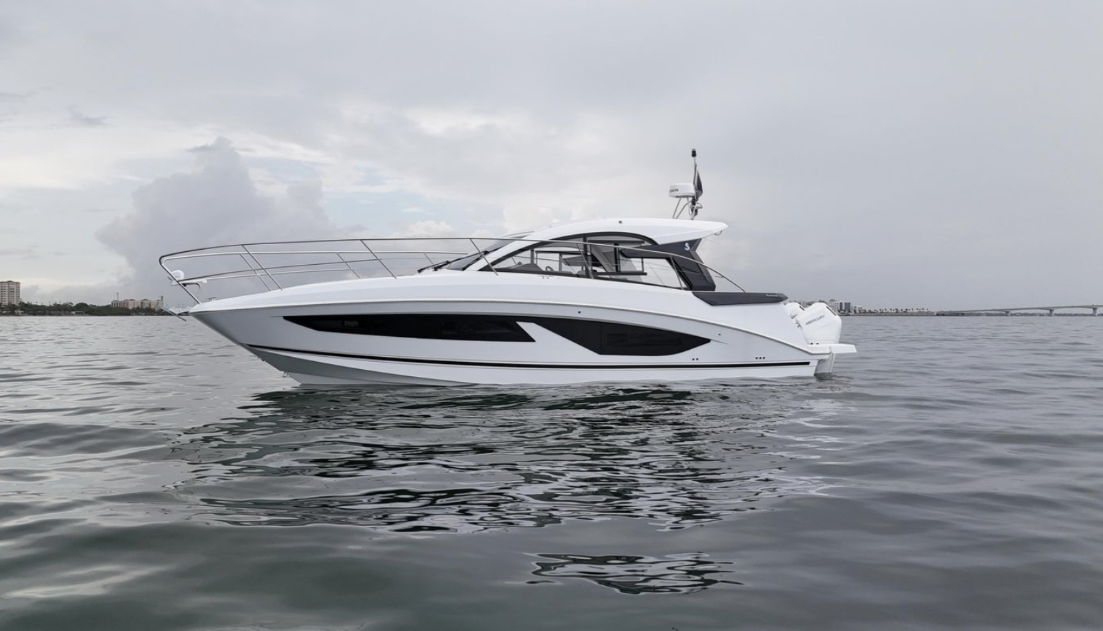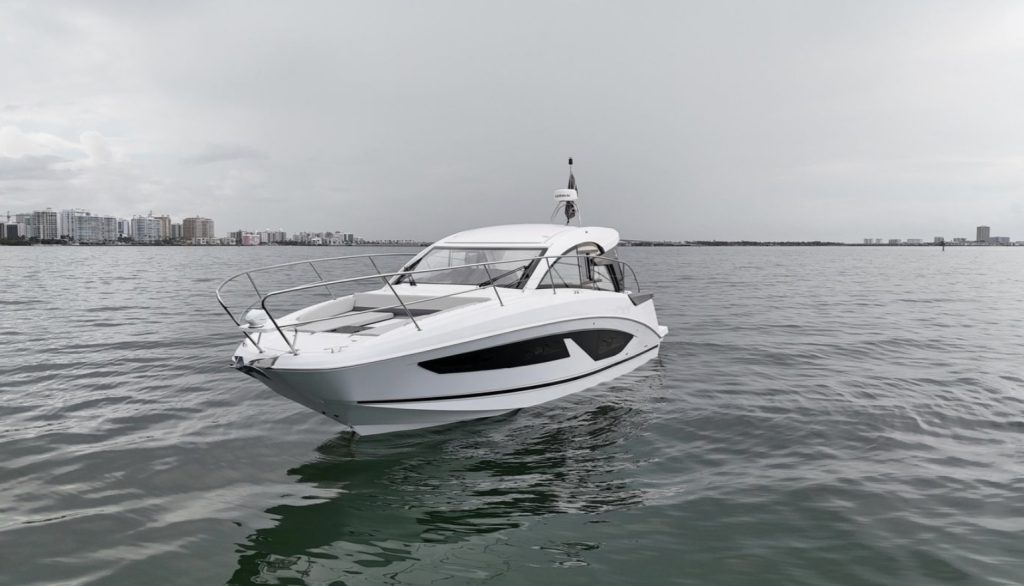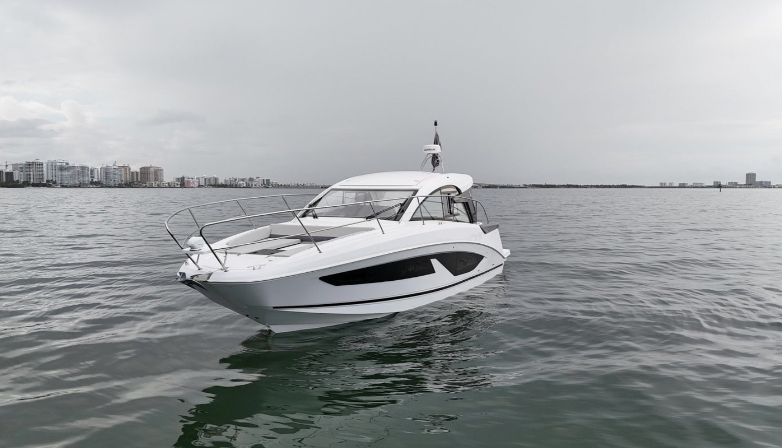 The new Gran Turismo 36 boasts ingeniously designed living spaces that can easily accommodate up to seven and Joystick, Skyhook, Autopilot, and Bow Thruster to make challenging navigation second-nature.