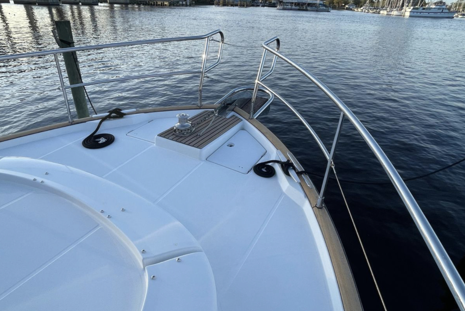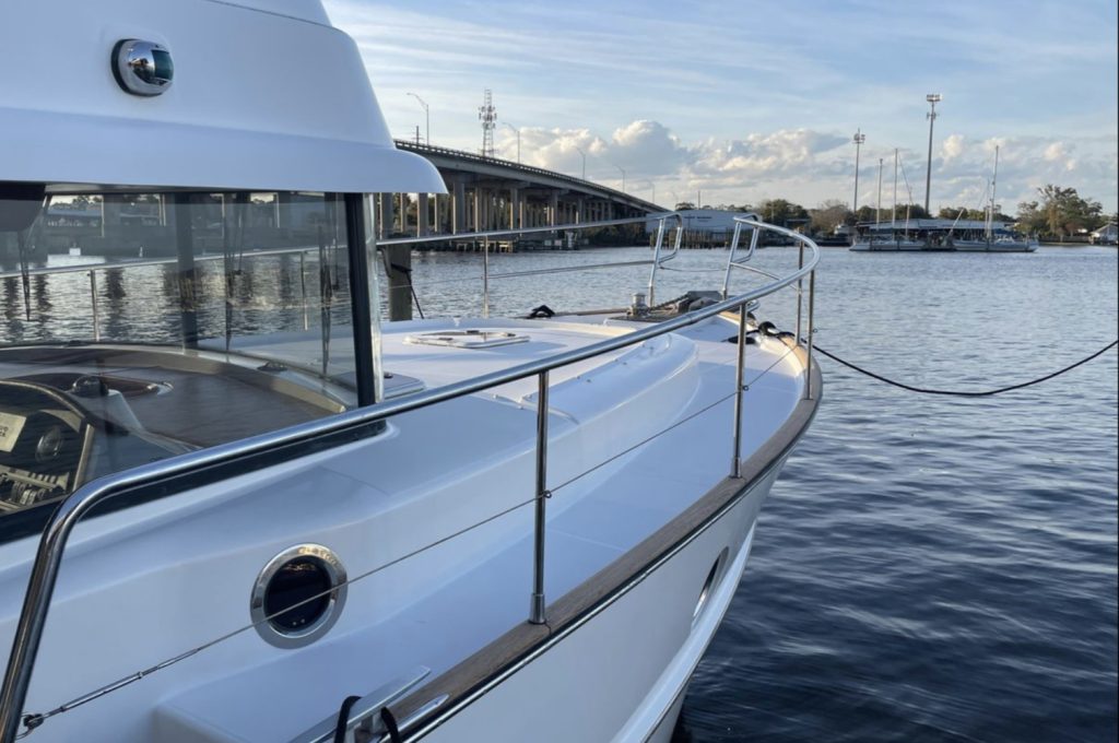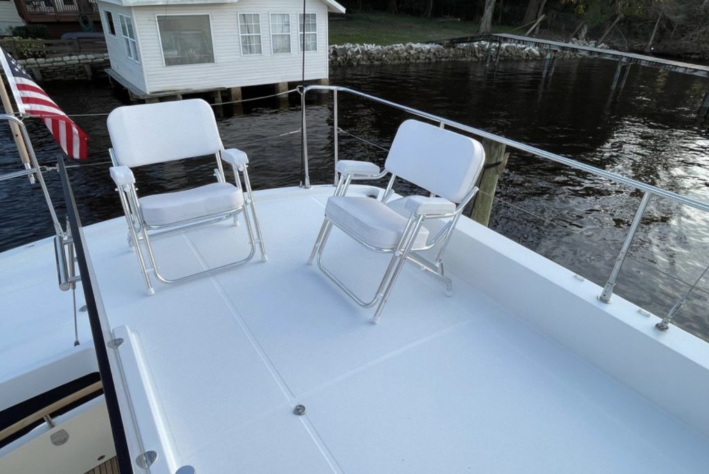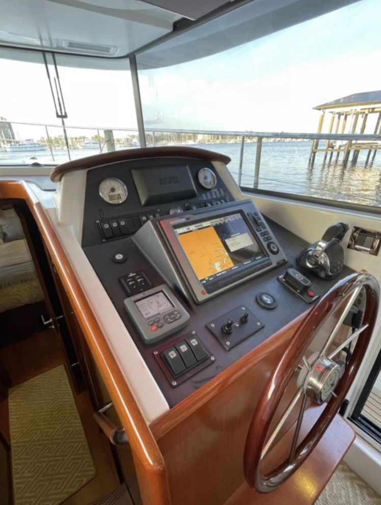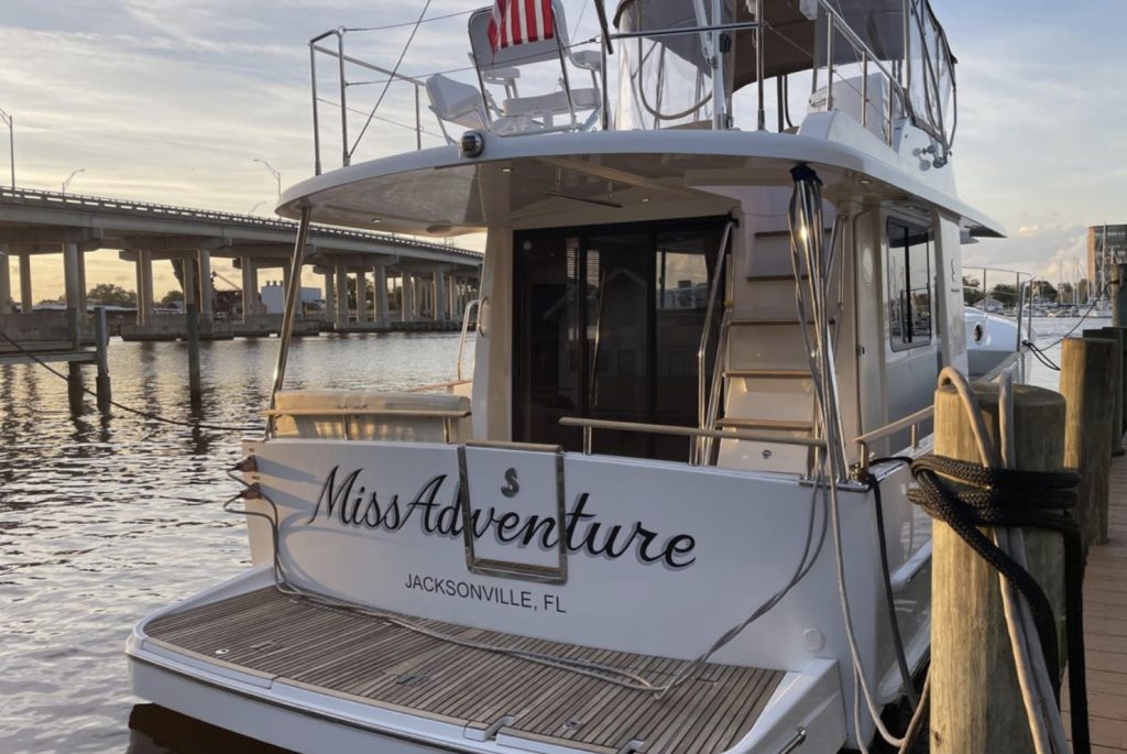 Outstanding opportunity to acquire a low hour excellent condition 44′ Swift Trawler. MISS ADVENTURE is located on the Ortega River in Jacksonville, Florida in a fresh air and near (80%) freshwater berth.