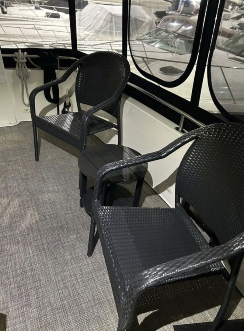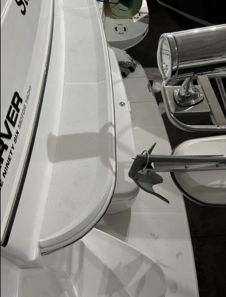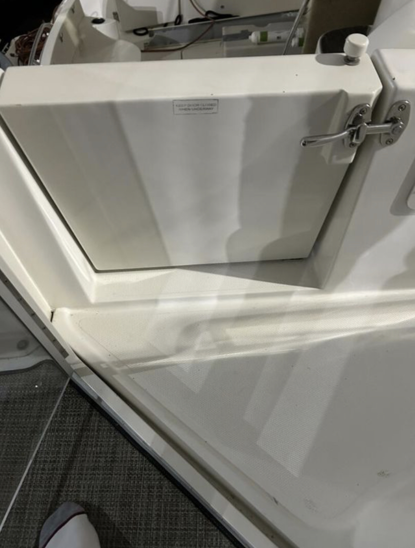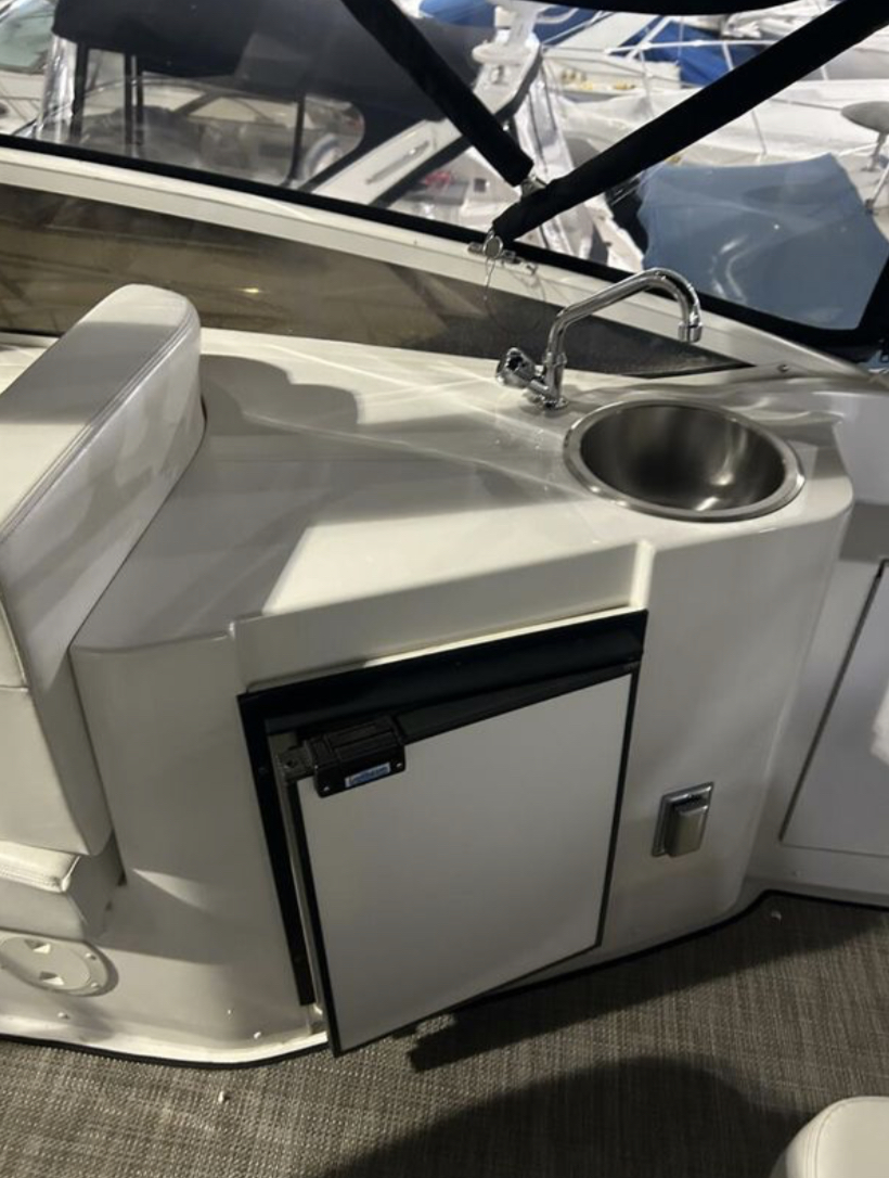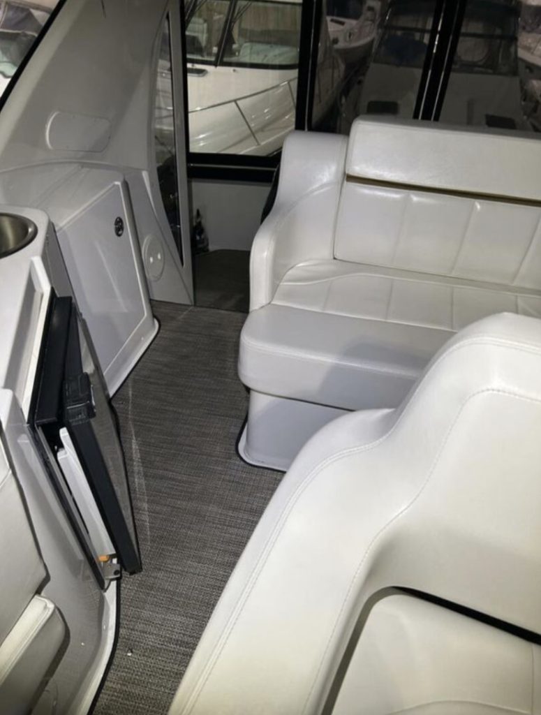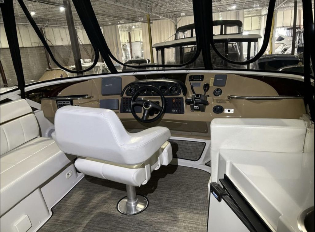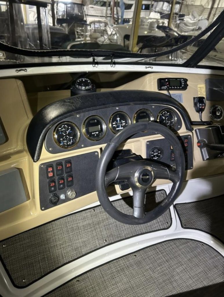 The helm is equipped with a Raymarine 12″ GPS/Radar/Chart Plotter, along with Standard Horizon VHF (new 2024), and Raymarine Autopilot. There’s also an exceptional Clarion stereo system with multiple speakers and a full-function remote control on the bridge.