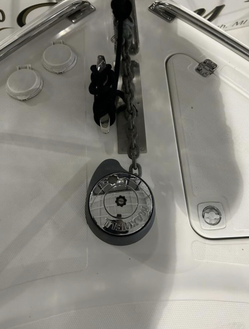 Additional features include a 40lb anchor with 125 feet of chain and windlass pedals on the bow with helm controls as well.