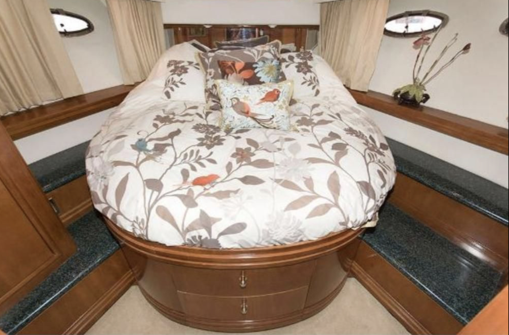The 506 has three full staterooms, each with a private head for added privacy and luxury. The master stateroom aft features incredible amounts of storage, a queen-size, inner-spring island berth, and a private head with separate water closet and shower compartments.