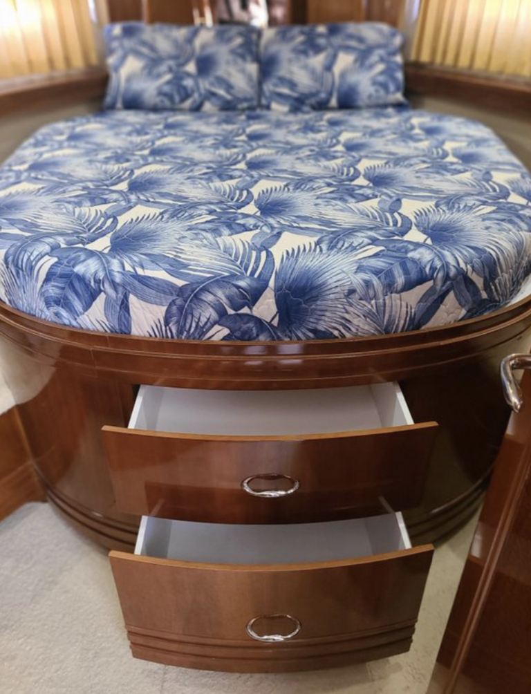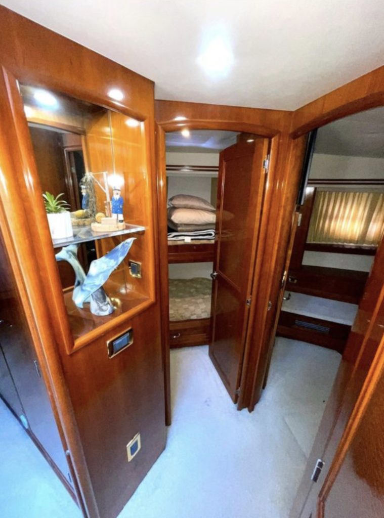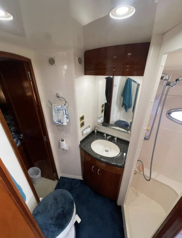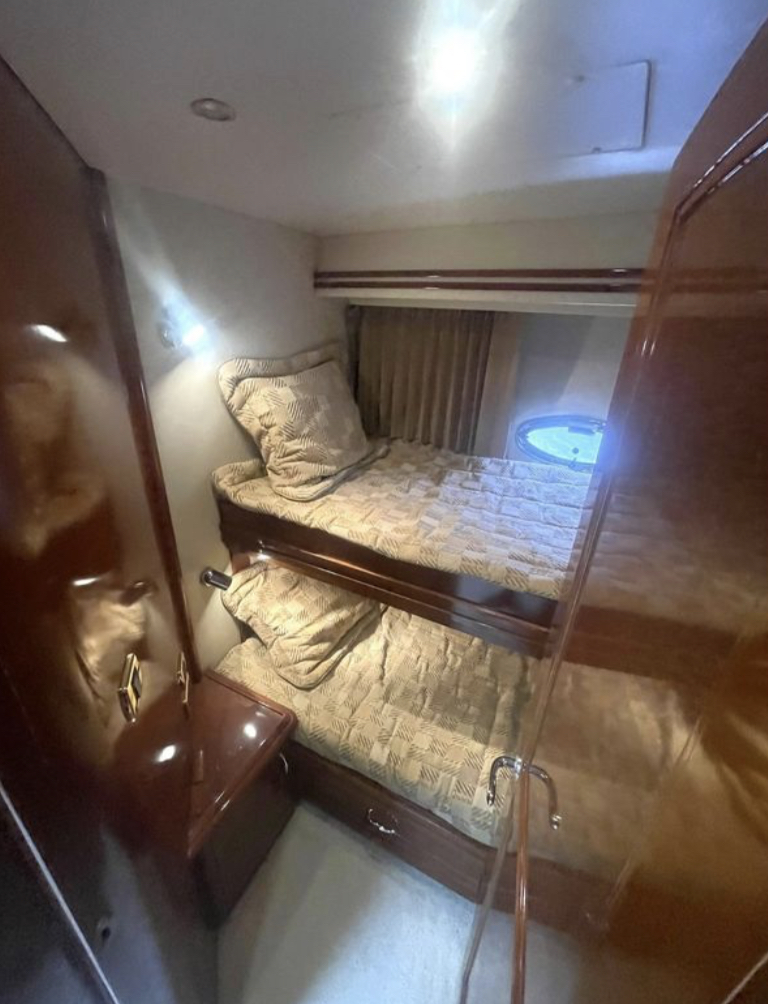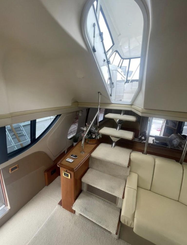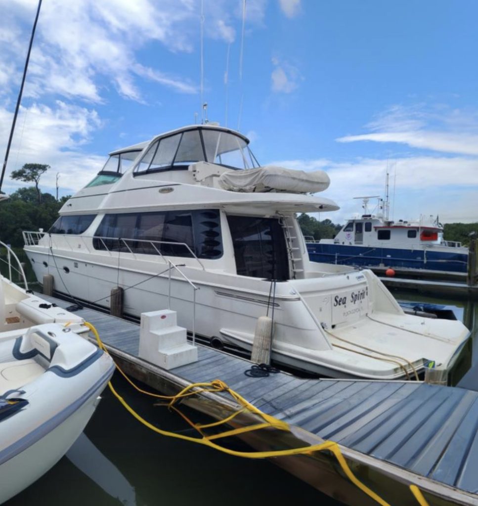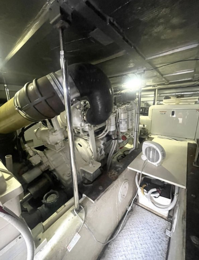 “SEA SPIRIT” is very well quipped with the all the right options, she boasts a factory Hard Top, Davit for a tender on the aft bridge deck, twin 50 amp shore power service, Kohler generator in a sound enclosure, NEW(2024)Bow & Stern Thrusters, neutral cabin appointments, windlass anchor with remote foot pedals on the bow,