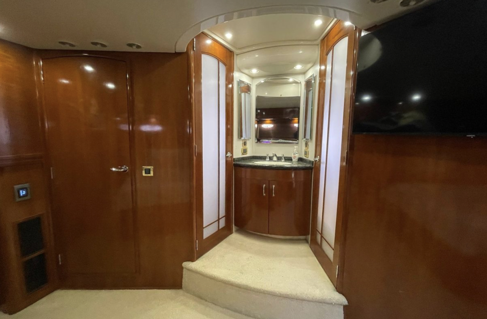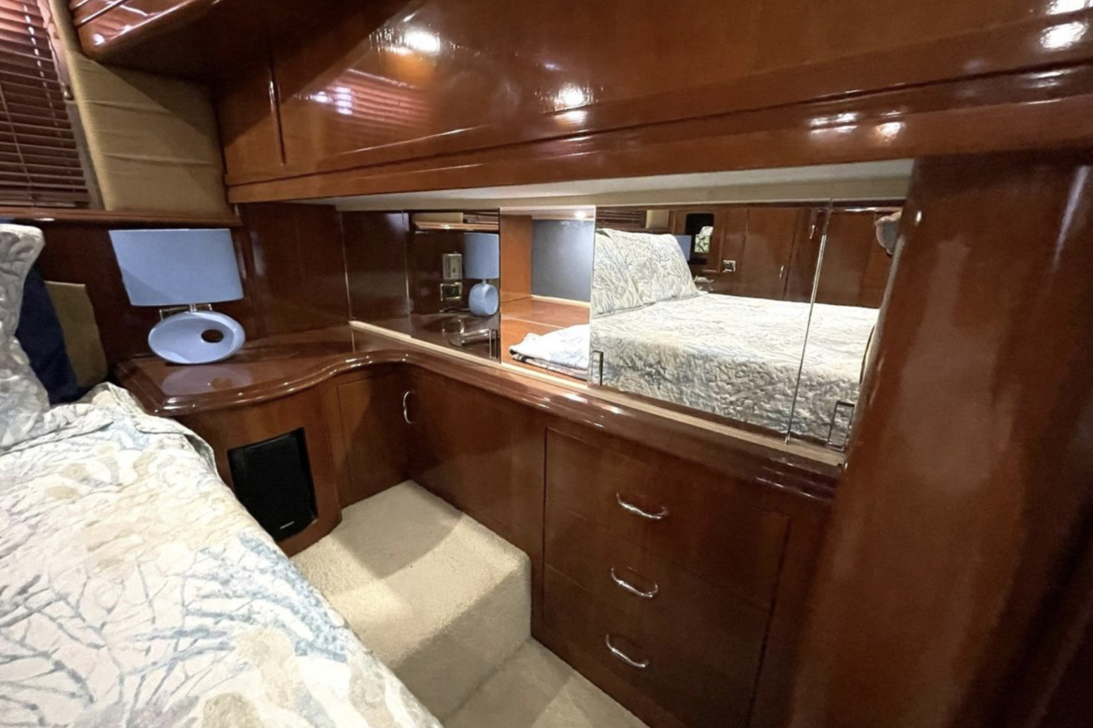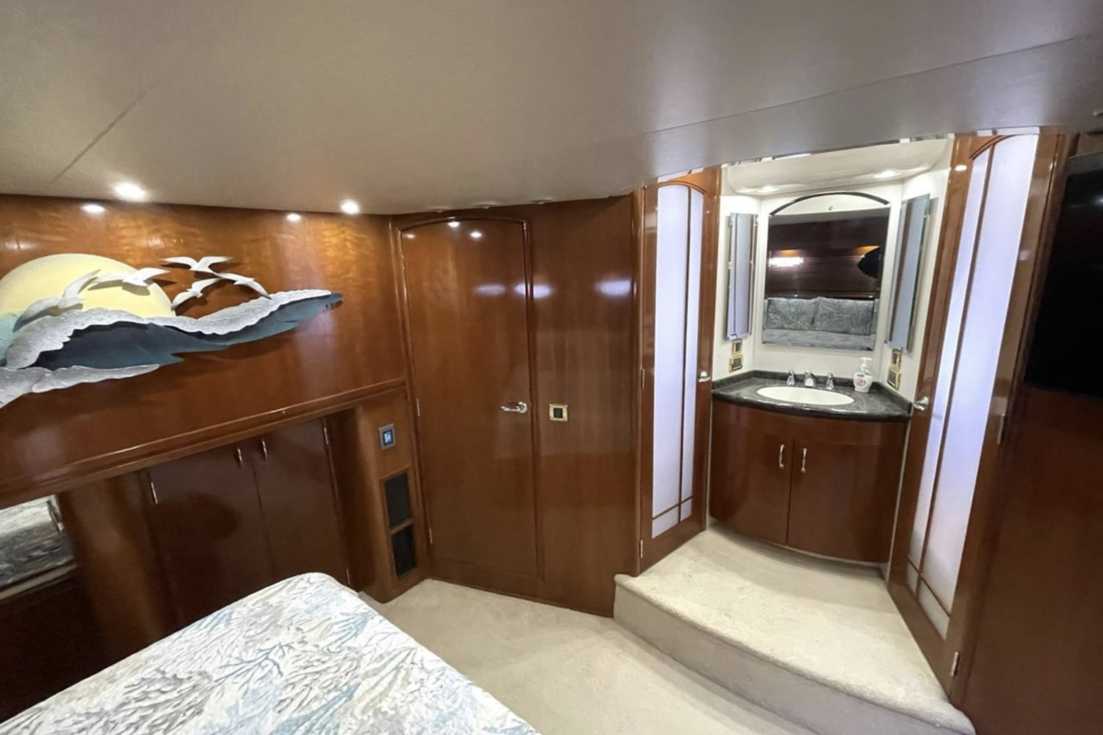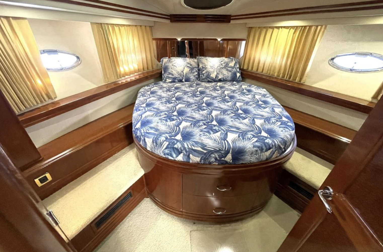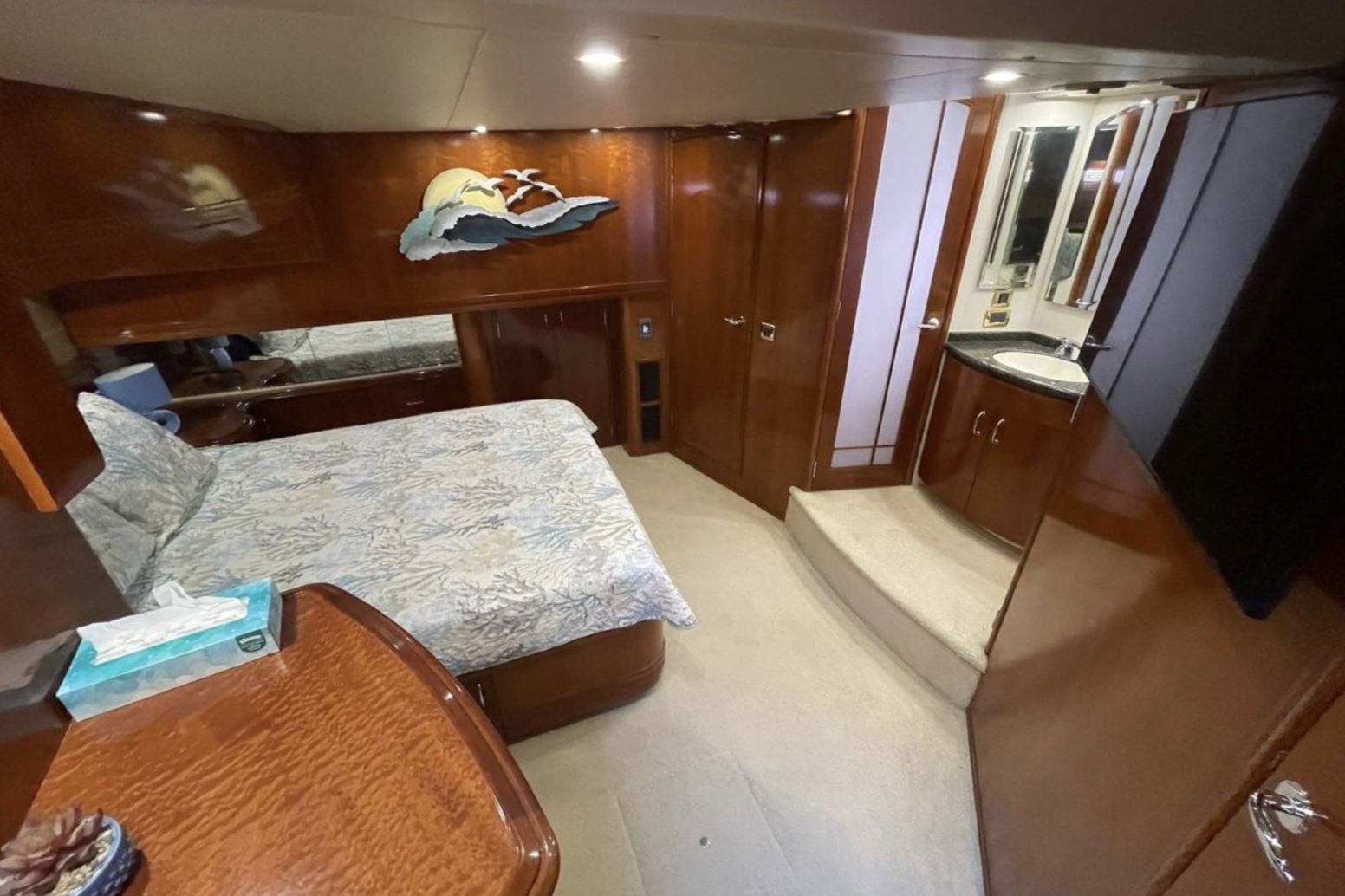 “SEA SPIRIT” is very well quipped with the all the right options, she boasts a factory Hard Top, Davit for a tender on the aft bridge deck, twin 50 amp shore power service, Kohler generator in a sound enclosure, NEW(2024)Bow & Stern Thrusters, neutral cabin appointments, windlass anchor with remote foot pedals on the bow,