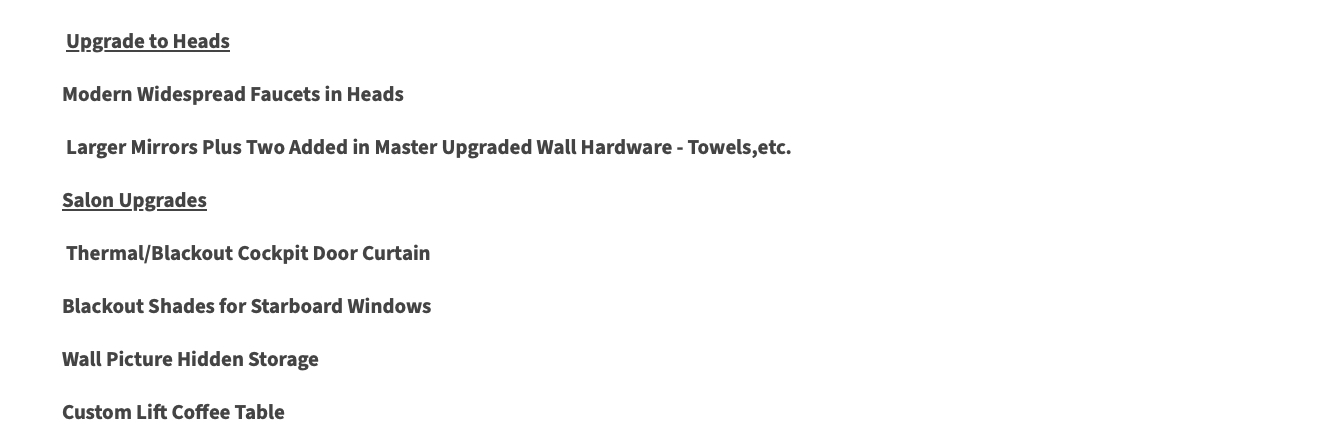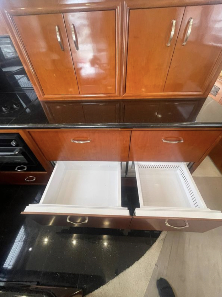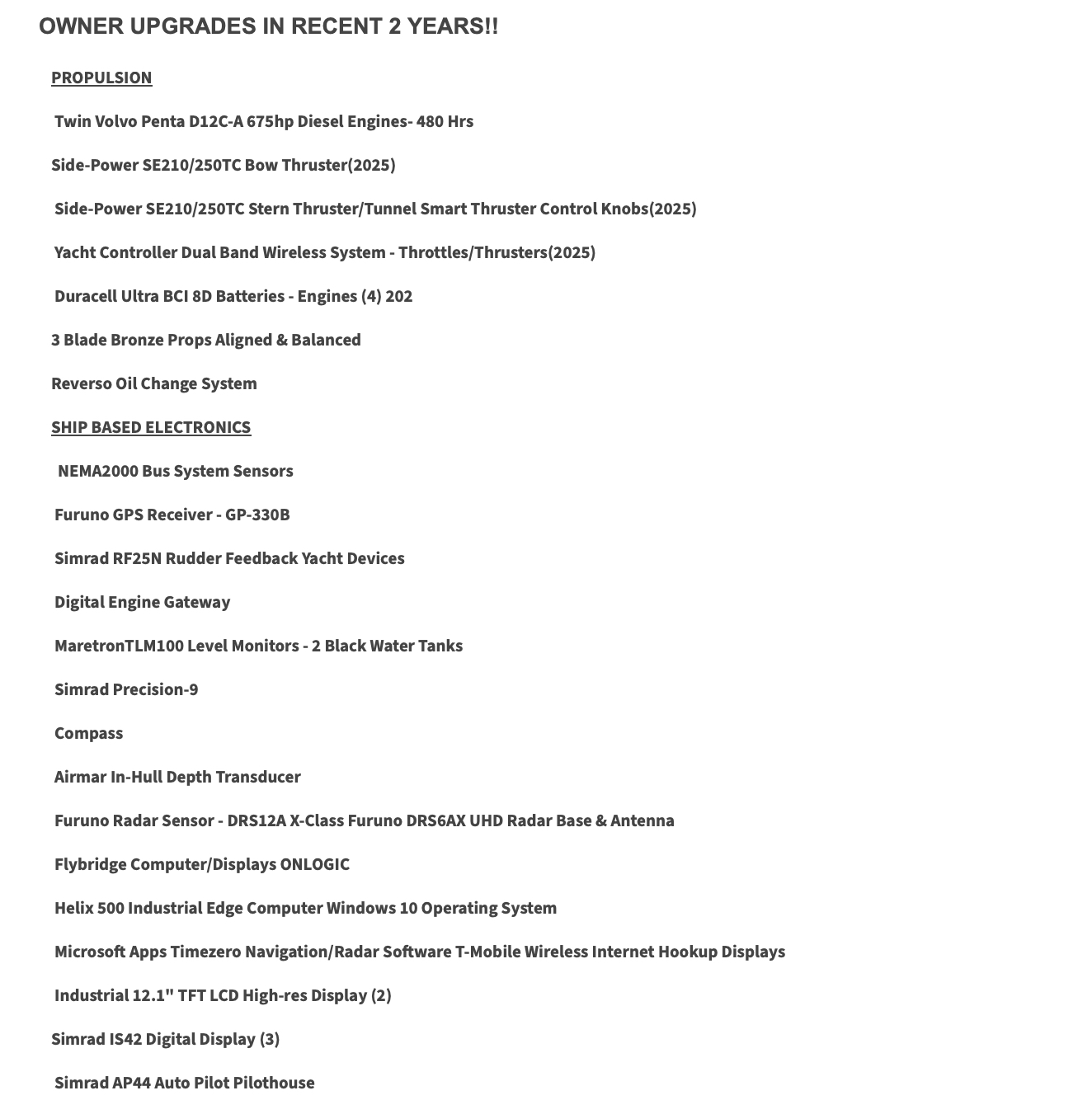 Highlights include a NEW Yacht Controller, extensive NEW electronics suites at lower & upper helms, NEW UPGRADED Bow & stern thrusters, NEW refrigeration in the galley with 4 drawers, NEW oven, NEW microwave/convection oven, NEW double stainless steel sinks with built in cutting board top on one side, COMPLETELY NEW AC/HEAT systems throughout the boat, NEW acrylic enclosures on the bridge, and more!!