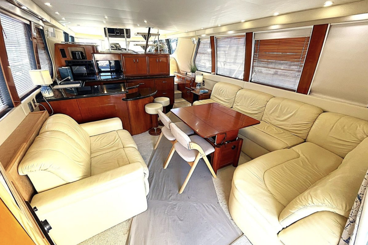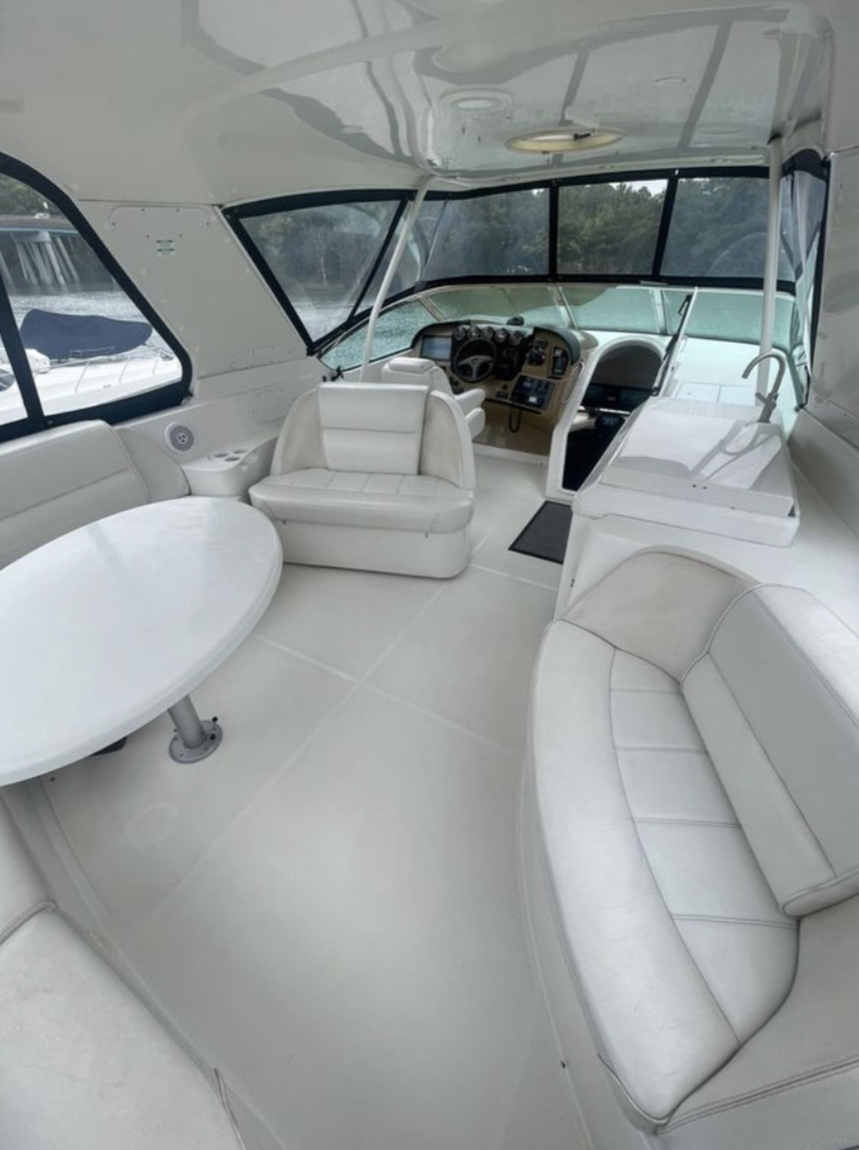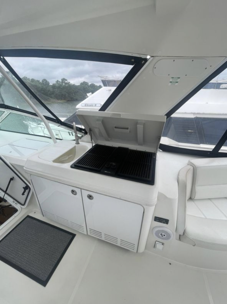 Bow Sun Pads w/custom retractable back rests, bridge wet bar with electric grill, fridge, & freezer. Her current owners have spent painstaking time and effort to upgrade her throughout, with well over $100K of improvements!!