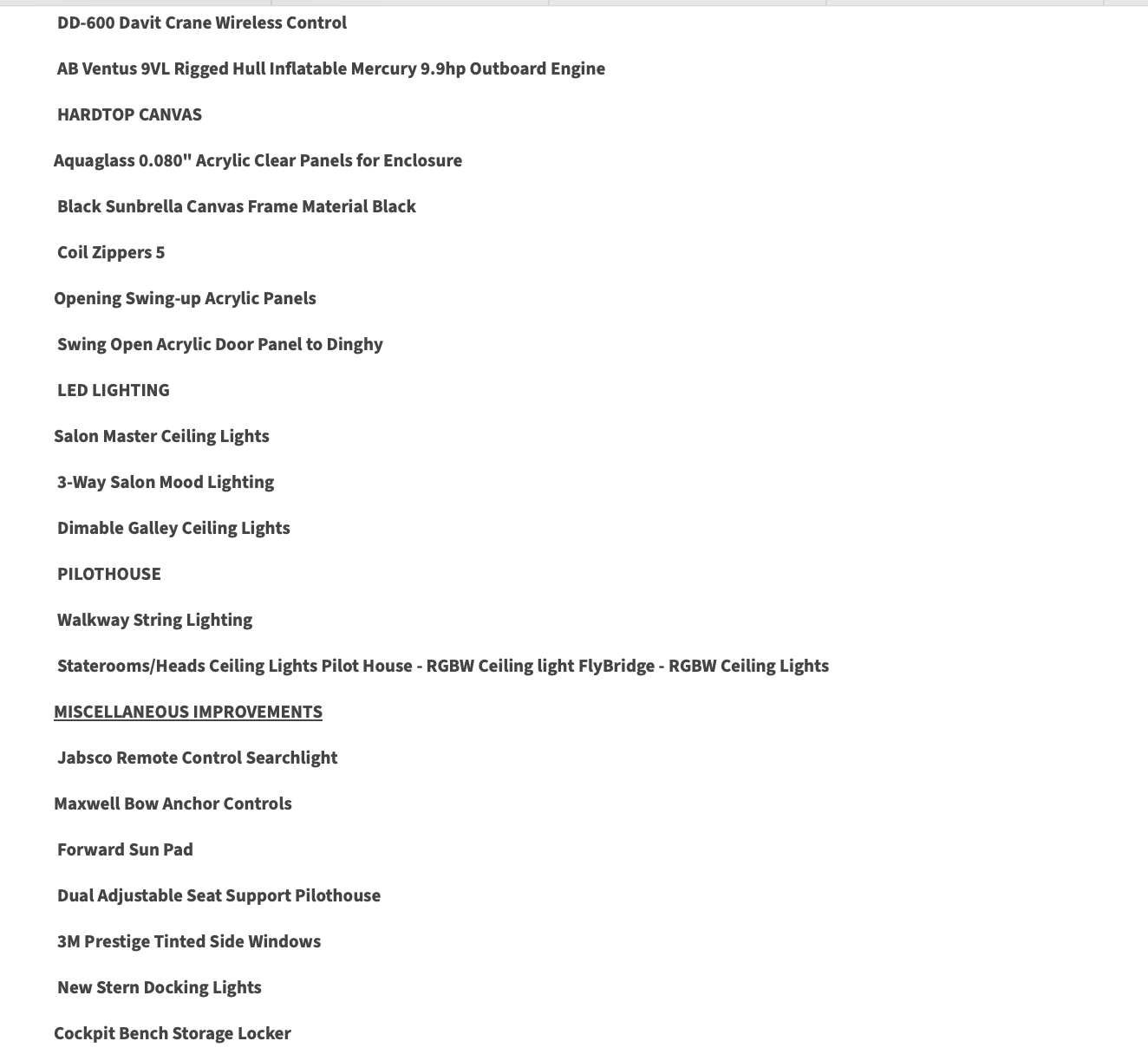 - A/C présente dans la zone: Flybridge , Section Intérieure