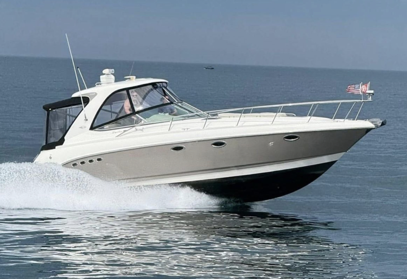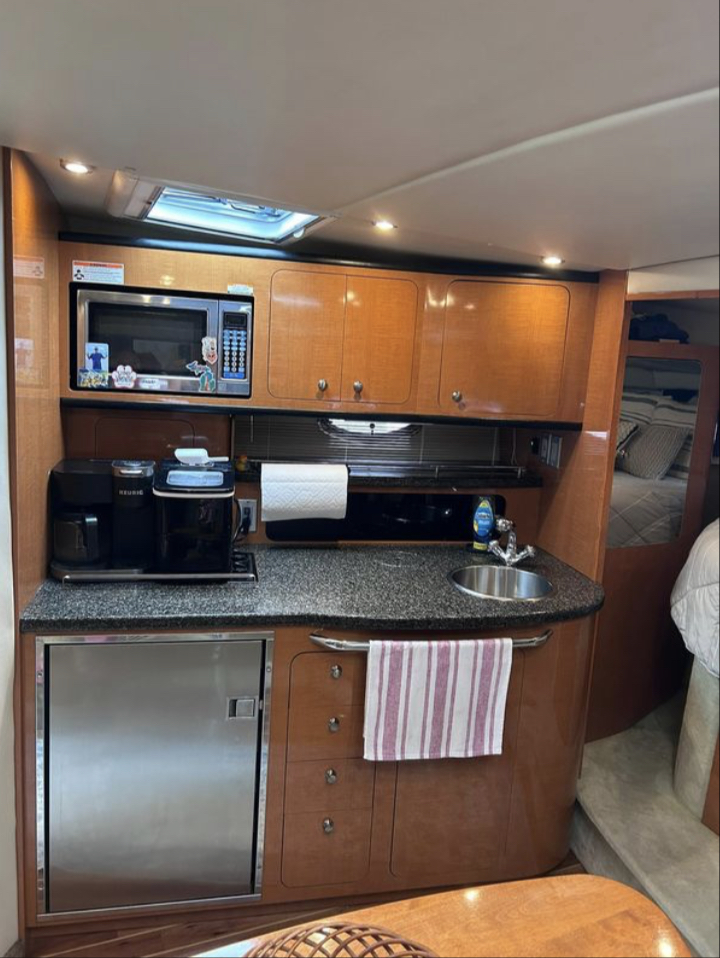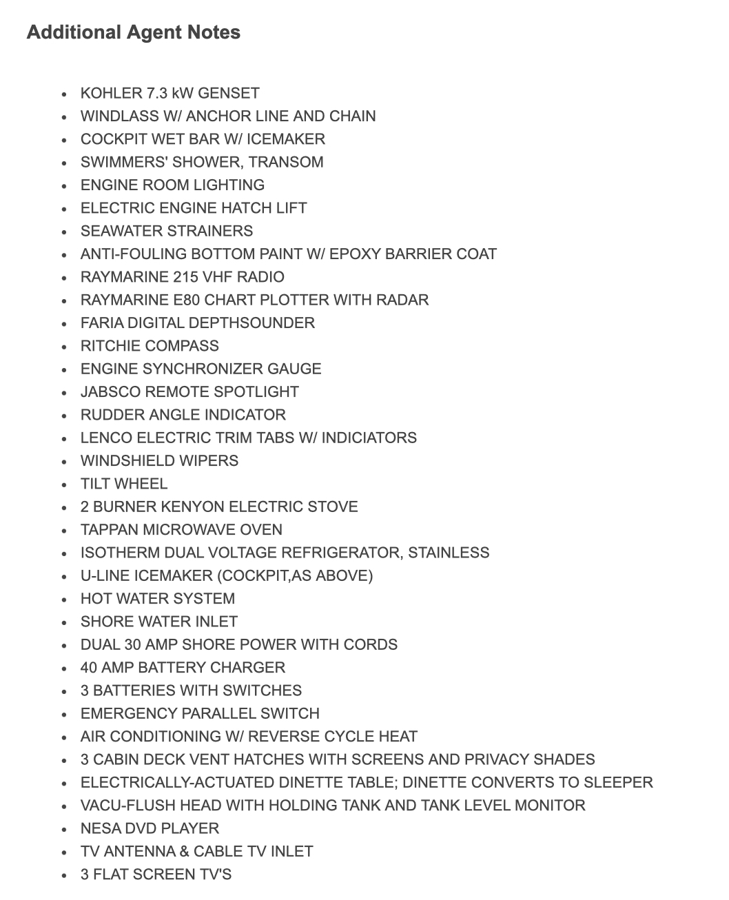 “Deep Waters” includes all standard factory equipment such as generator, windlass, flat screen televisions, Kevlar hull reinforcement, central vac, stainless steel galley appliances and many more luxury features, plus these original factory and dealer-installed options: