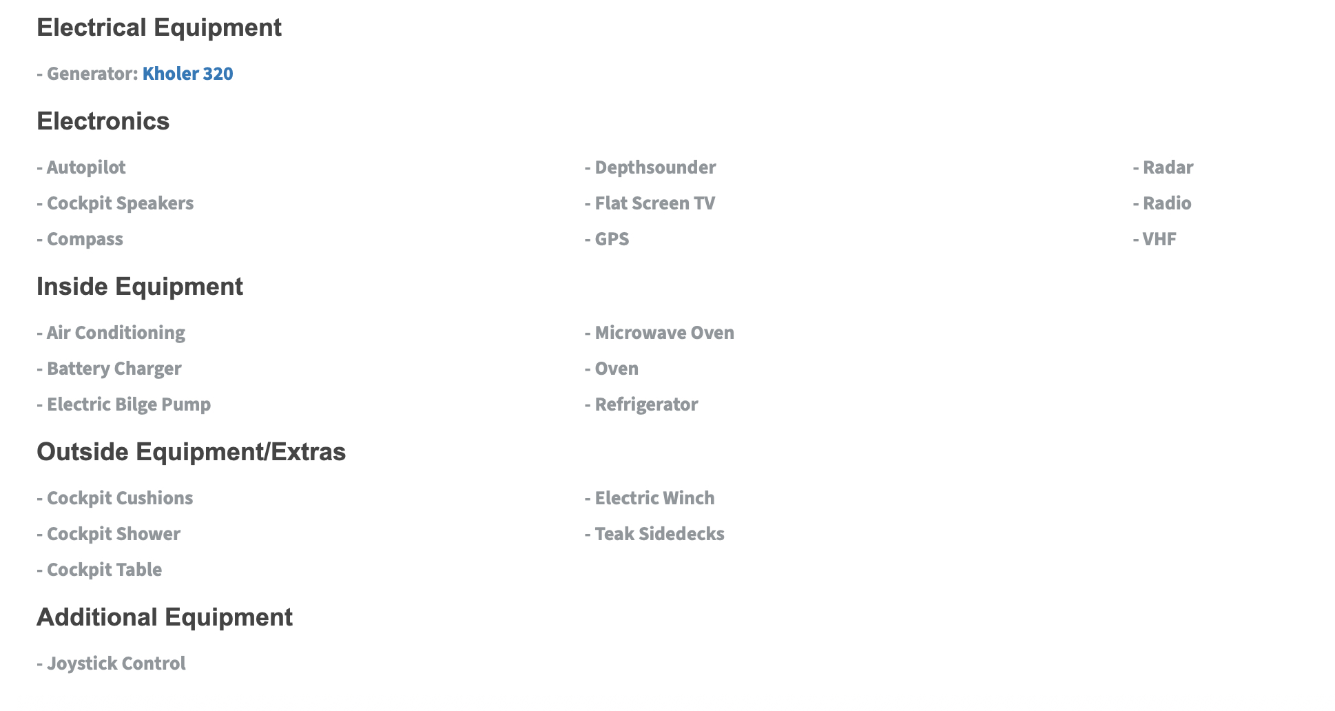Le bateau qui est présenté sur cette page, l’est uniquement à titre d'information et n'est pas nécessairement toujours disponible à la vente et/ou à la location. Ce bateau est peut-être offert sous réserve, il faut vérifier sa disponibilité. Ce document ou cette annonce n'est pas contractuel. Les informations sur les bateaux affichées dans les résultats ci-dessus sont présentées en toute bonne foi et, bien qu'elles soient considérées comme correctes, elles ne sont pas garanties. Ita Yachts Canada et/ou ProprioBateau ne garantit pas et n'assume aucune responsabilité légale ou responsabilité pour l'exactitude, l'exhaustivité ou l'utilité des informations et/ou des images affichées, car elles peuvent ne pas être à jour ou encore êtres des images d'un bateau comparable. Toutes les informations sur les bateaux peuvent être modifiées sans préavis et sont sans garantie. Ce bateau est peut-être offert par un autre courtier ouvert au co-courtage (co-brokerage).