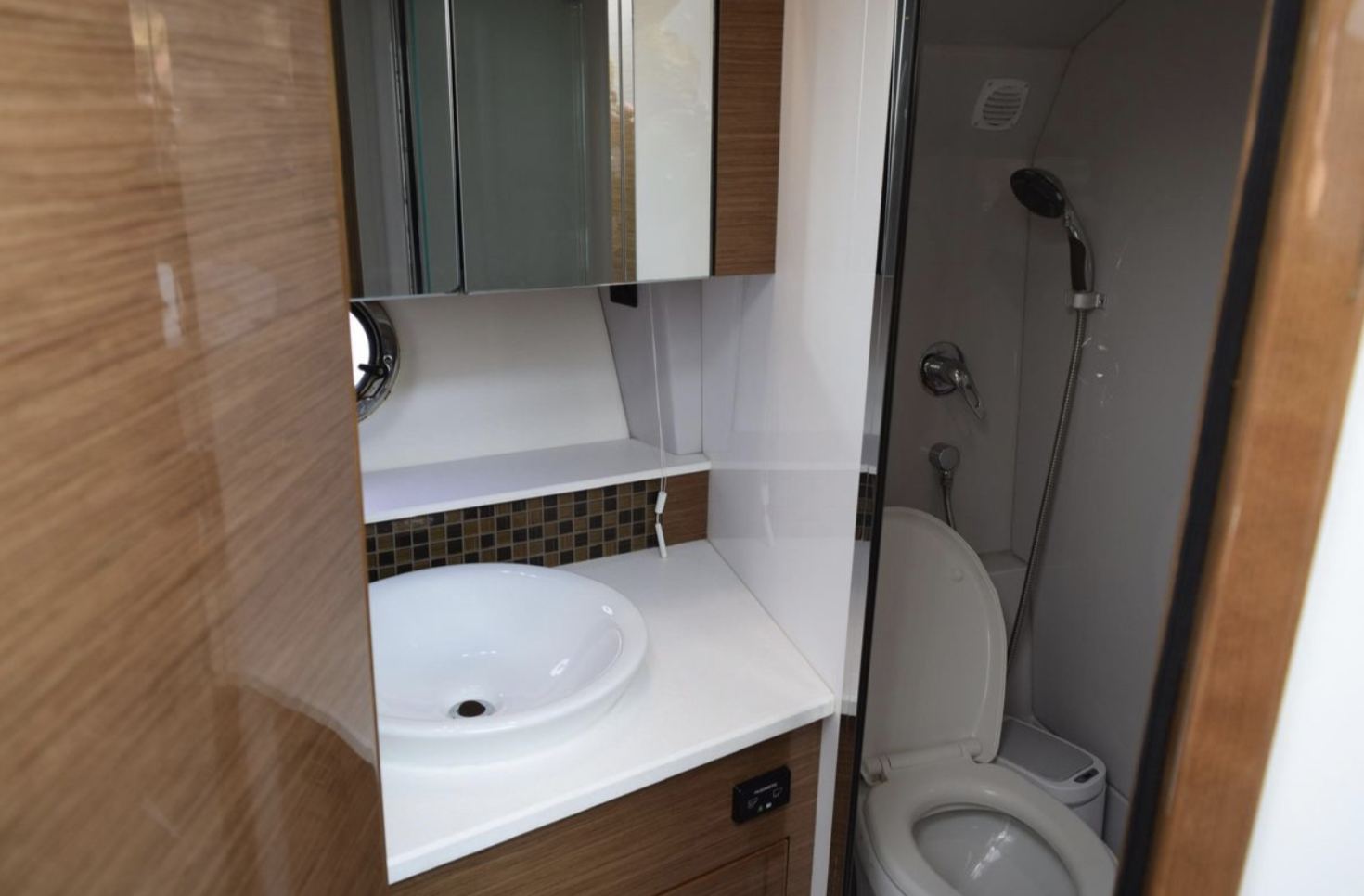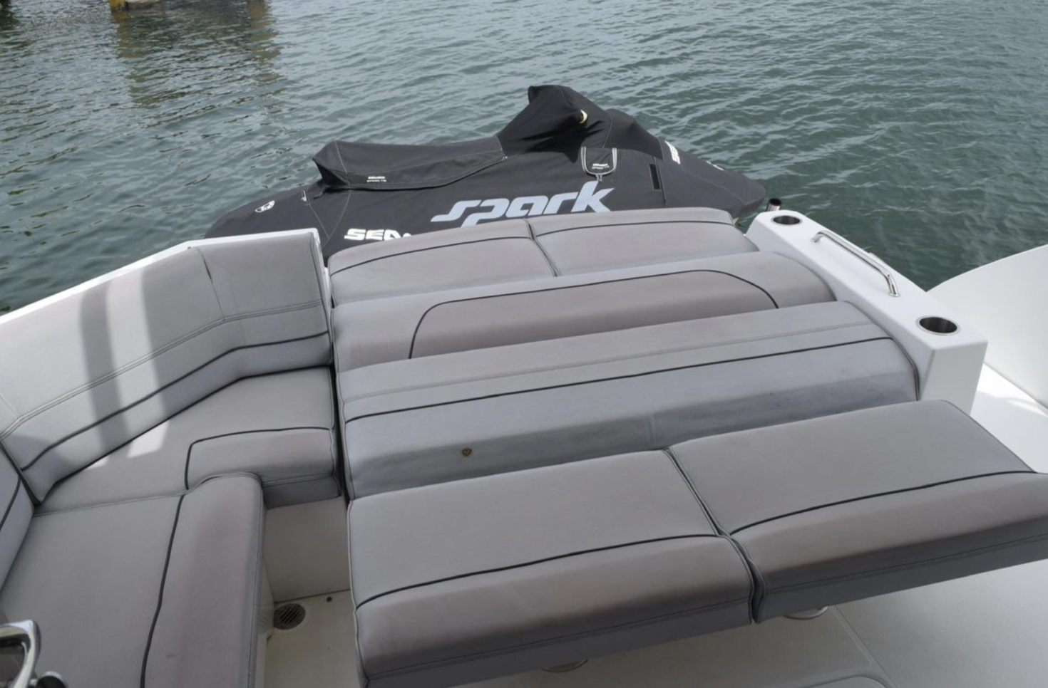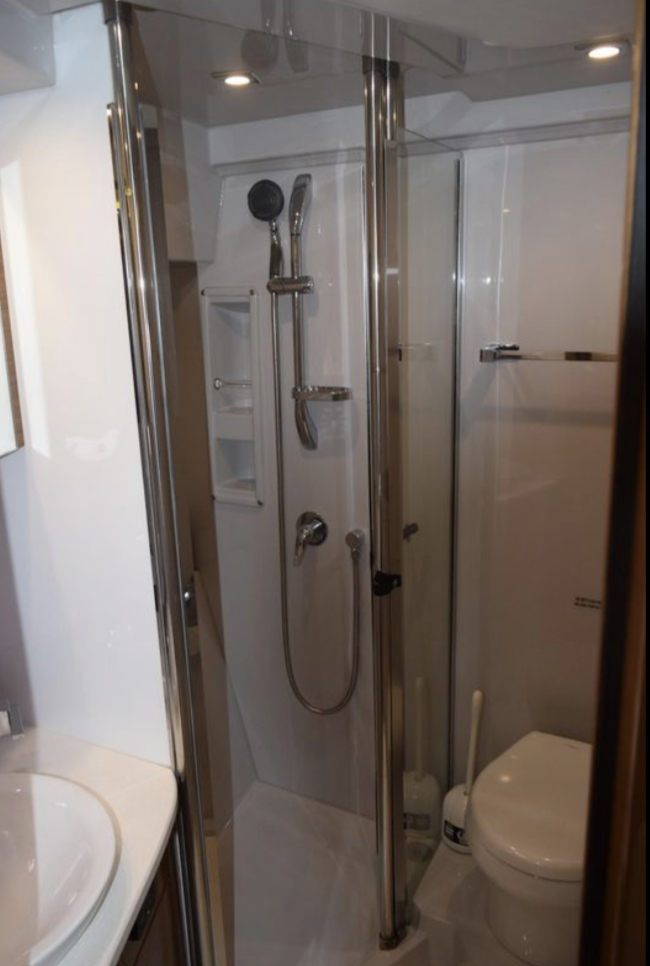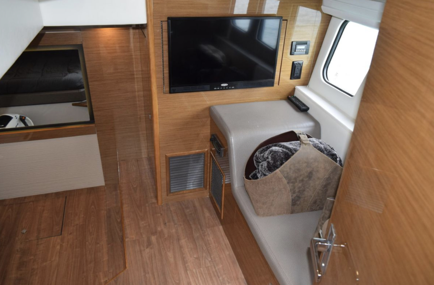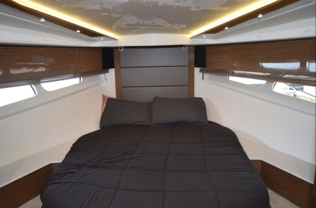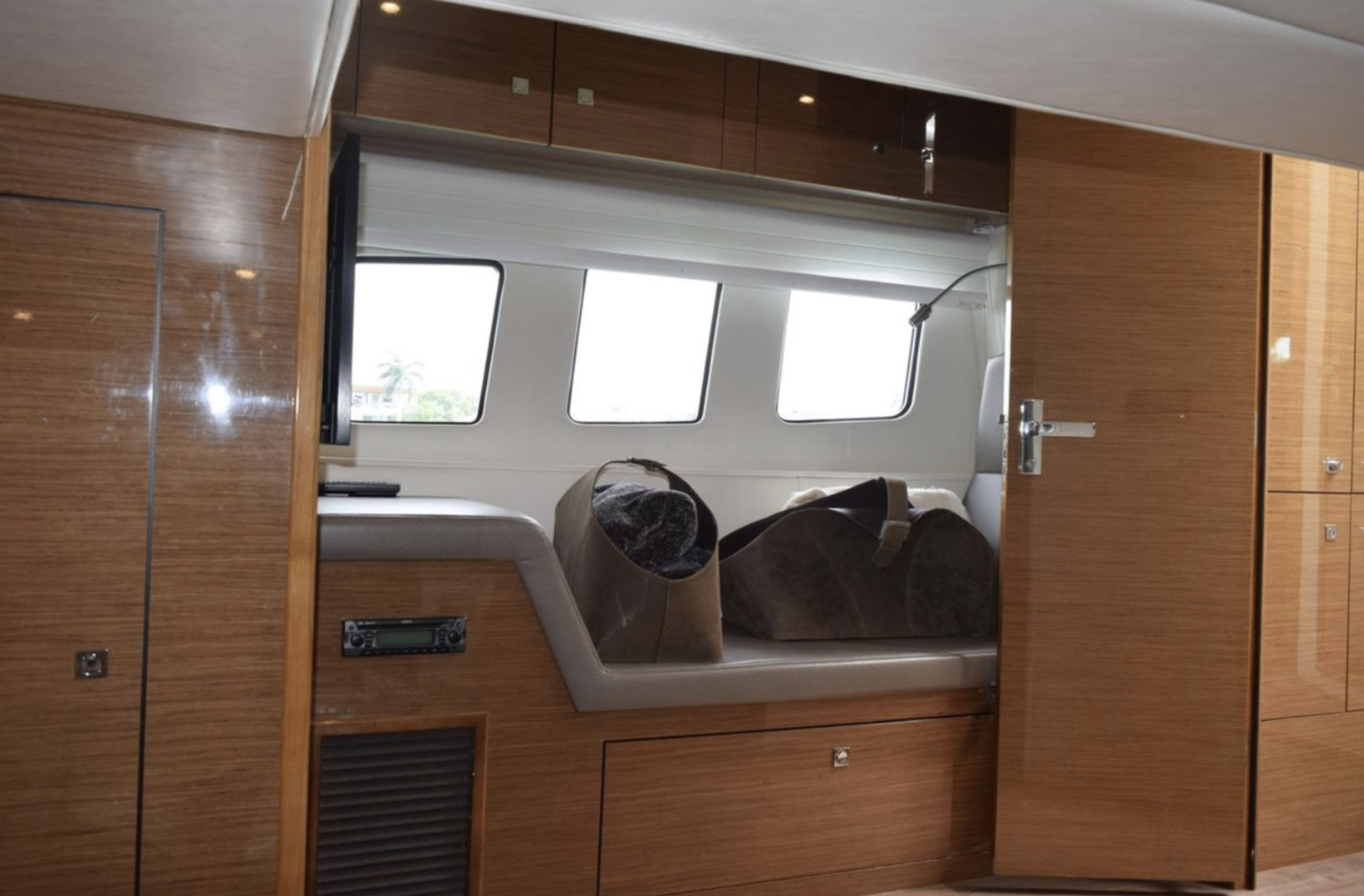 Twin 12 in Garmin’s at HelmMaster and VIP State rooms Master Head with separate shower Wet head in VIP room Hydraulic Swim Platform with caulks for Jet ski Electronically actuated Sunbed Hydraulically actuated aft hatch Electric Sunshade Electric Grill in cockpit Dual refrigerators in cockpit Fold up aft glass to open up floor plan and aft barConvection Oven is GalleyTV in salon, Master bed room and VIP State Room Fusion Stereo System Galley Fridge/ Freezer