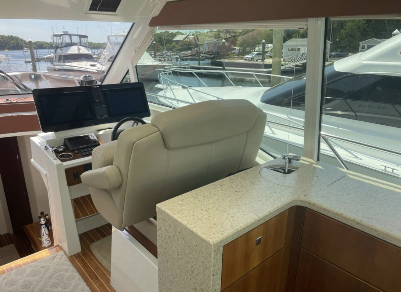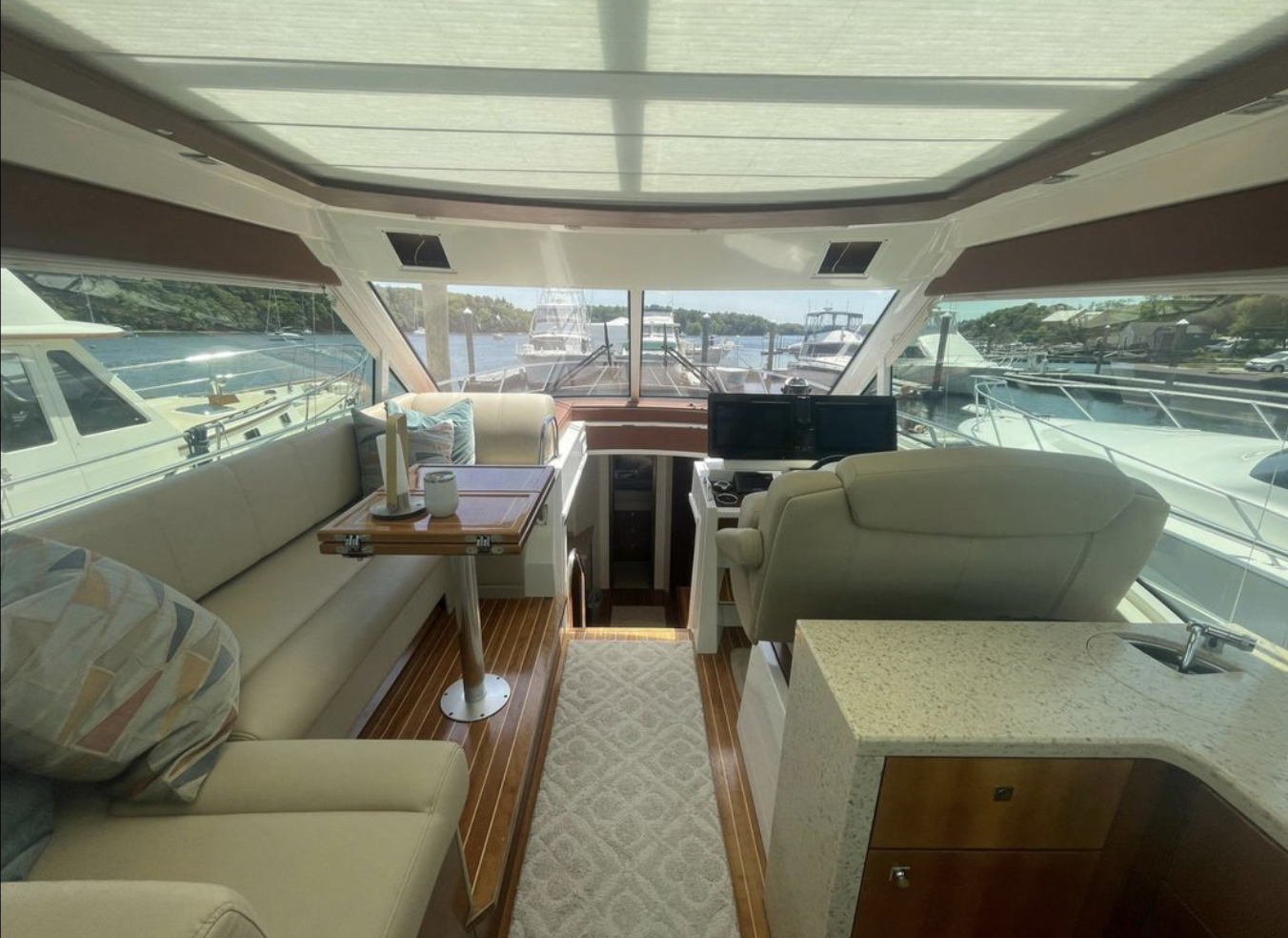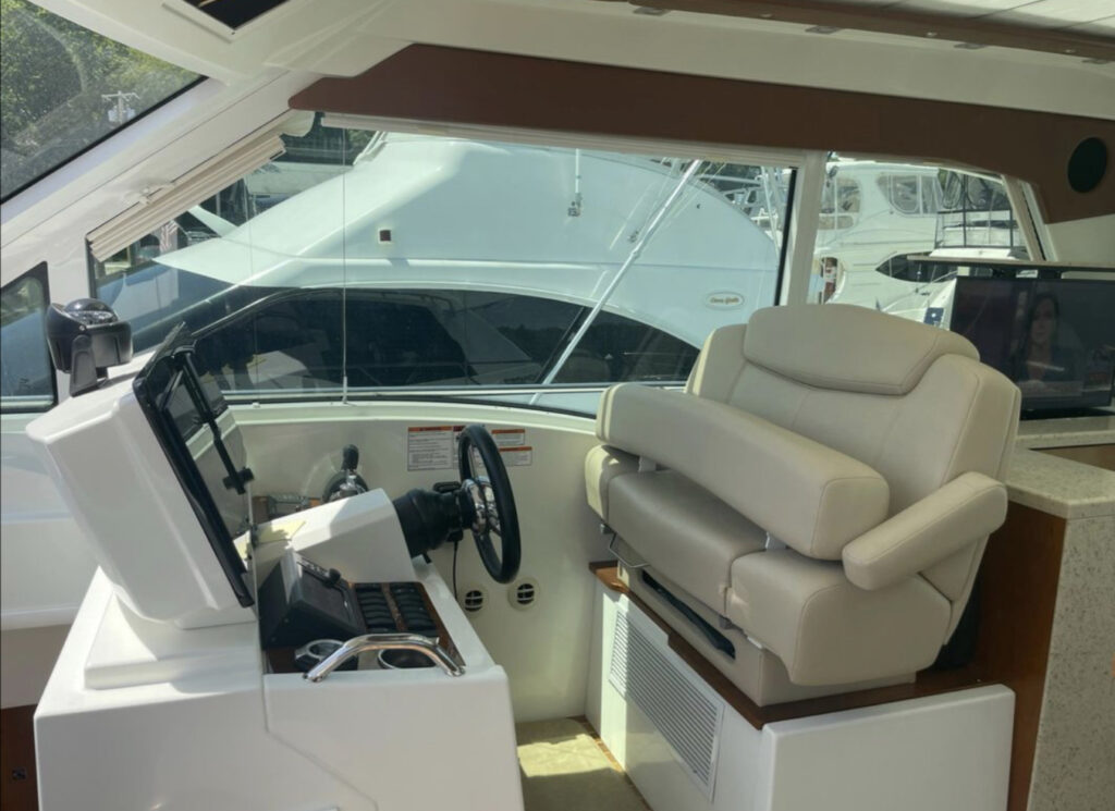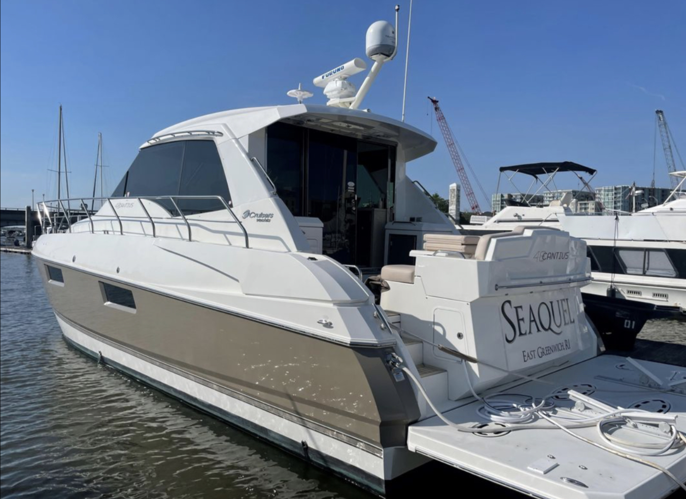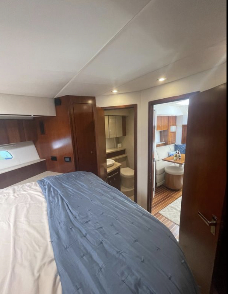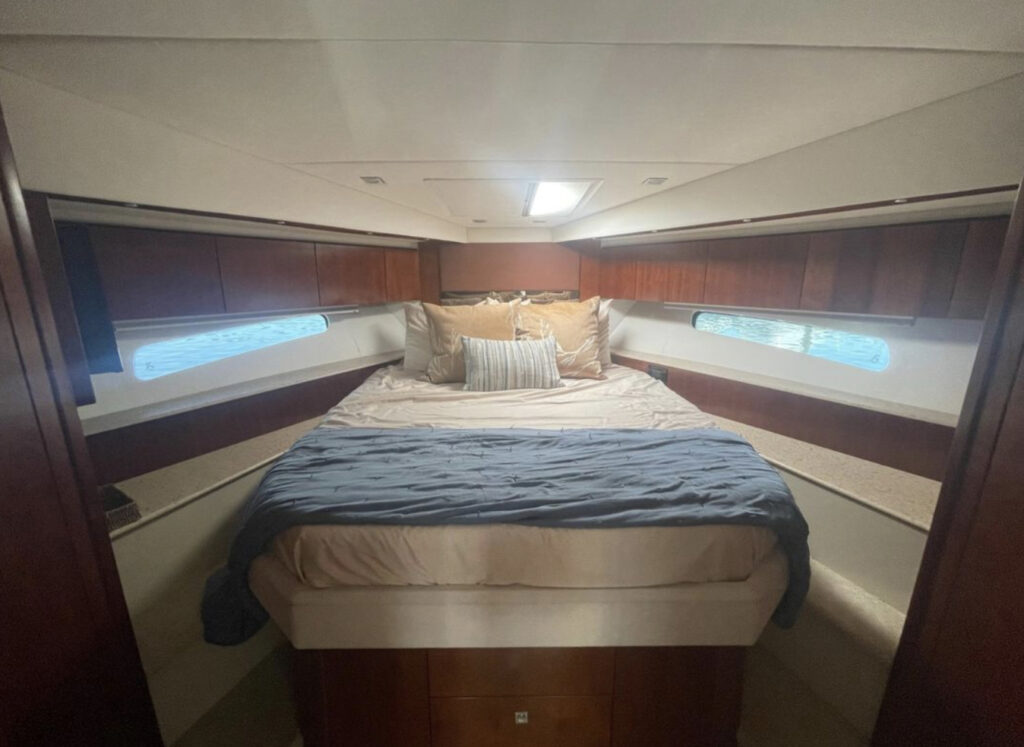 The Cruisers Cantius 48 is a boat with a unique layout with ample space for all. The two state room, Bow VIP and Full Beam Master, are both equipped with en-suite head and showers, cedar hanging closets, and storage. The gracious Galley and Seating are spacious and illuminated with great natural light.