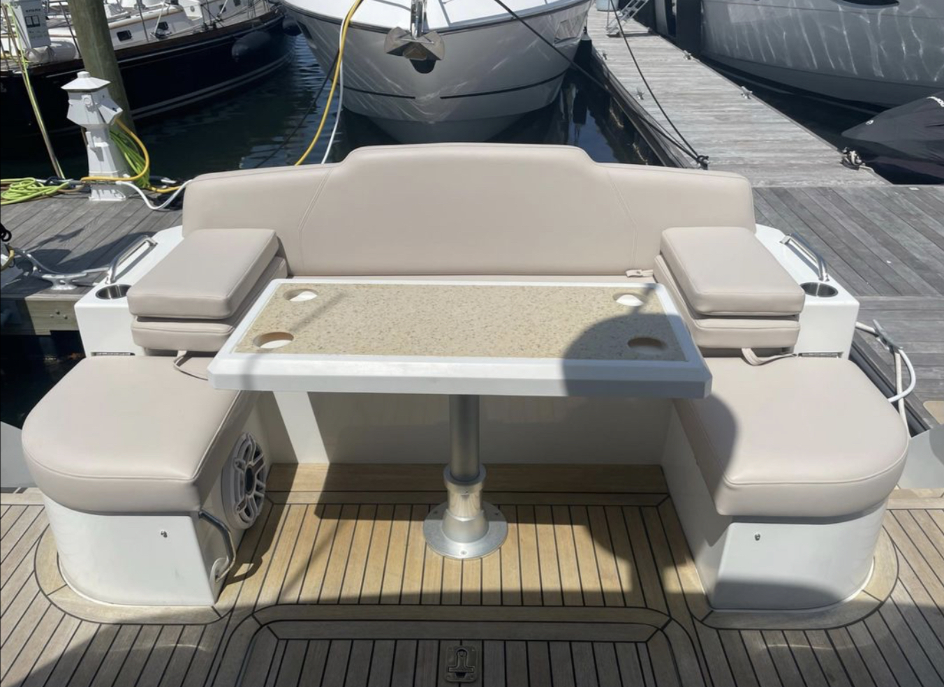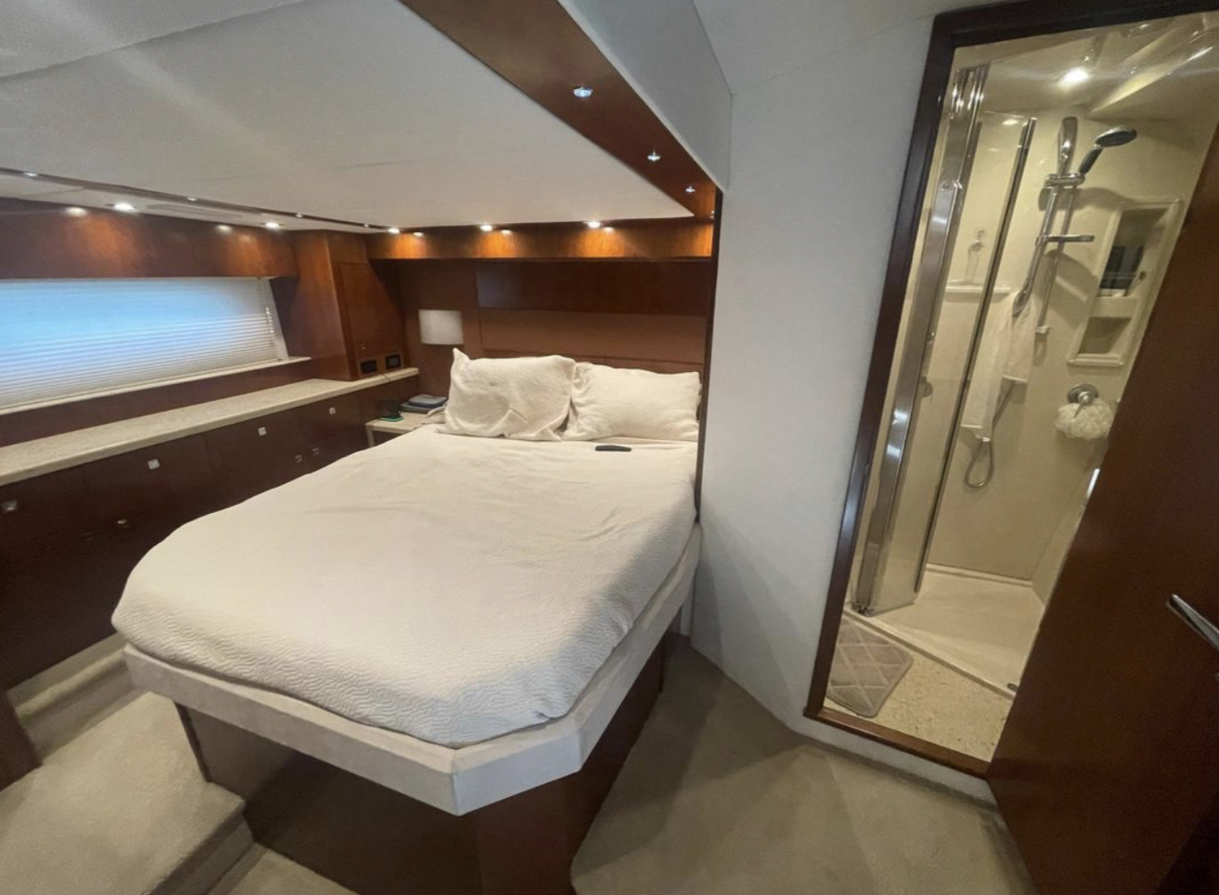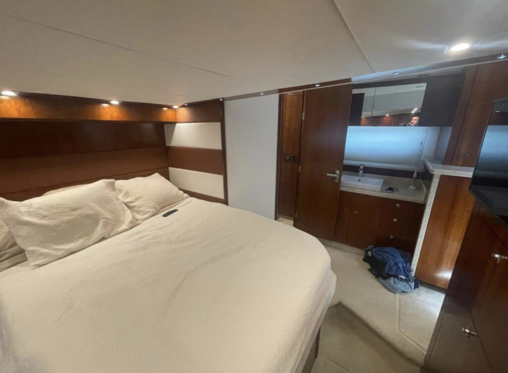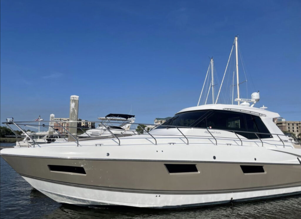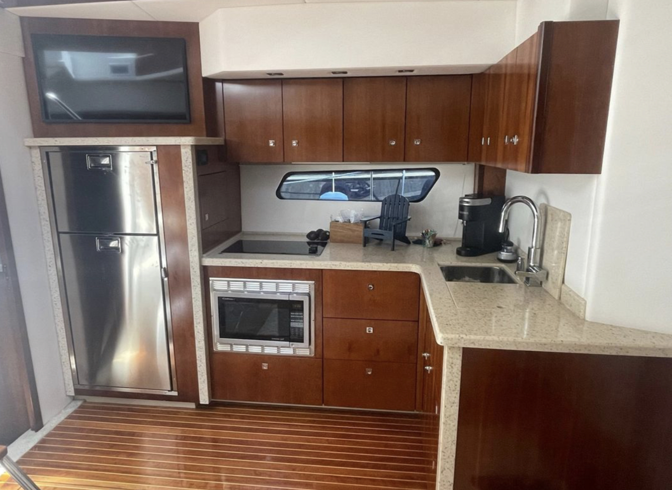 The Cruisers Cantius 48 is a boat with a unique layout with ample space for all. The two state room, Bow VIP and Full Beam Master, are both equipped with en-suite head and showers, cedar hanging closets, and storage. The gracious Galley and Seating are spacious and illuminated with great natural light.