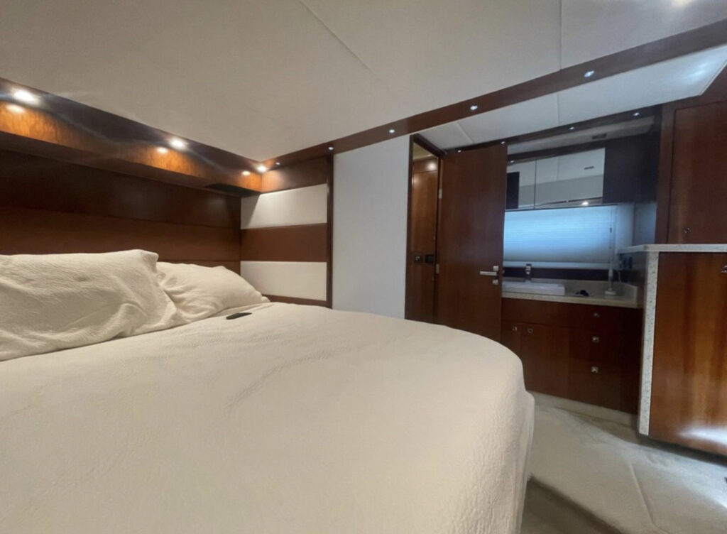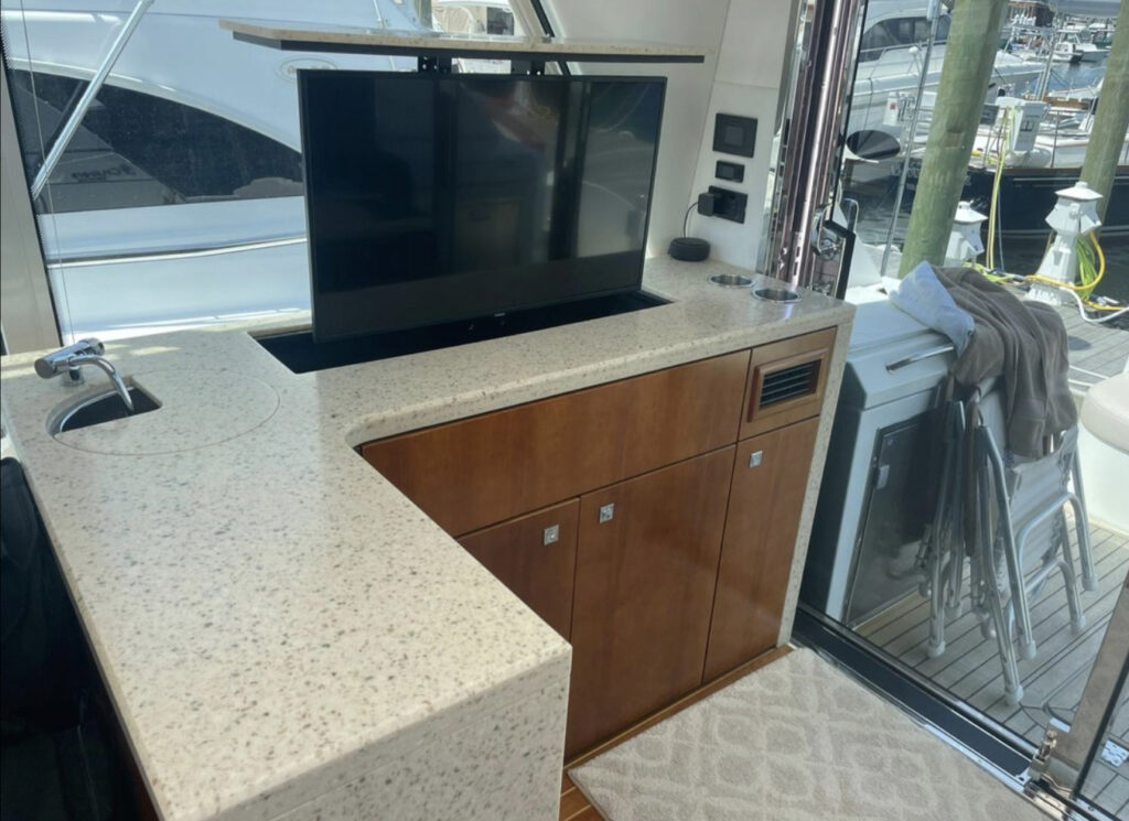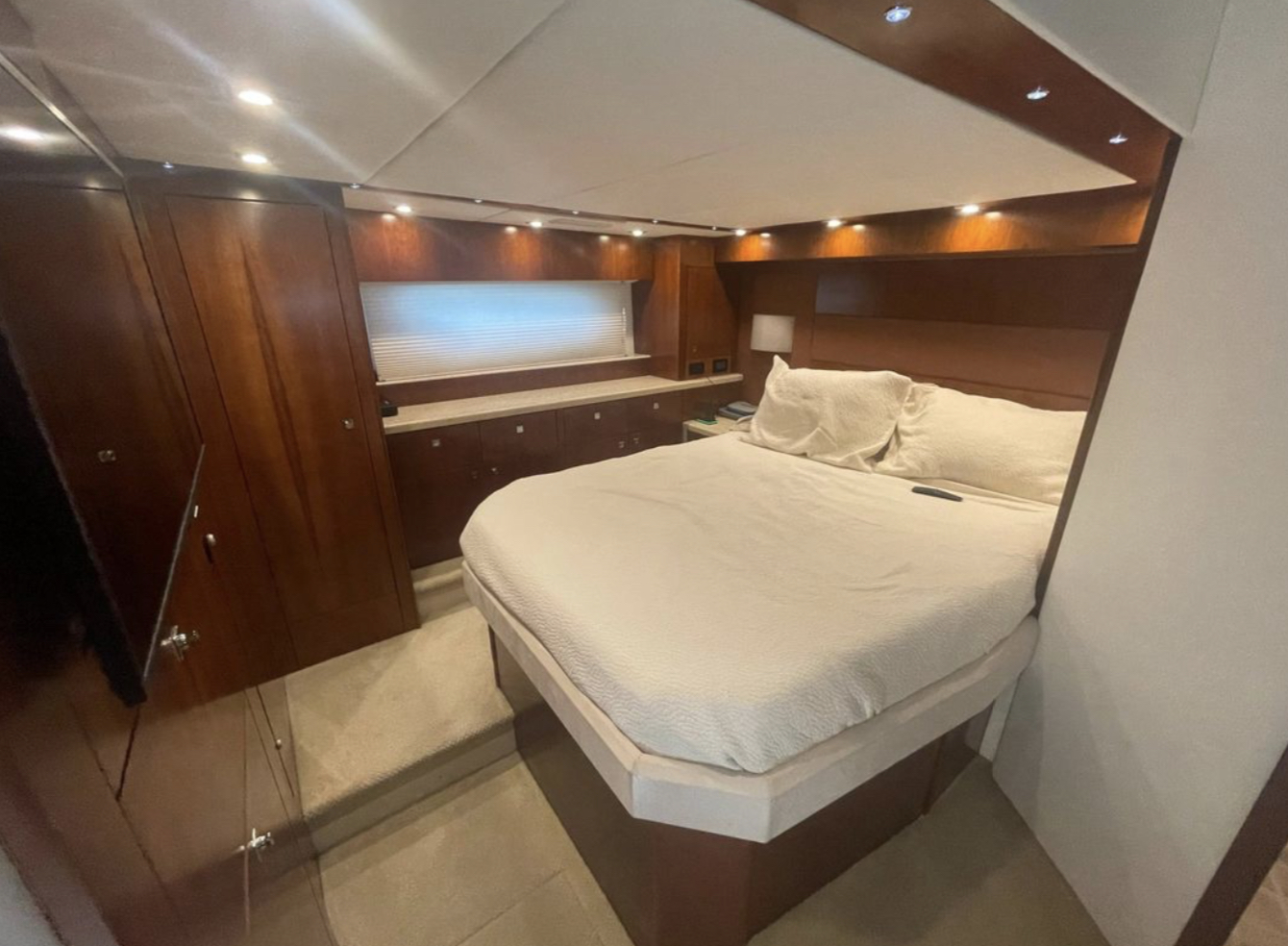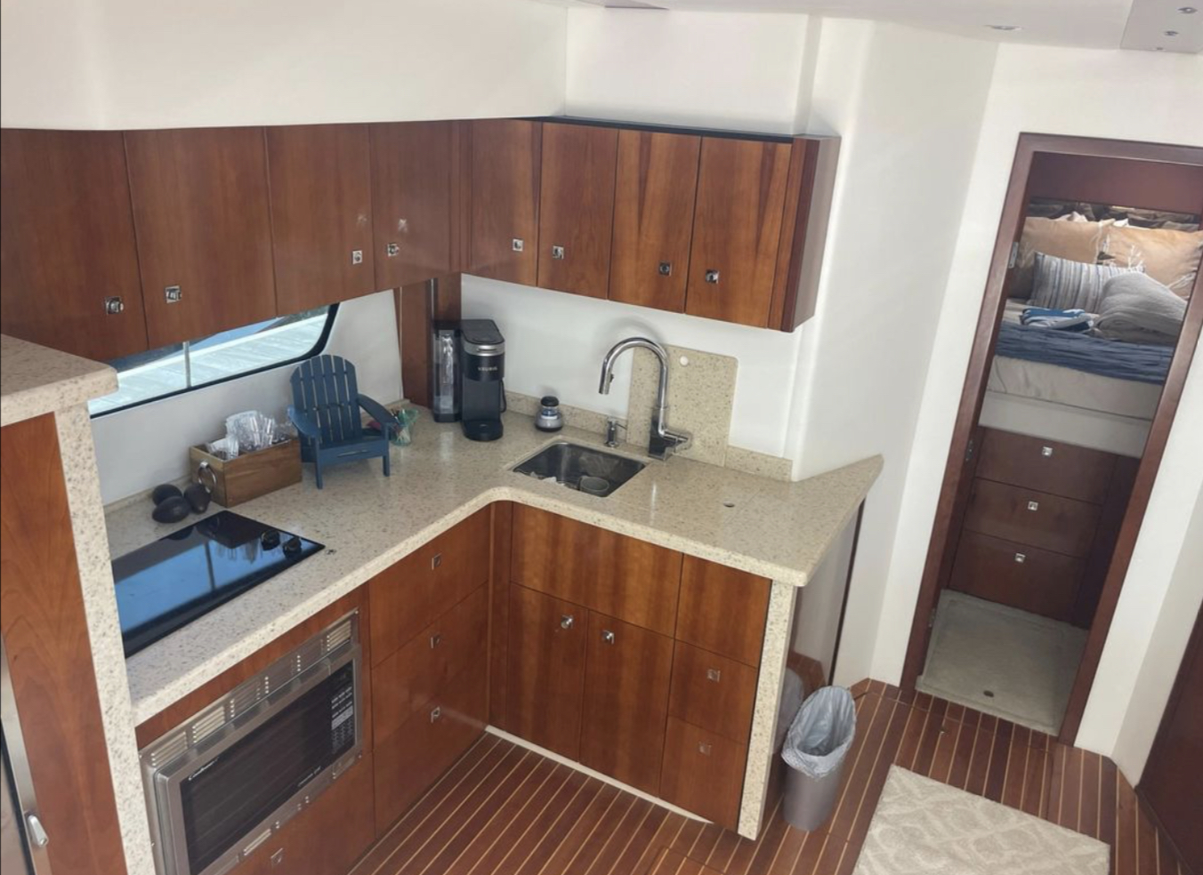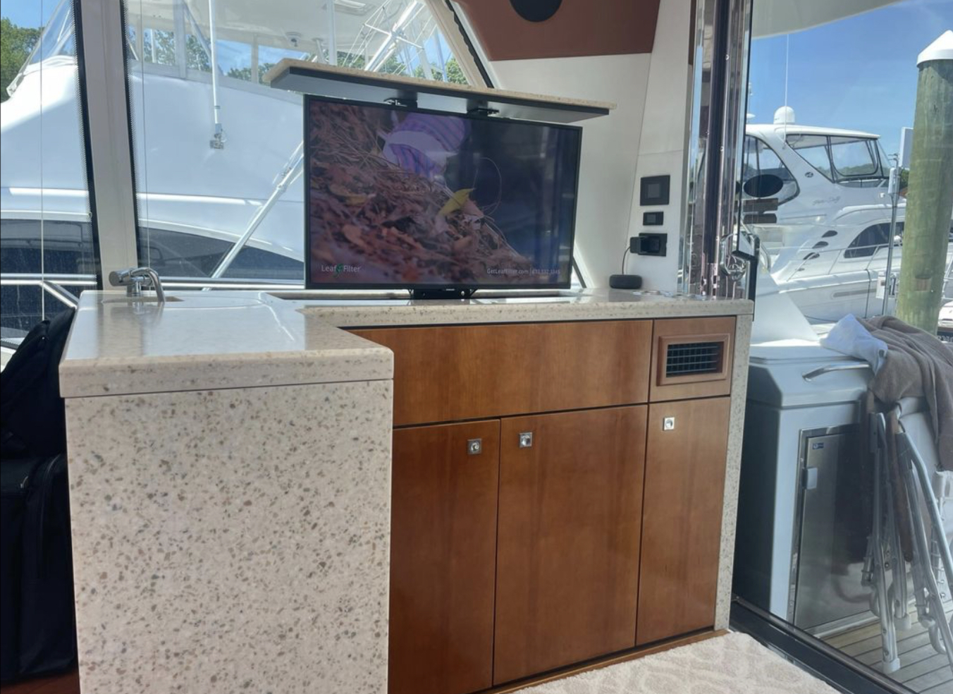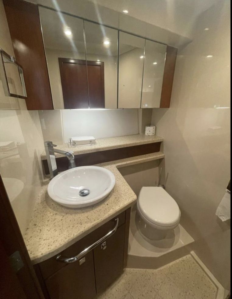 The Cruisers Cantius 48 is a boat with a unique layout with ample space for all. The two state room, Bow VIP and Full Beam Master, are both equipped with en-suite head and showers, cedar hanging closets, and storage. The gracious Galley and Seating are spacious and illuminated with great natural light.