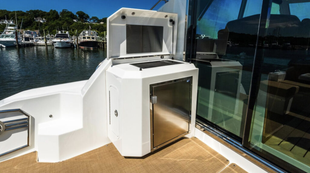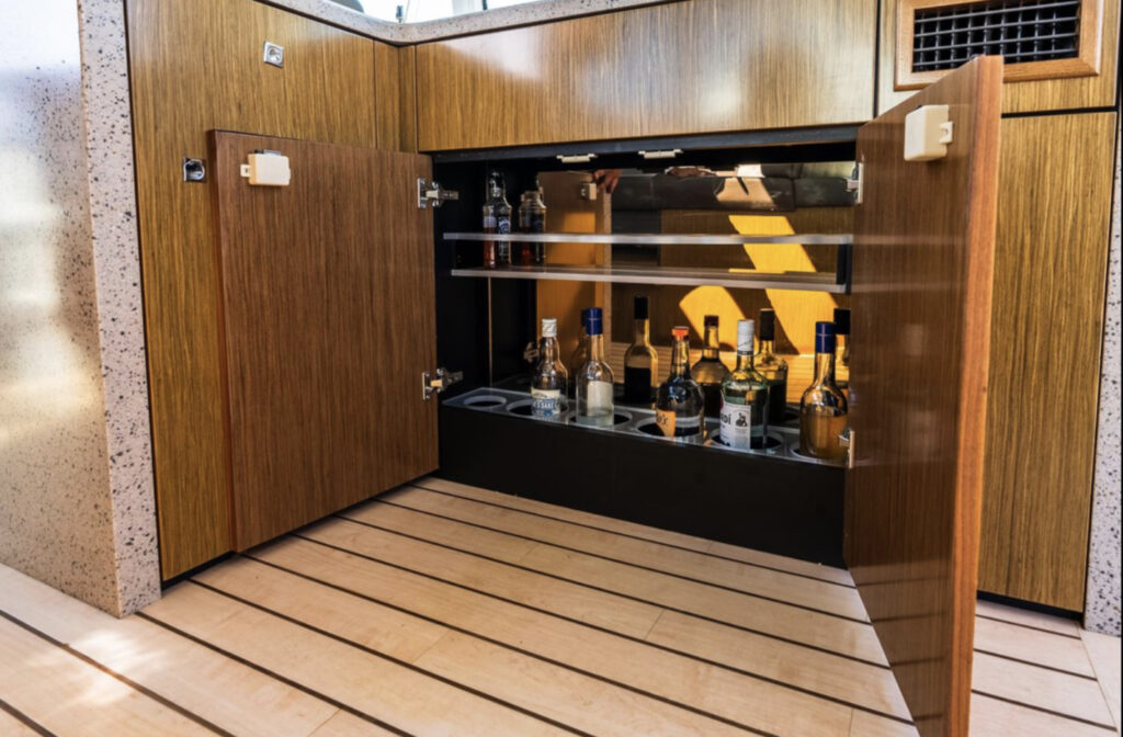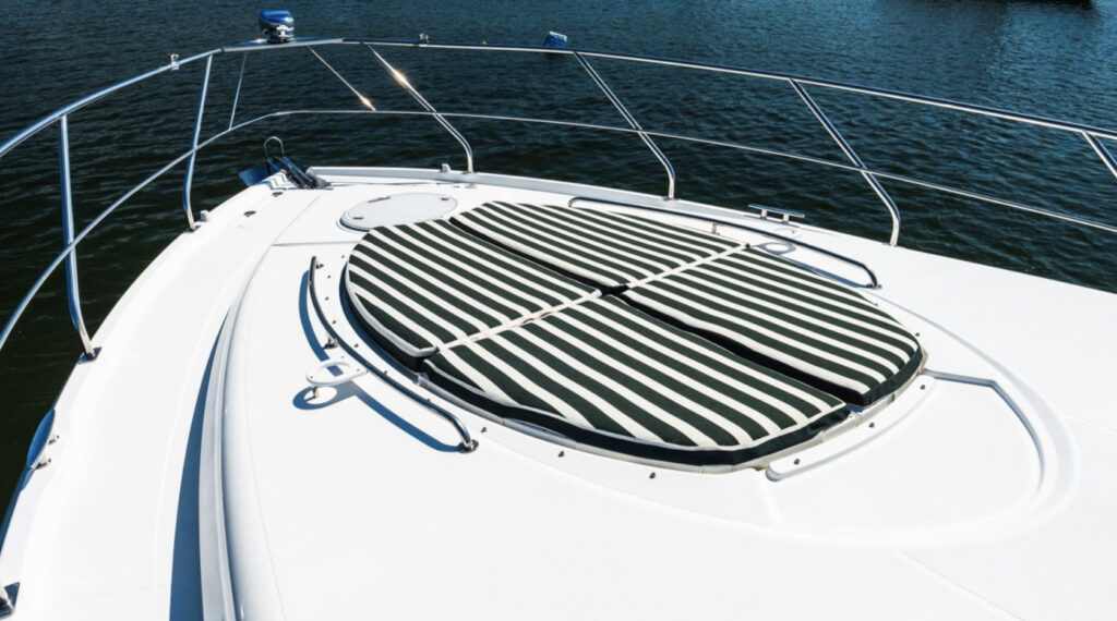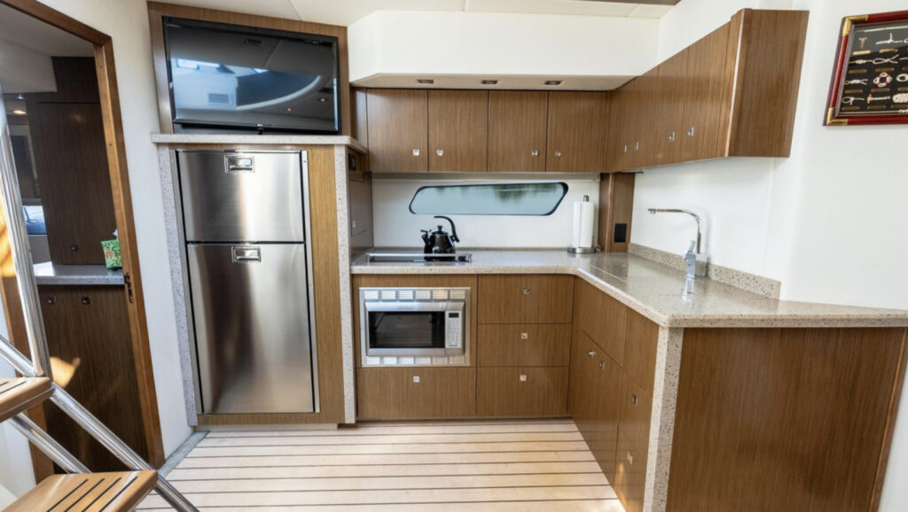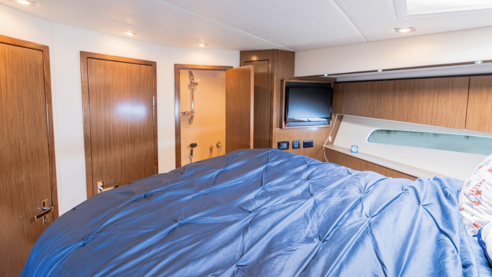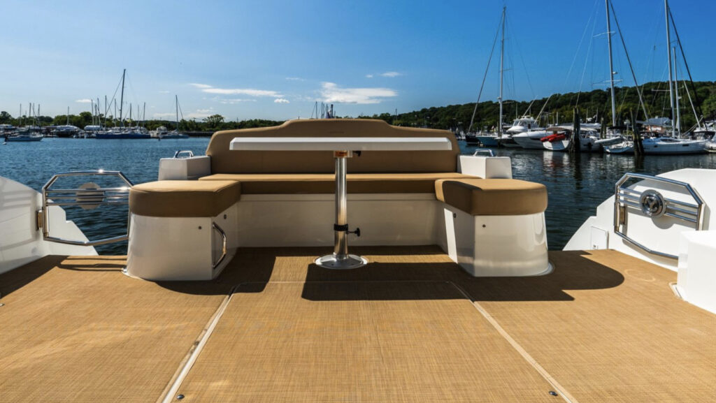 “Amolin” stands out as a prime example of the highly sought-after 48 Cantius model, featuring a distinctive wrapped hull over her original white, ensuring she catches every eye. She is fully equipped and ready for immediate cruising.