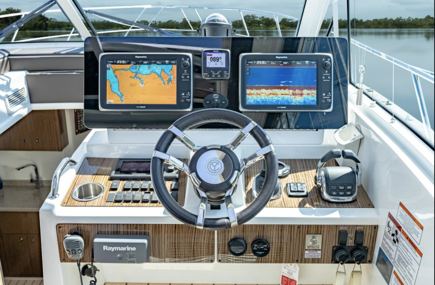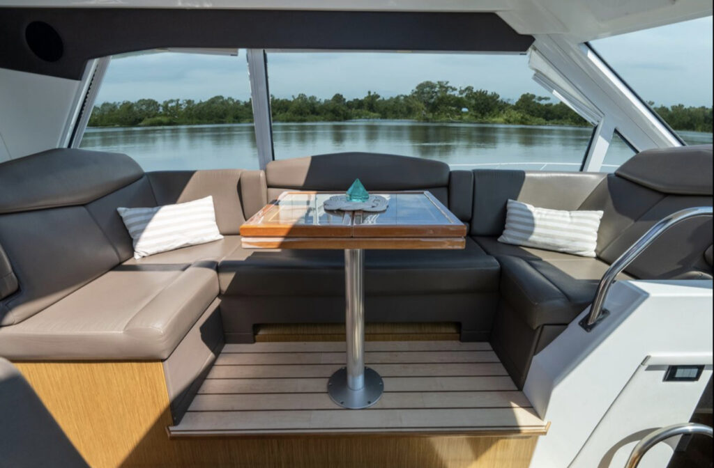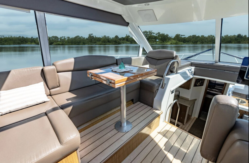 Enjoy all updated dinette and helm upholstery on this well-maintained Cantius!