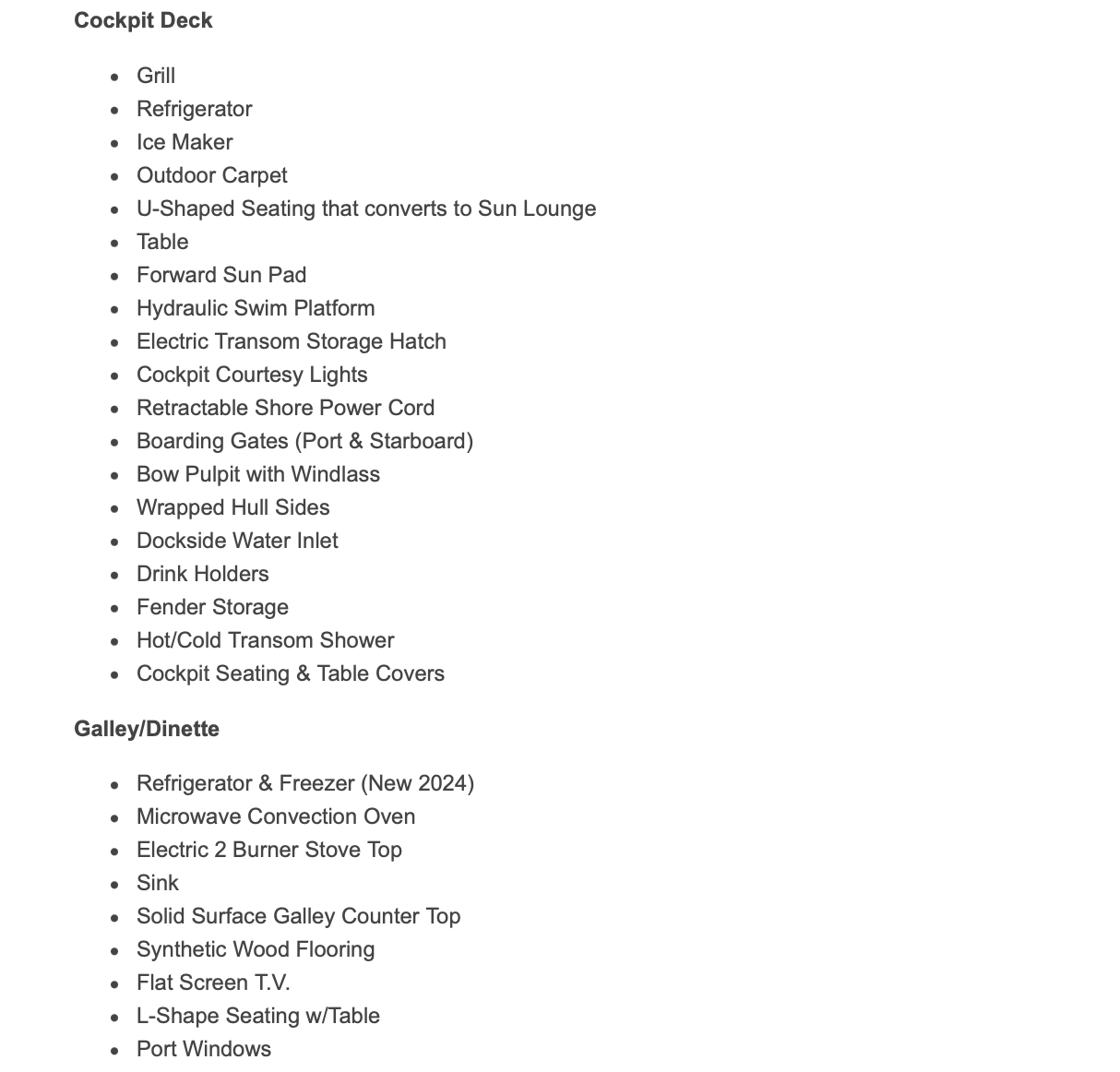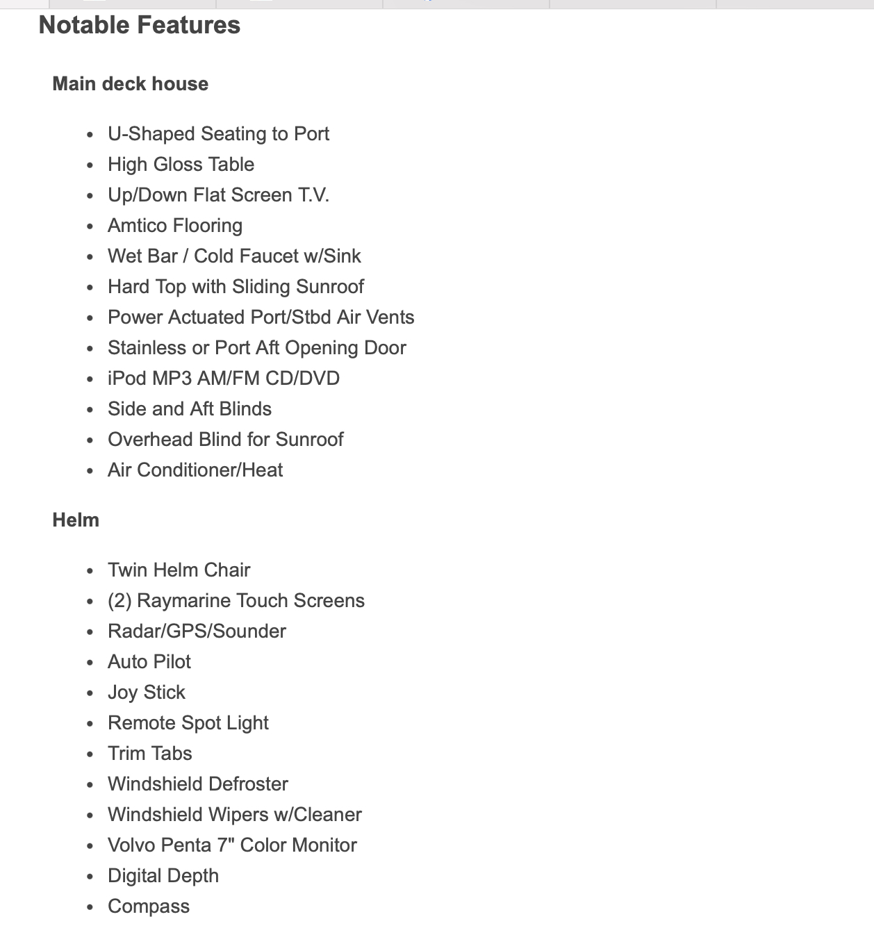 Le bateau qui est présenté sur cette page, l’est uniquement à titre d'information et n'est pas nécessairement toujours disponible à la vente et/ou à la location. Ce bateau est peut-être offert sous réserve, il faut vérifier sa disponibilité. Ce document ou cette annonce n'est pas contractuel. Les informations sur les bateaux affichées dans les résultats ci-dessus sont présentées en toute bonne foi et, bien qu'elles soient considérées comme correctes, elles ne sont pas garanties. Ita Yachts Canada et/ou ProprioBateau ne garantit pas et n'assume aucune responsabilité légale ou responsabilité pour l'exactitude, l'exhaustivité ou l'utilité des informations et/ou des images affichées, car elles peuvent ne pas être à jour ou encore êtres des images d'un bateau comparable. Toutes les informations sur les bateaux peuvent être modifiées sans préavis et sont sans garantie. Ce bateau est peut-être offert par un autre courtier ouvert au co-courtage (co-brokerage).