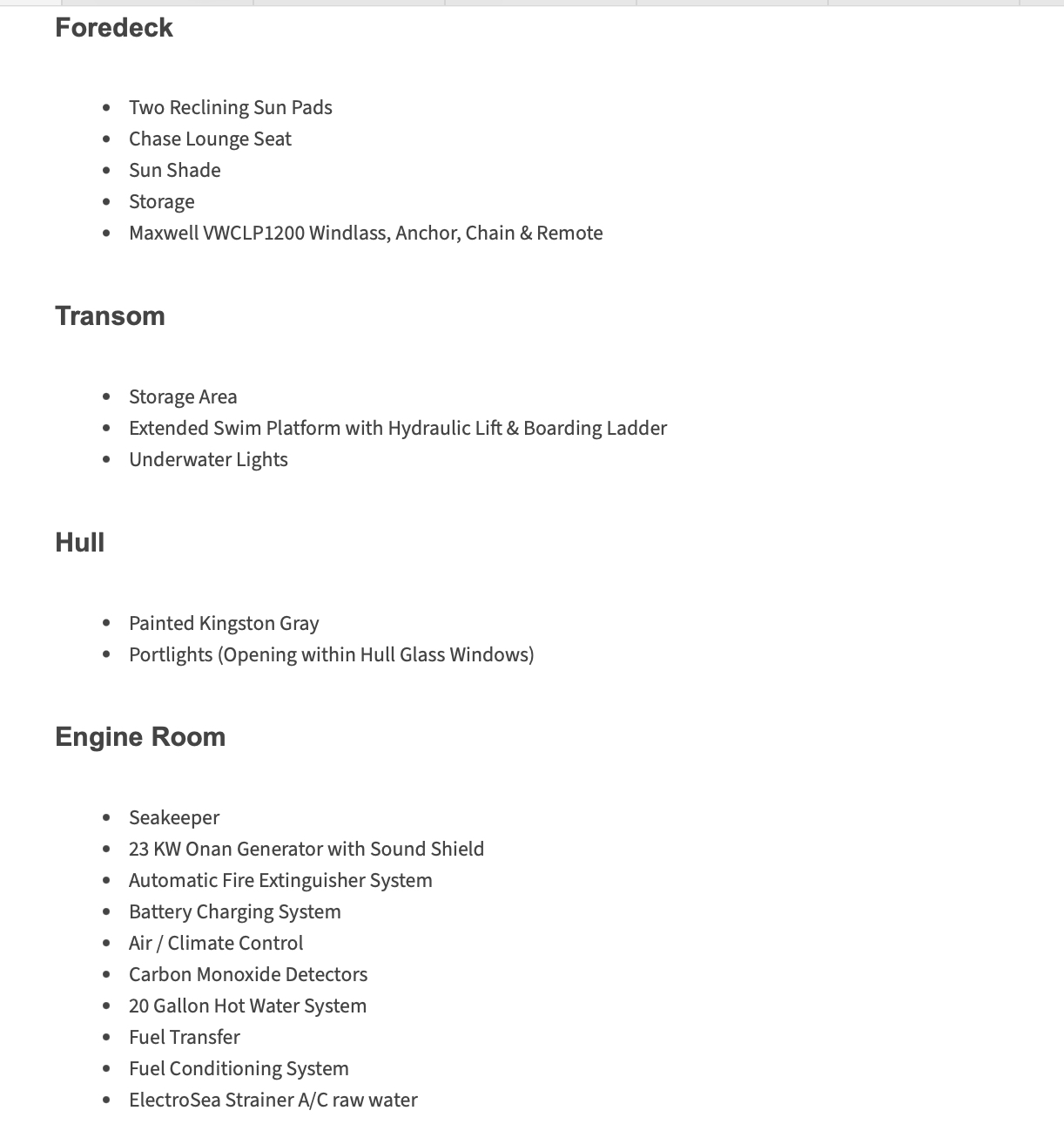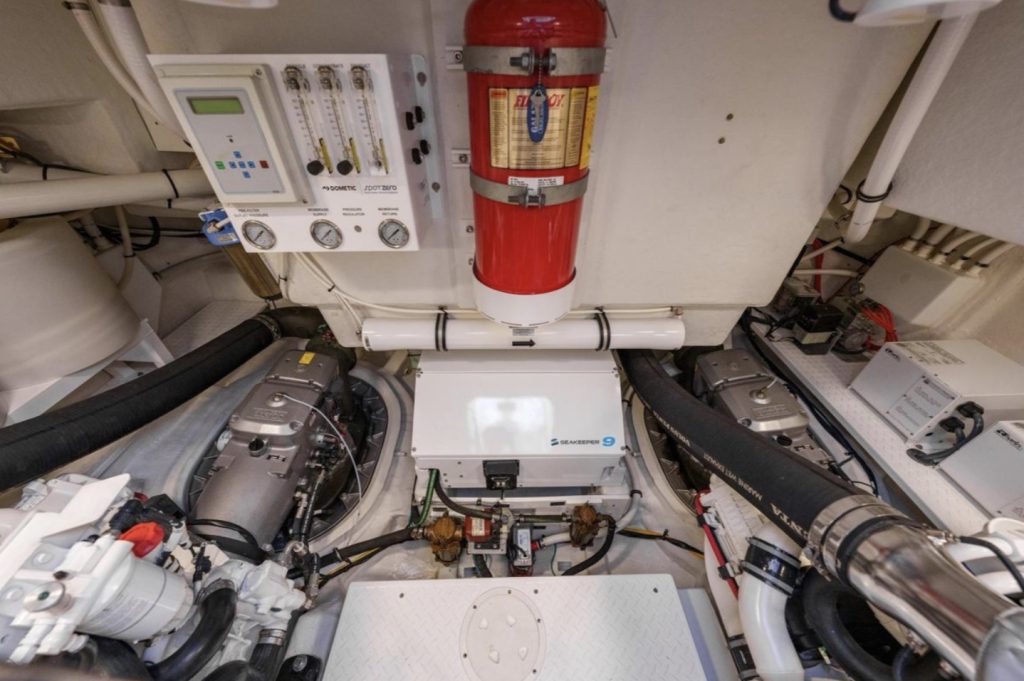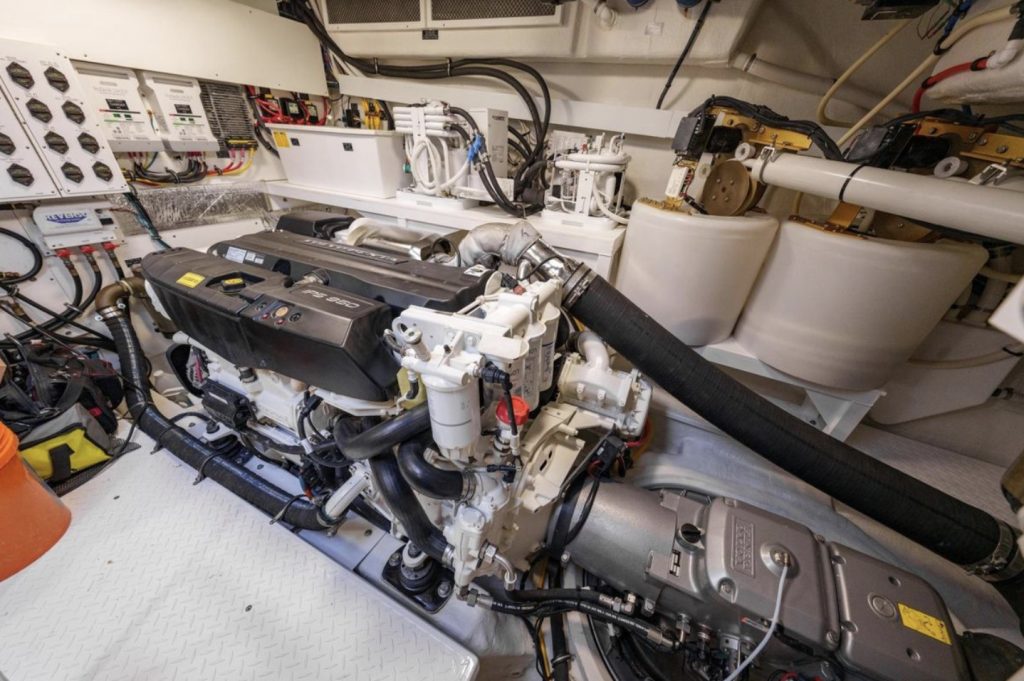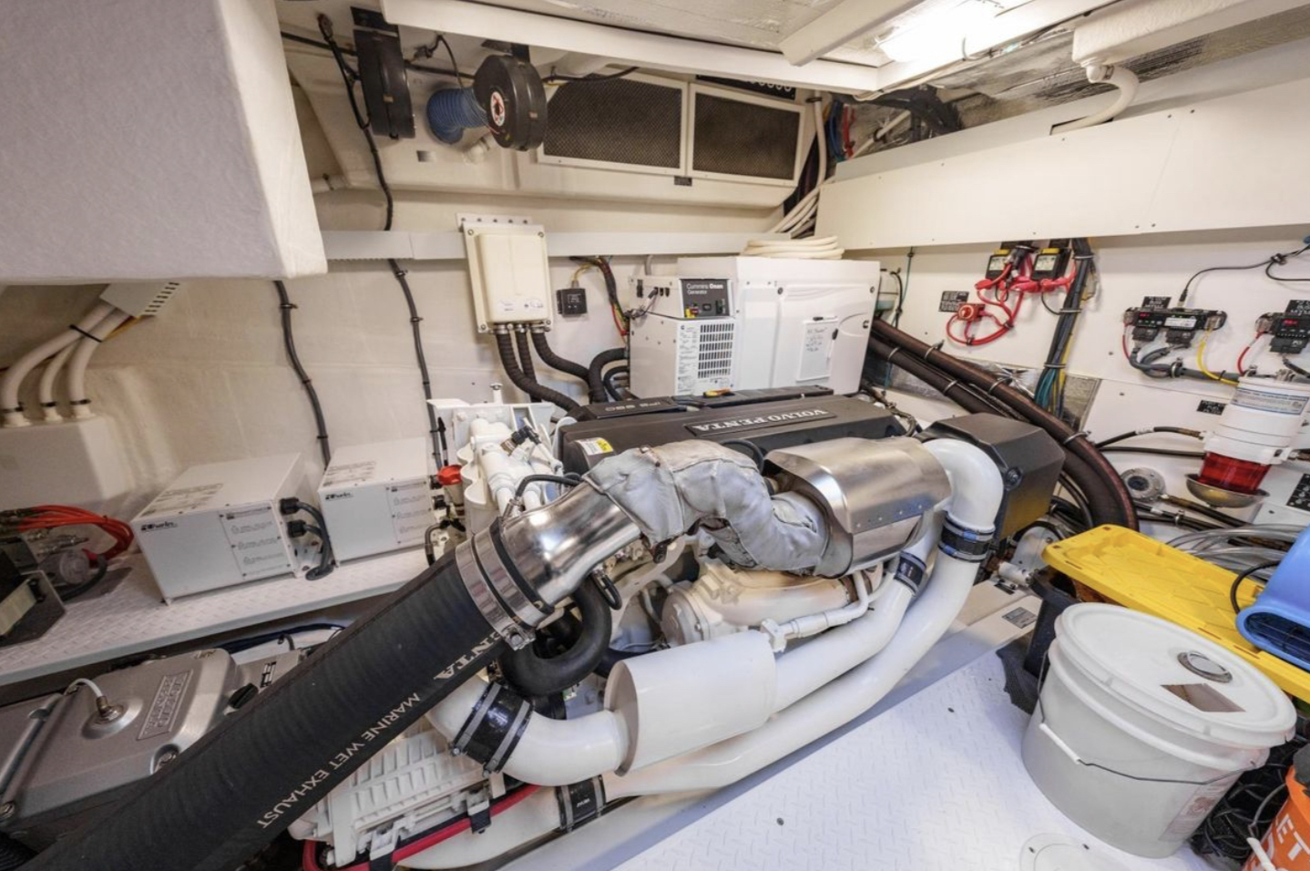 Below deck, the full-beam master stateroom offers a king-size bed with therapeutic foam mattress, walk-in closet, and an ensuite head with shower and his-and-hers sinks. Additional highlights include a Spot-Zero water system, 23 kW Onan generator with sound shield, and a clean, well-organized engine room. American-made and thoughtfully outfitted. “After Five” is a strong choice for buyers seeking performance, comfort, modern systems in a well maintained turnkey 60-foot yacht.