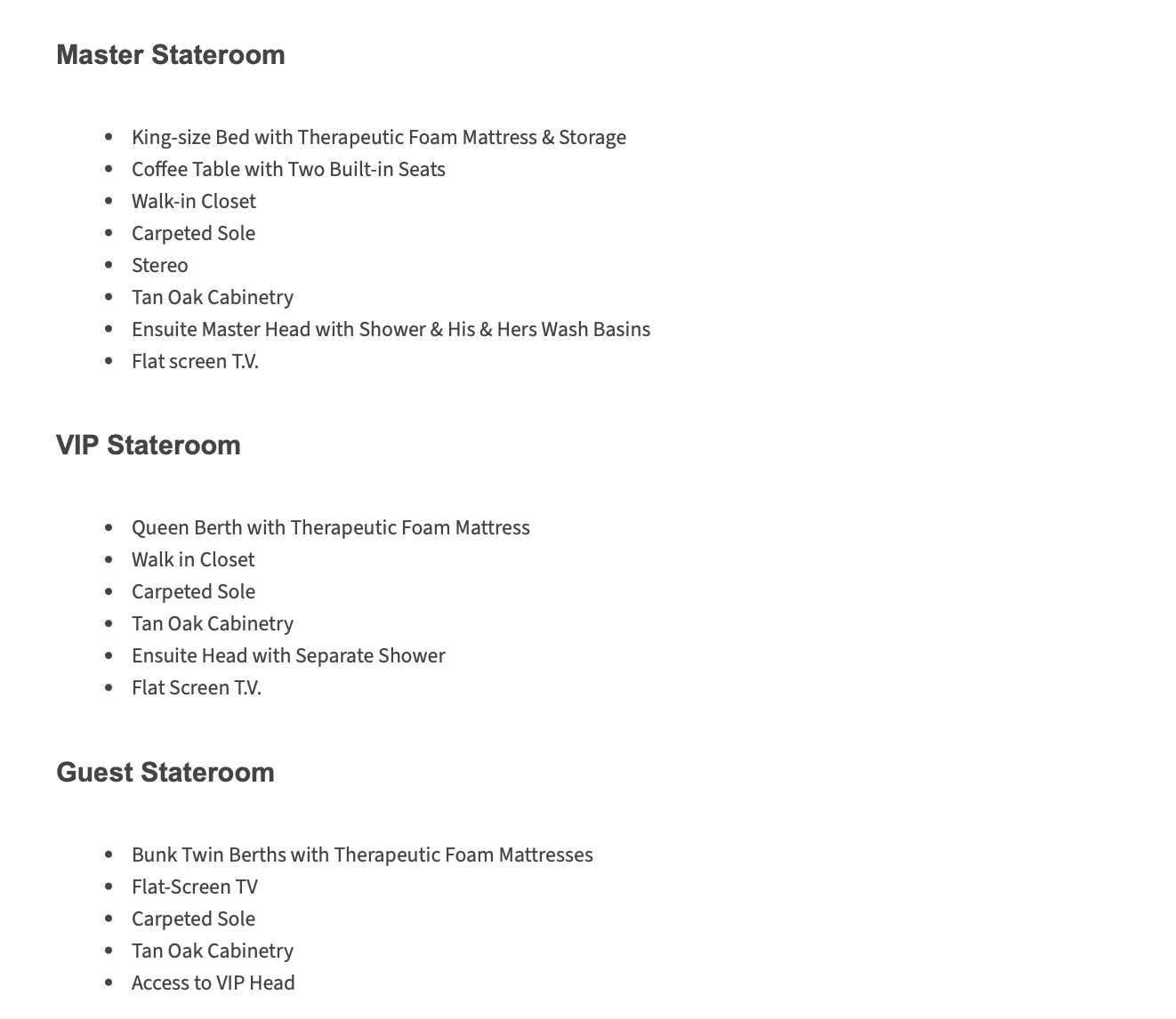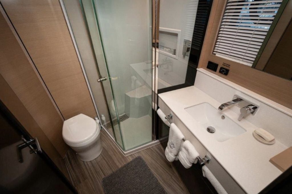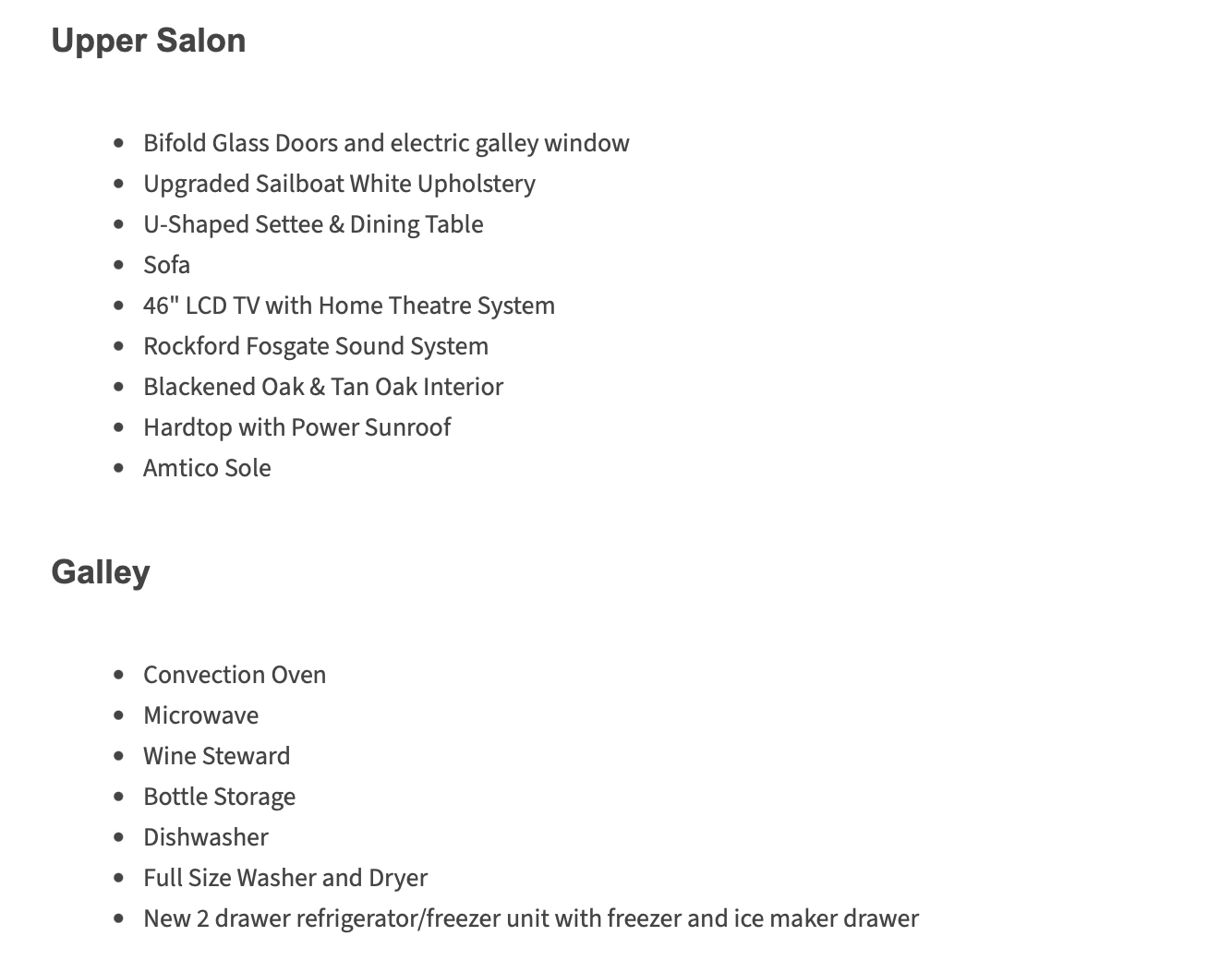 Below deck, the full-beam master stateroom offers a king-size bed with therapeutic foam mattress, walk-in closet, and an ensuite head with shower and his-and-hers sinks. Additional highlights include a Spot-Zero water system, 23 kW Onan generator with sound shield, and a clean, well-organized engine room. American-made and thoughtfully outfitted. “After Five” is a strong choice for buyers seeking performance, comfort, modern systems in a well maintained turnkey 60-foot yacht.