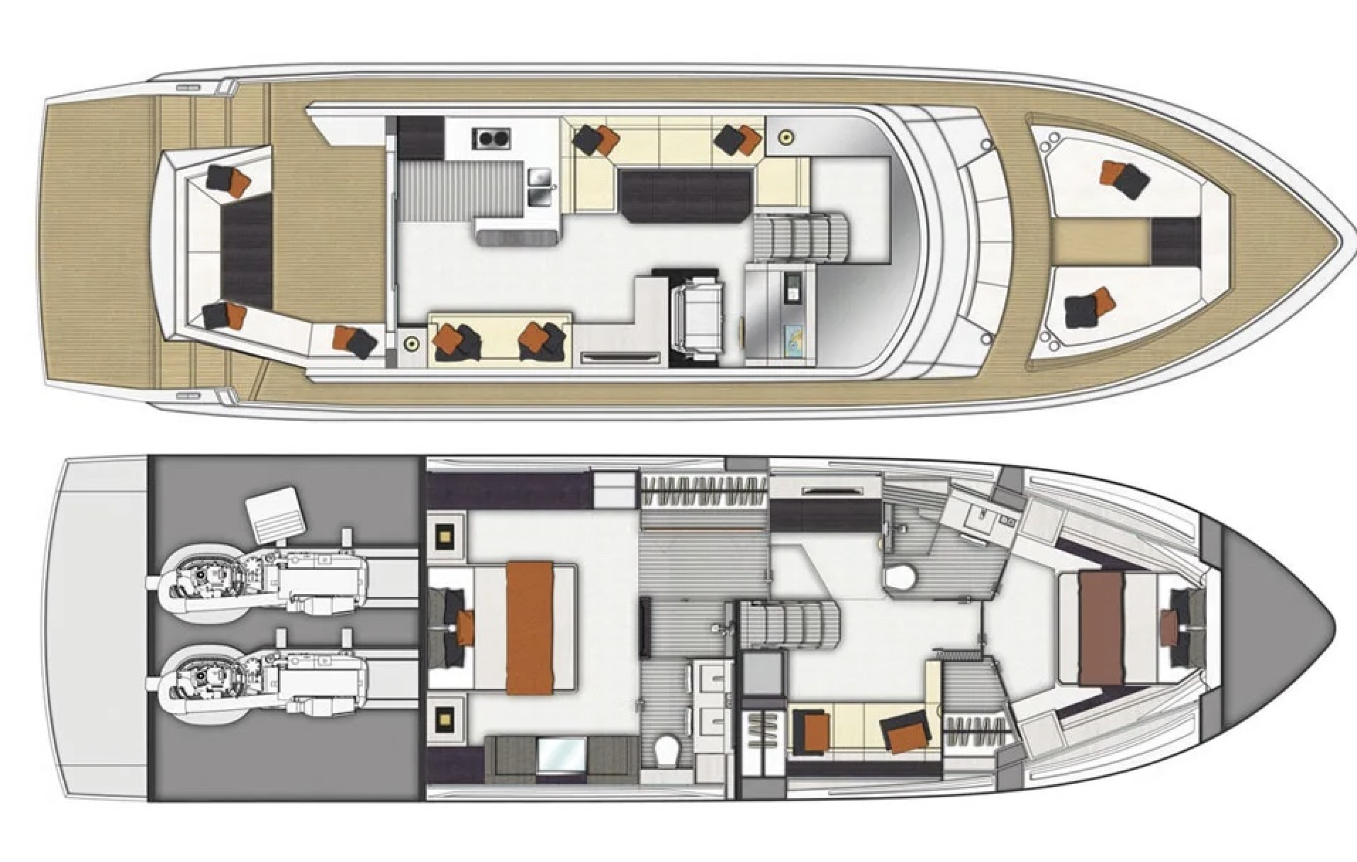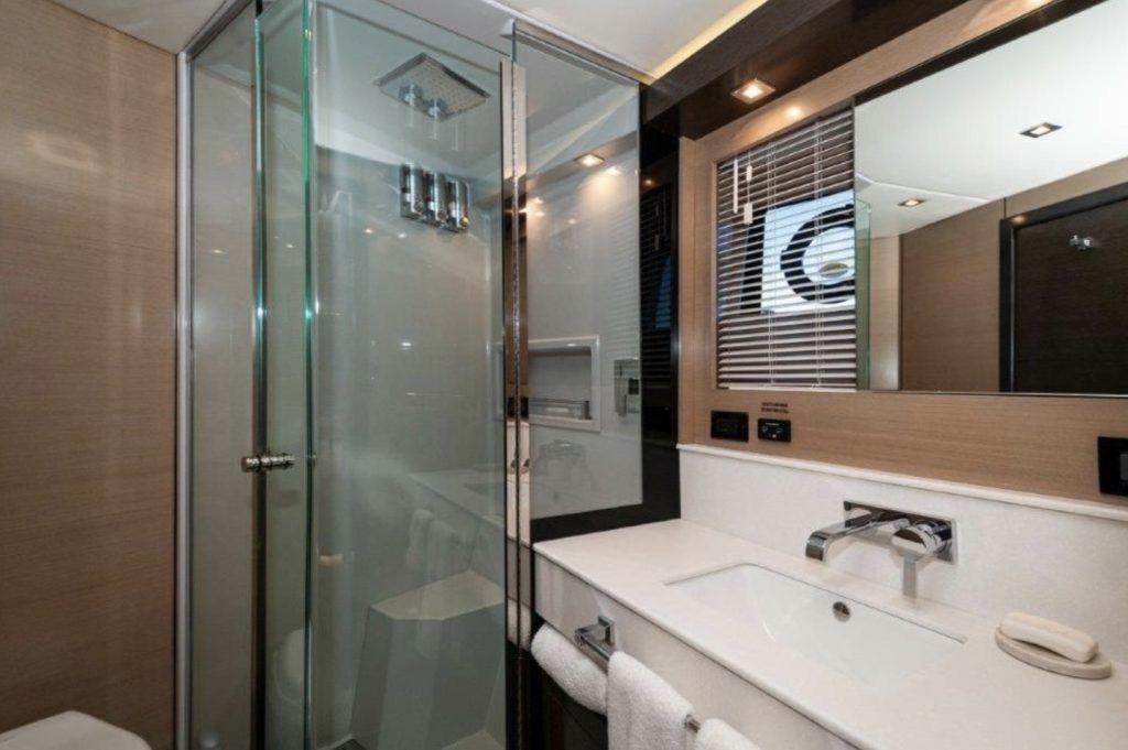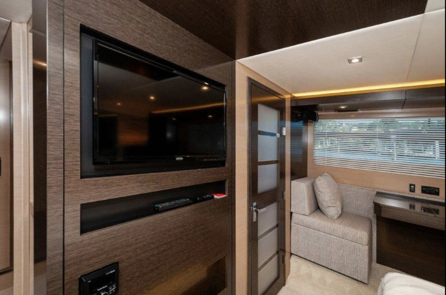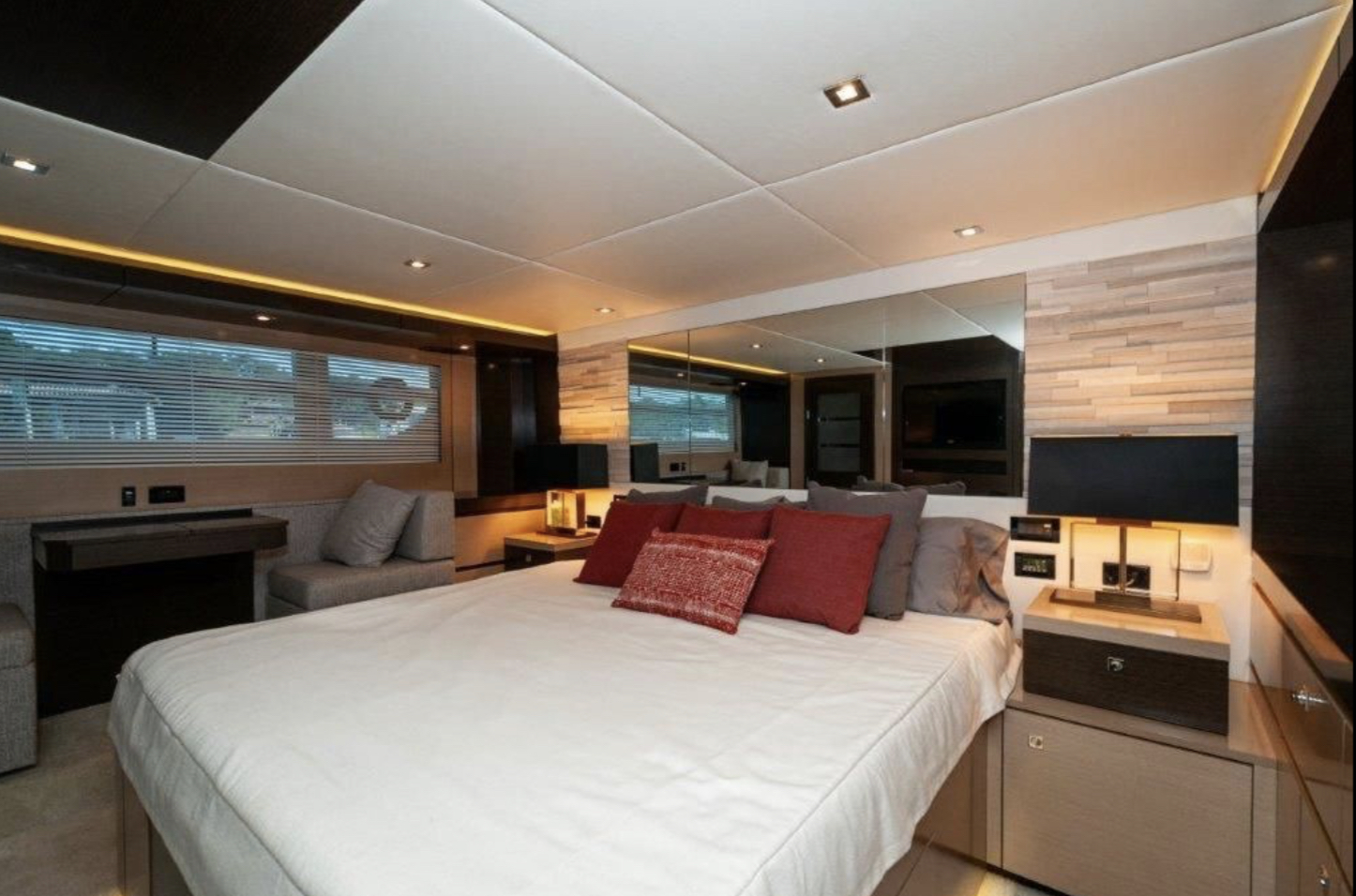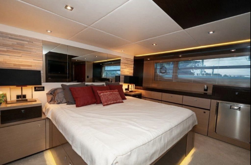 Powered by Volvo D11 IPS engines, “After Five” delivers strong performance along with joystick docking and Dynamic Positioning for stress-free handling. The glass cockpit features Garmin GPS and sonar, dual 17” Volvo displays, HD radar, autopilot, and VHF for confident navigation.