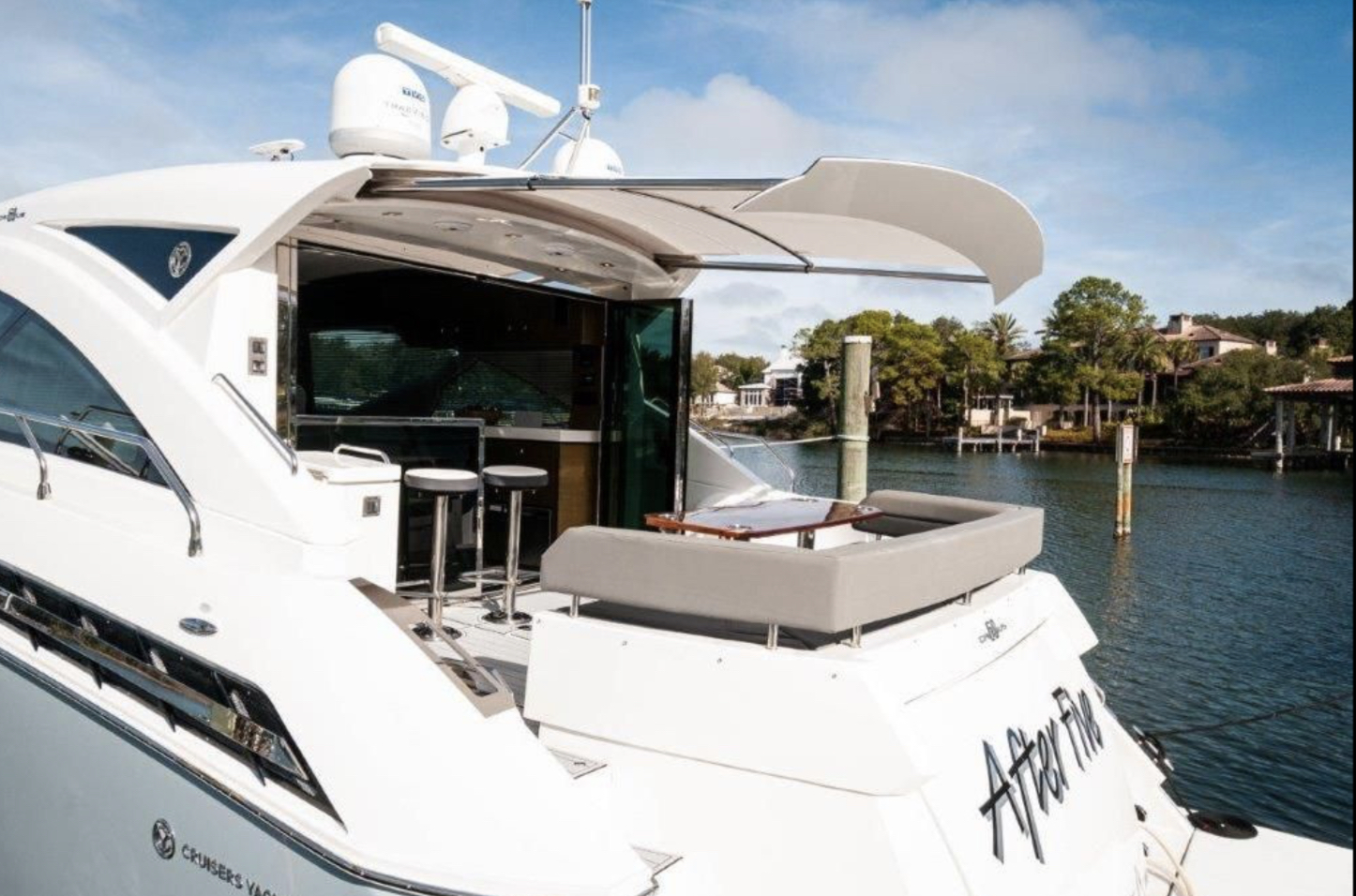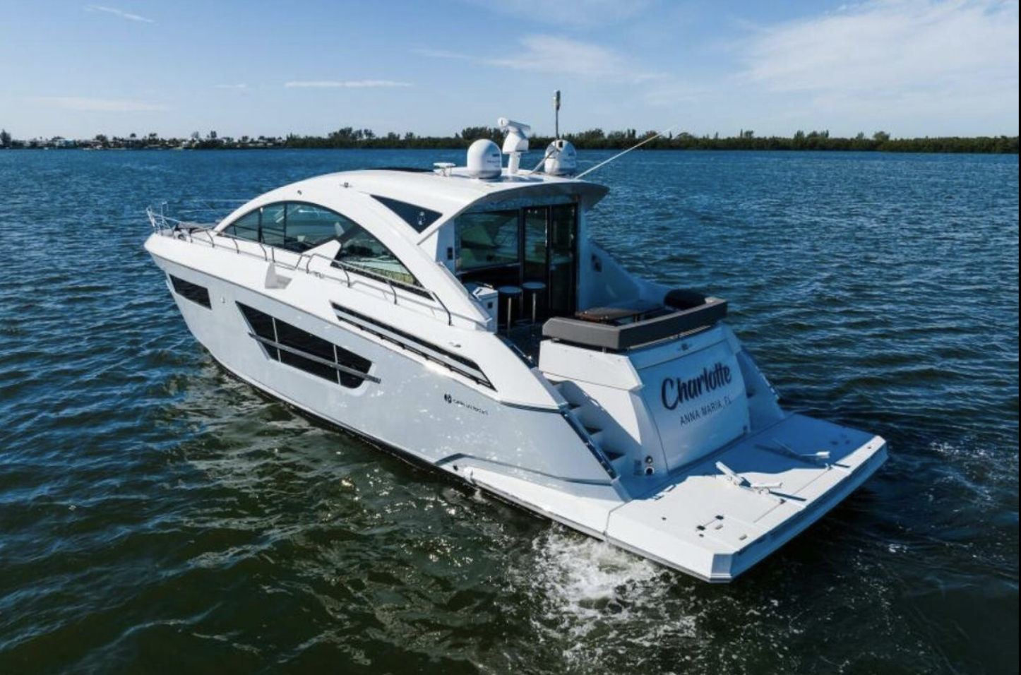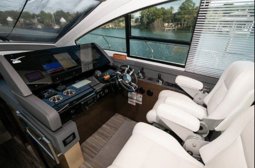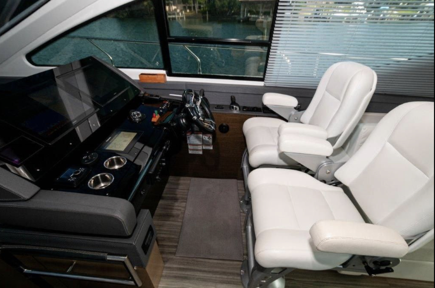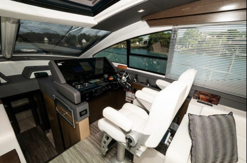 This 2019 Cruisers Yachts 60 Cantius “After Five” is a clean, well-equipped express yacht designed for comfortable cruising and easy ownership. The painted hull gives her a sharp, modern look, while the retractable sunroof and large windows create a bright, open salon with plenty of space to relax or entertain. A Seakeeper stabilizer keeps the ride smooth and comfortable for short trips or extended cruising.
