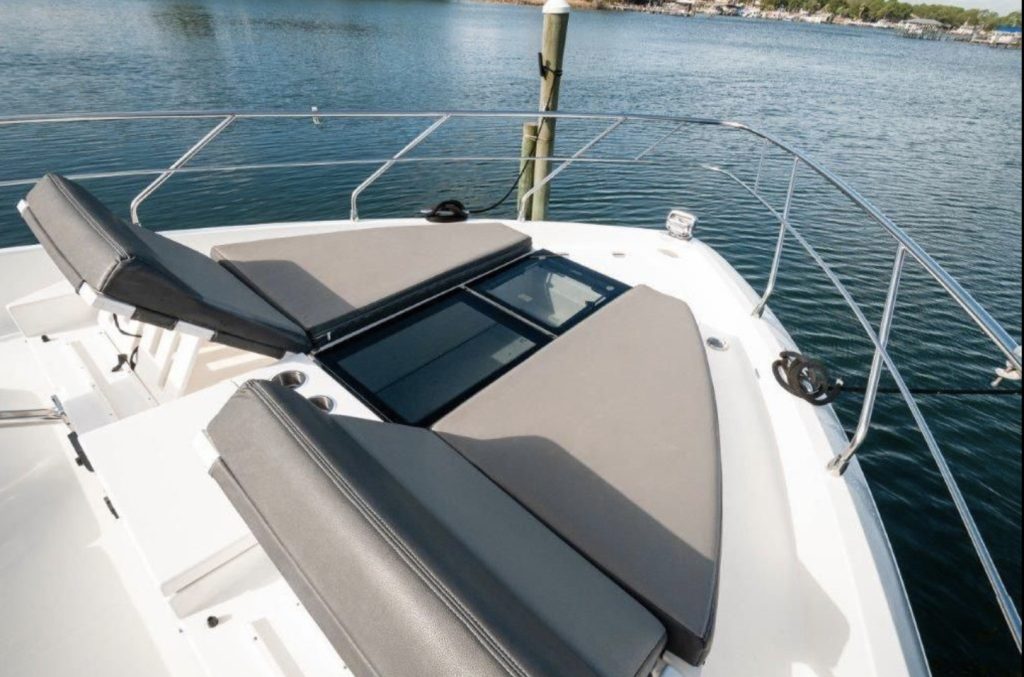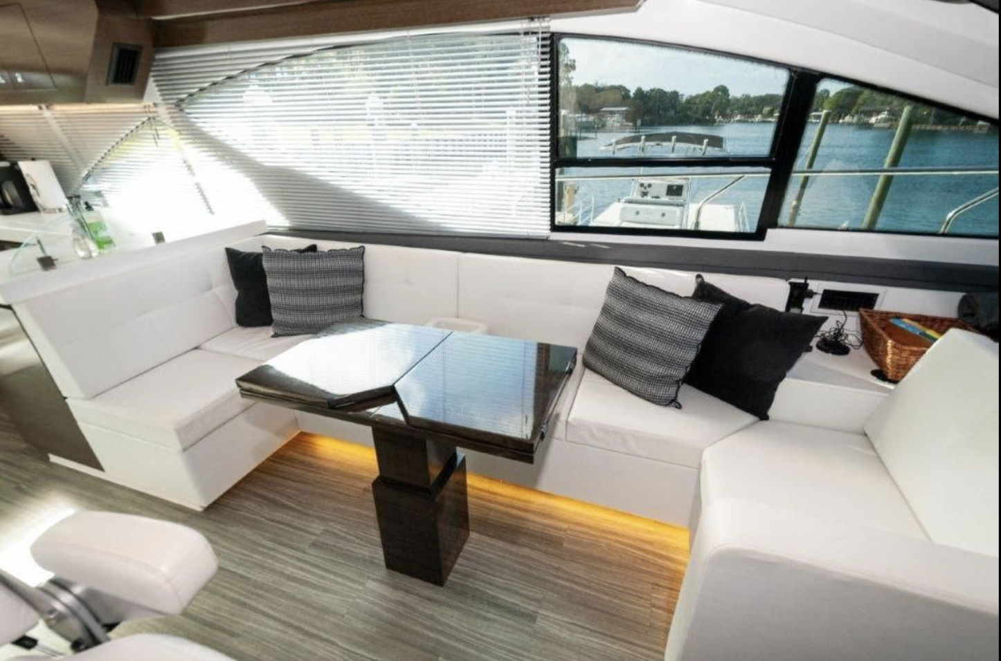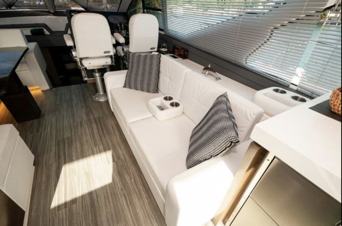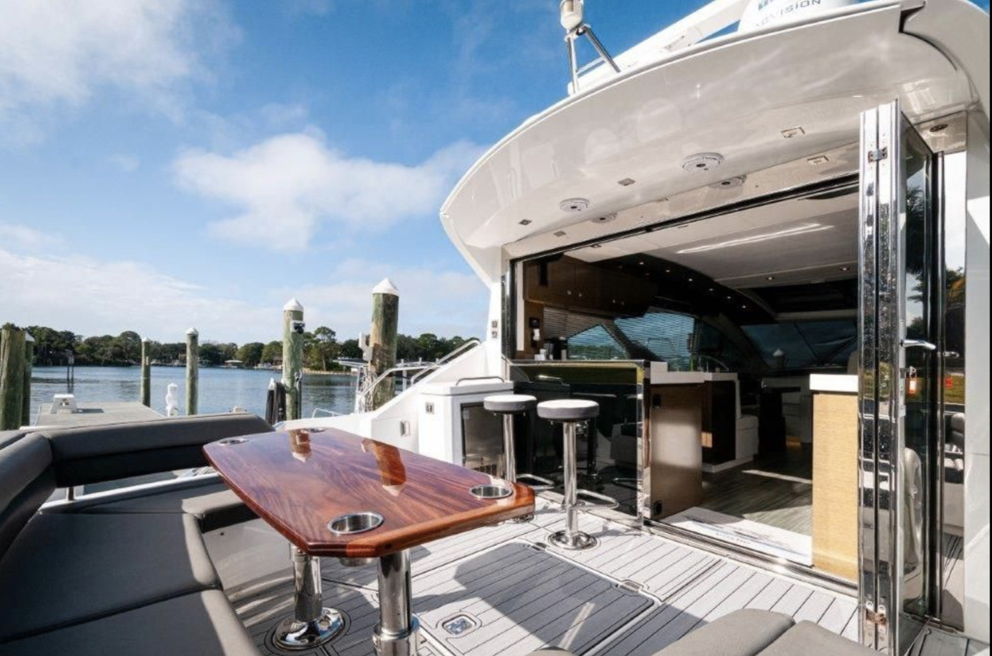 This 2019 Cruisers Yachts 60 Cantius “After Five” is a clean, well-equipped express yacht designed for comfortable cruising and easy ownership. The painted hull gives her a sharp, modern look, while the retractable sunroof and large windows create a bright, open salon with plenty of space to relax or entertain. A Seakeeper stabilizer keeps the ride smooth and comfortable for short trips or extended cruising.