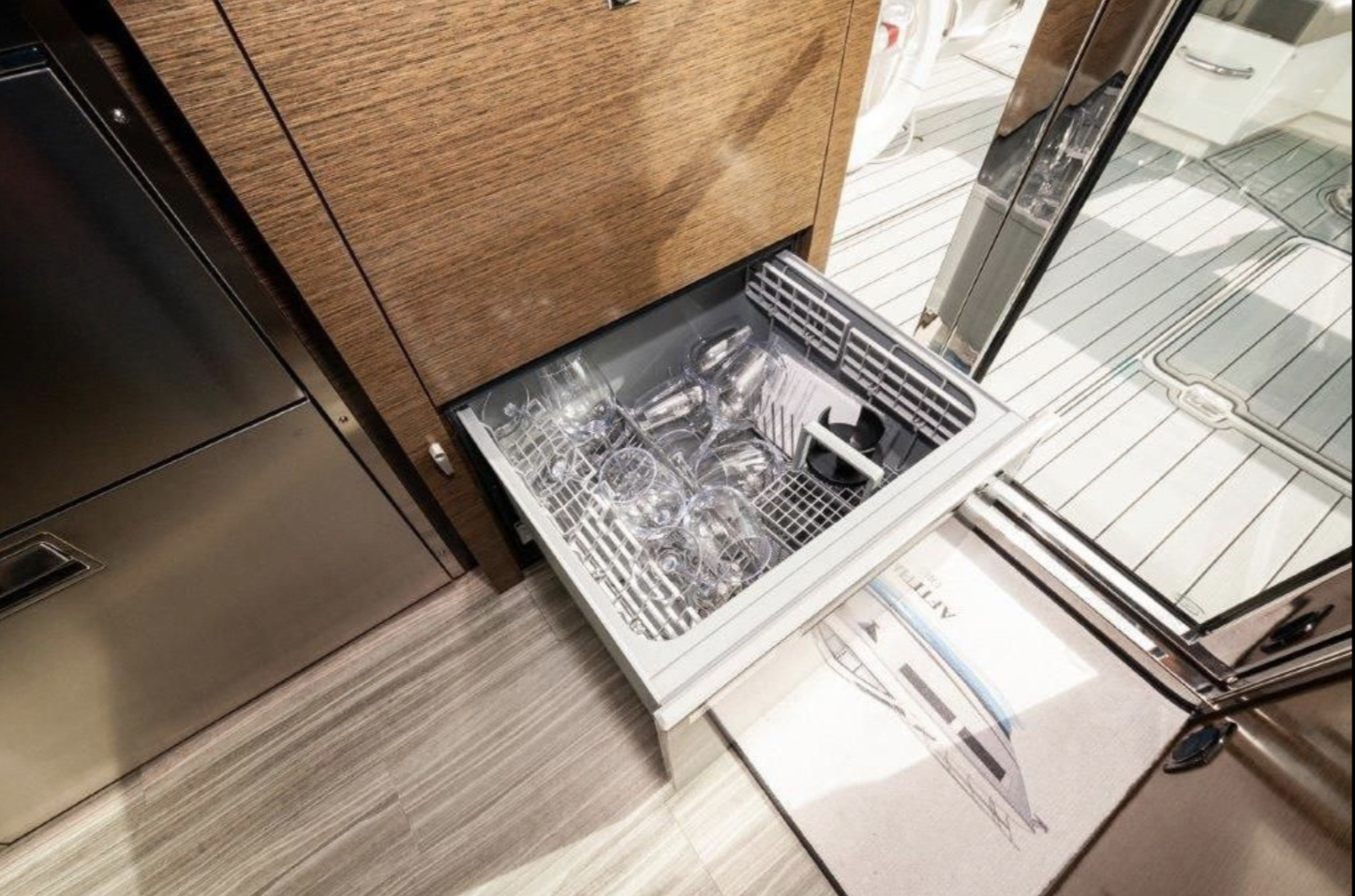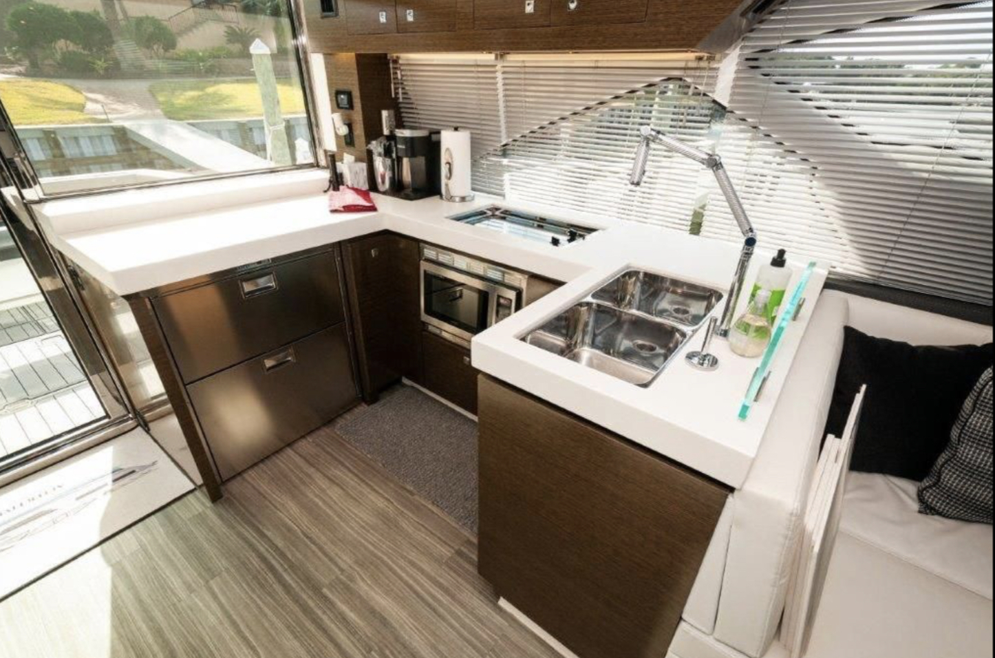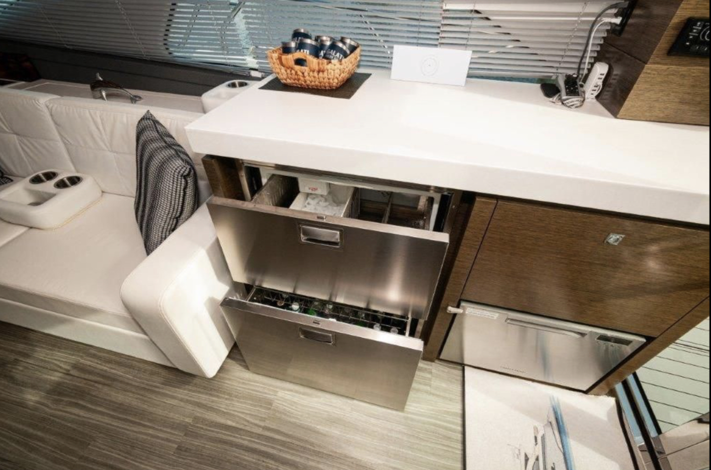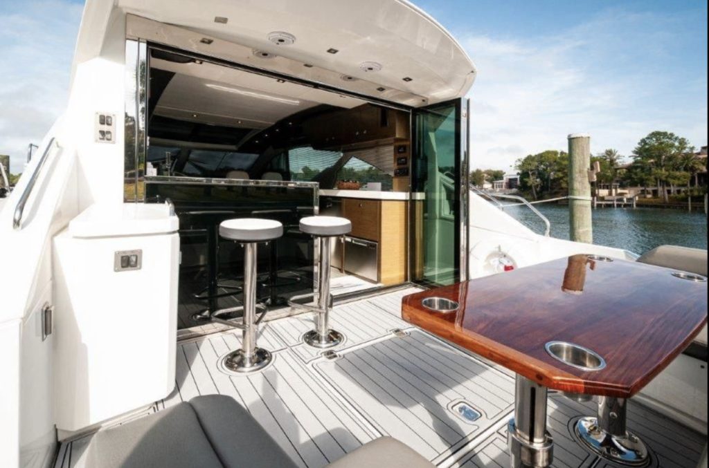 This 2019 Cruisers Yachts 60 Cantius “After Five” is a clean, well-equipped express yacht designed for comfortable cruising and easy ownership. The painted hull gives her a sharp, modern look, while the retractable sunroof and large windows create a bright, open salon with plenty of space to relax or entertain. A Seakeeper stabilizer keeps the ride smooth and comfortable for short trips or extended cruising.