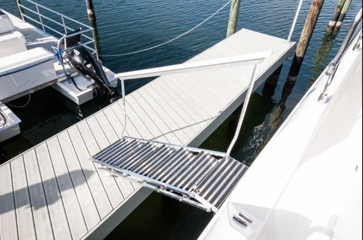A Marquipt boarding stairs with handrails on both sides of boat for boarding and deboard