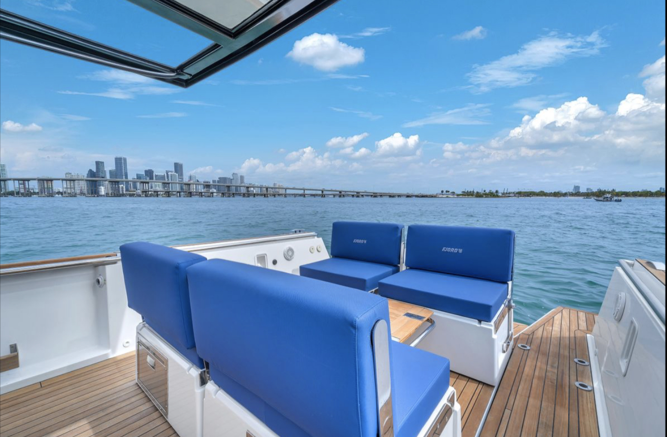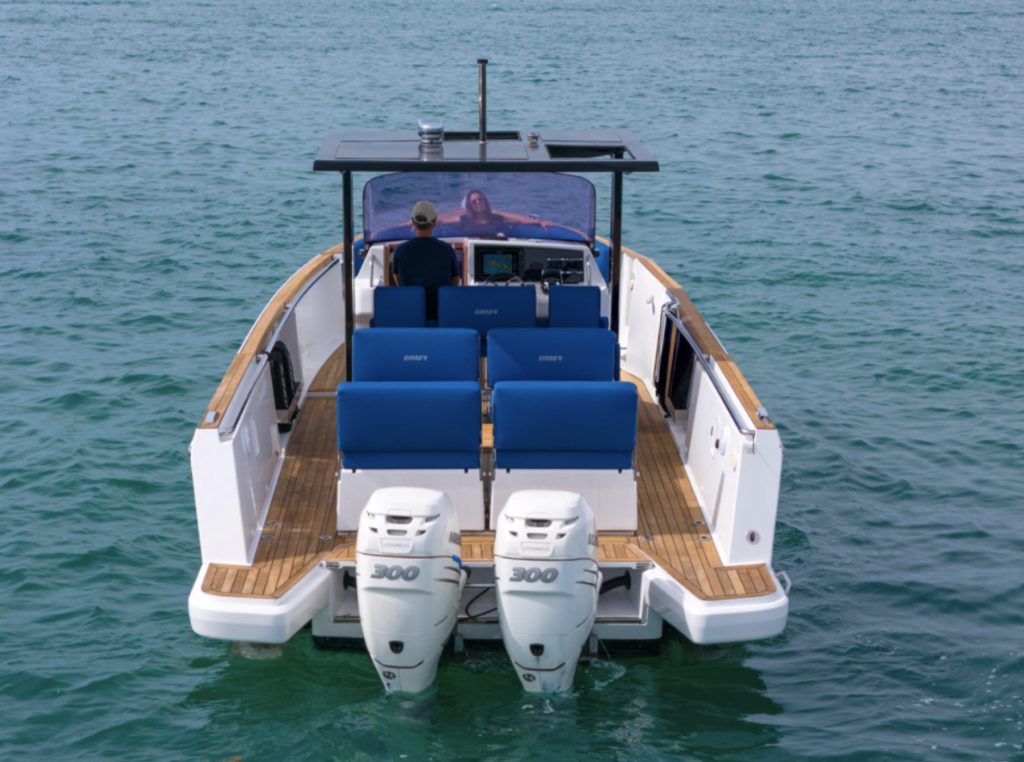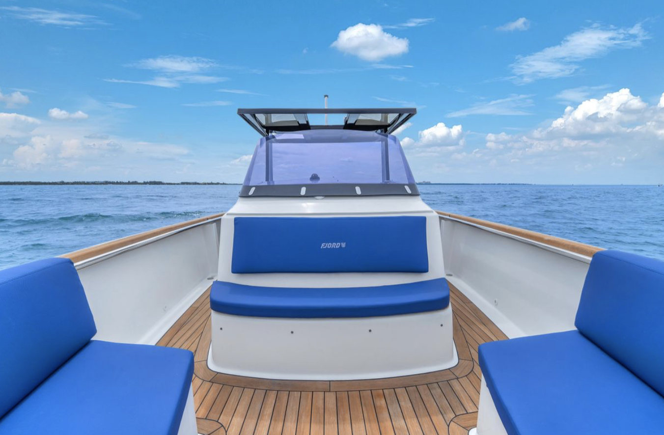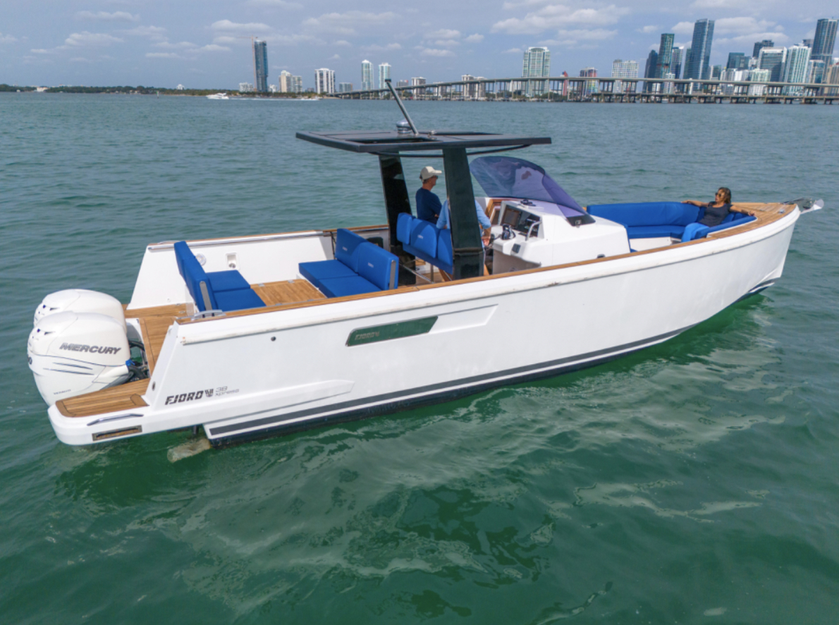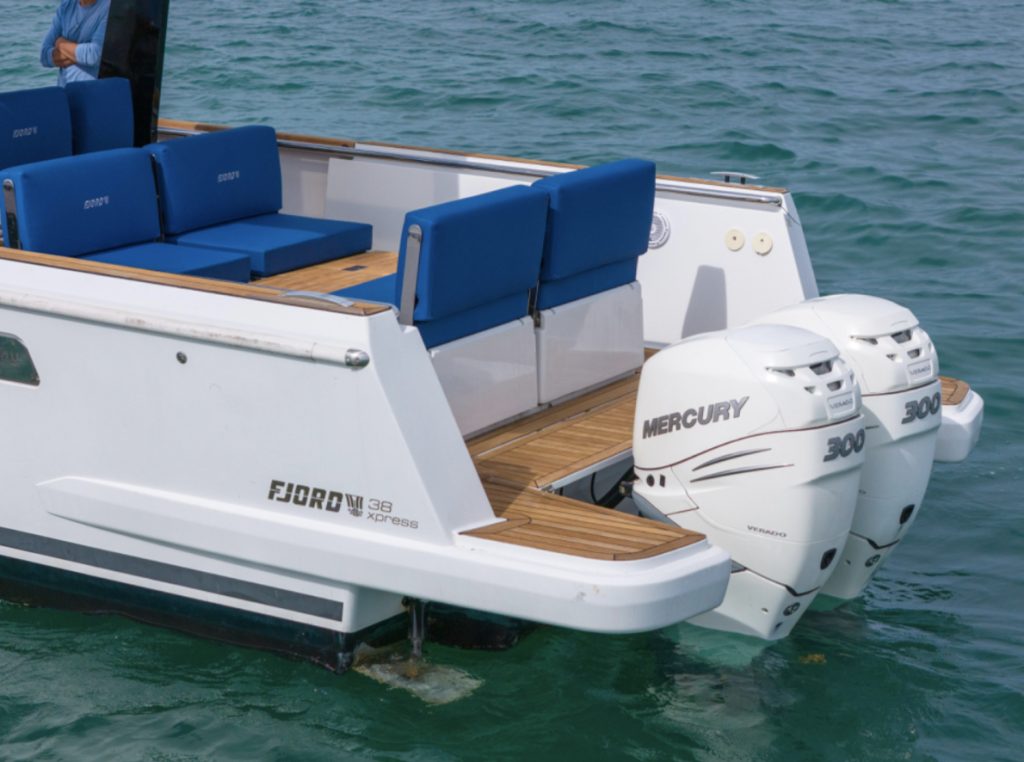 Imagine the sublimity of a luxury day cruiser combined with the excitement of an outboard-driven fun machine. The FJORD 38 Xpress is the new boat sensation bringing both dreams together. exhilarating driving pleasure, breathtaking dynamics achieving a new speed level: 43 knots max. speed 2 engines from strong power: 2 x 300 hp unprecedented performance driven by Mercury Verado outboards – superior torque across the entire performance range.