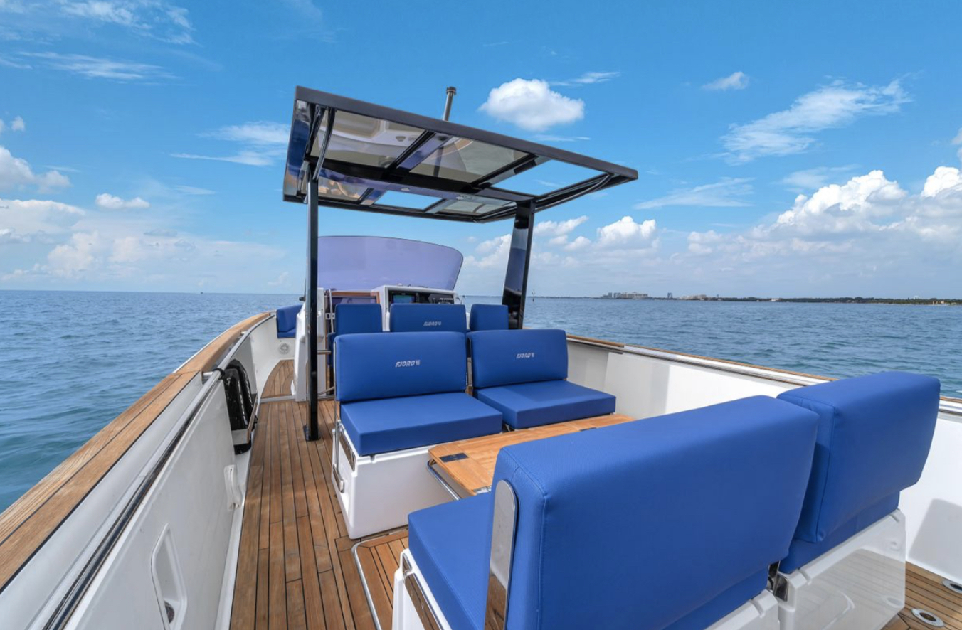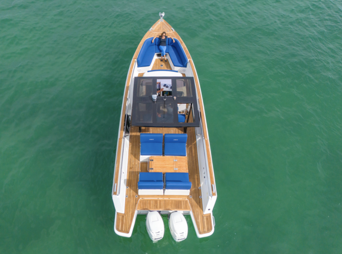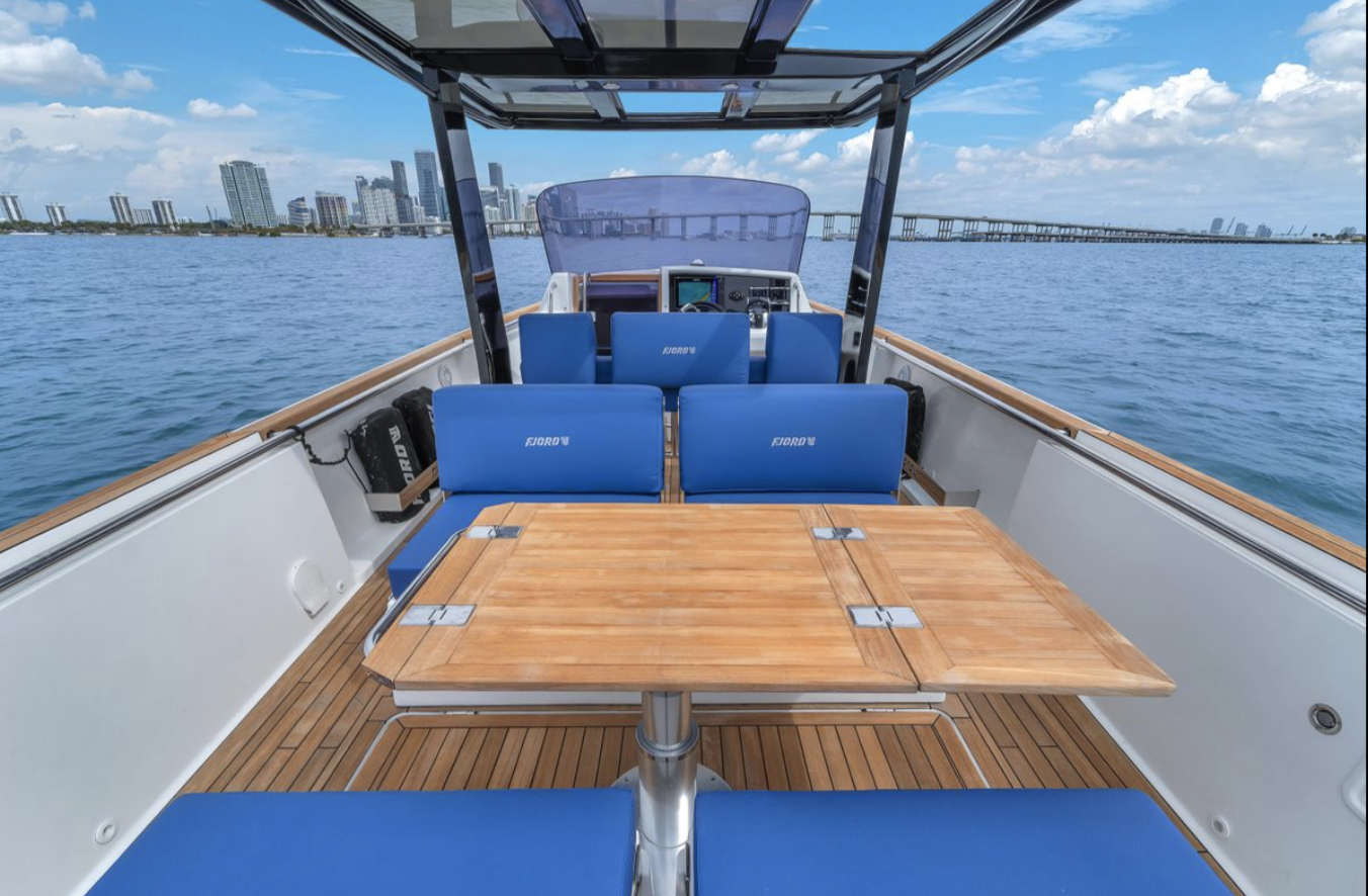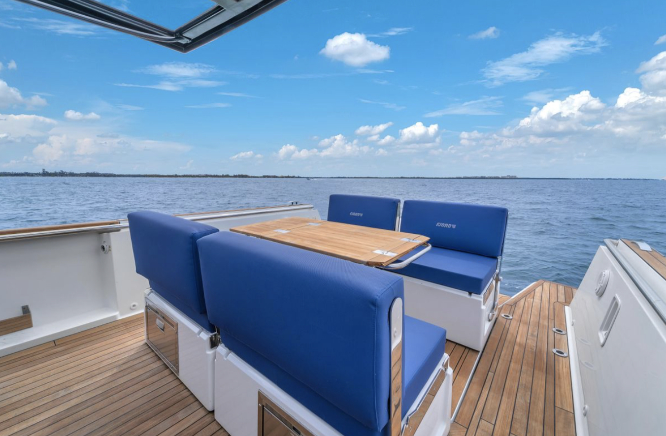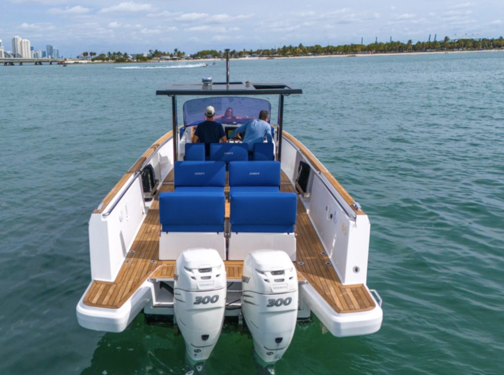 Imagine the sublimity of a luxury day cruiser combined with the excitement of an outboard-driven fun machine. The FJORD 38 Xpress is the new boat sensation bringing both dreams together. exhilarating driving pleasure, breathtaking dynamics achieving a new speed level: 43 knots max. speed 2 engines from strong power: 2 x 300 hp unprecedented performance driven by Mercury Verado outboards – superior torque across the entire performance range.
