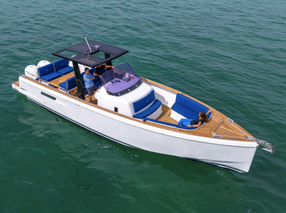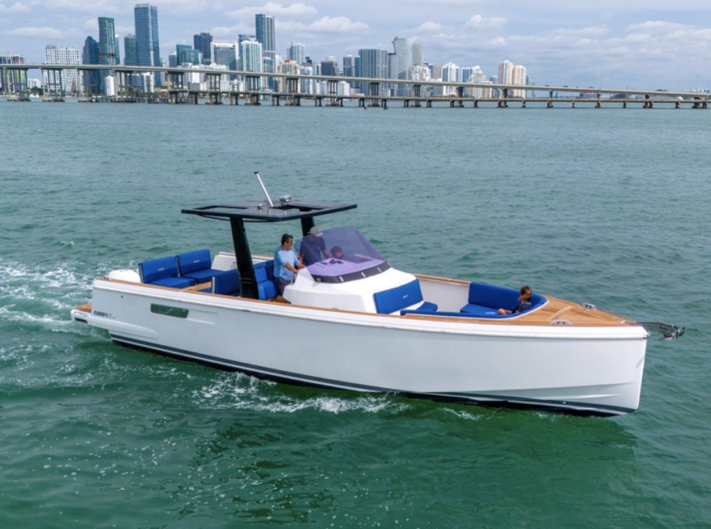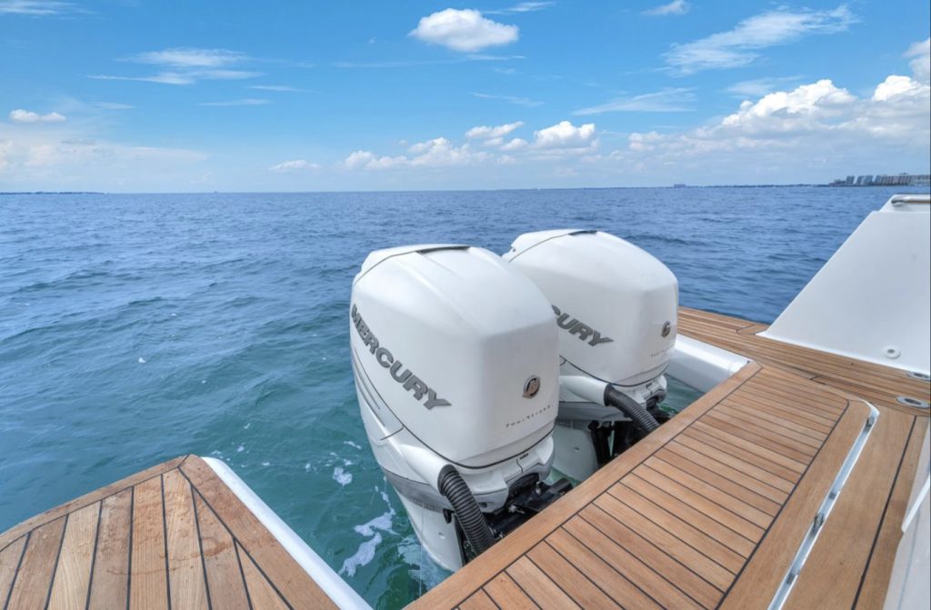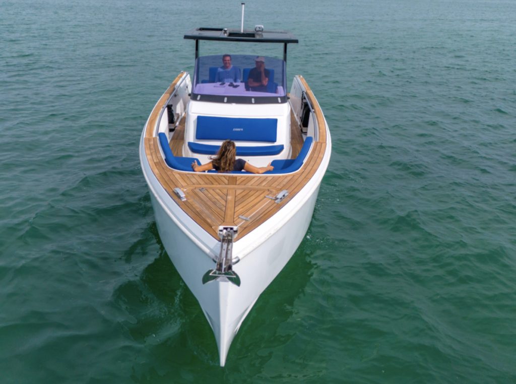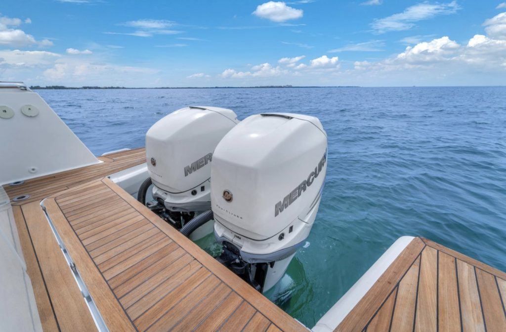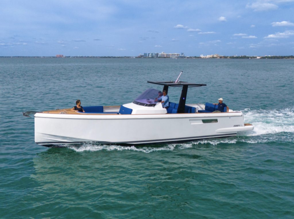 Imagine the sublimity of a luxury day cruiser combined with the excitement of an outboard-driven fun machine. The FJORD 38 Xpress is the new boat sensation bringing both dreams together. exhilarating driving pleasure, breathtaking dynamics achieving a new speed level: 43 knots max. speed 2 engines from strong power: 2 x 300 hp unprecedented performance driven by Mercury Verado outboards – superior torque across the entire performance range.